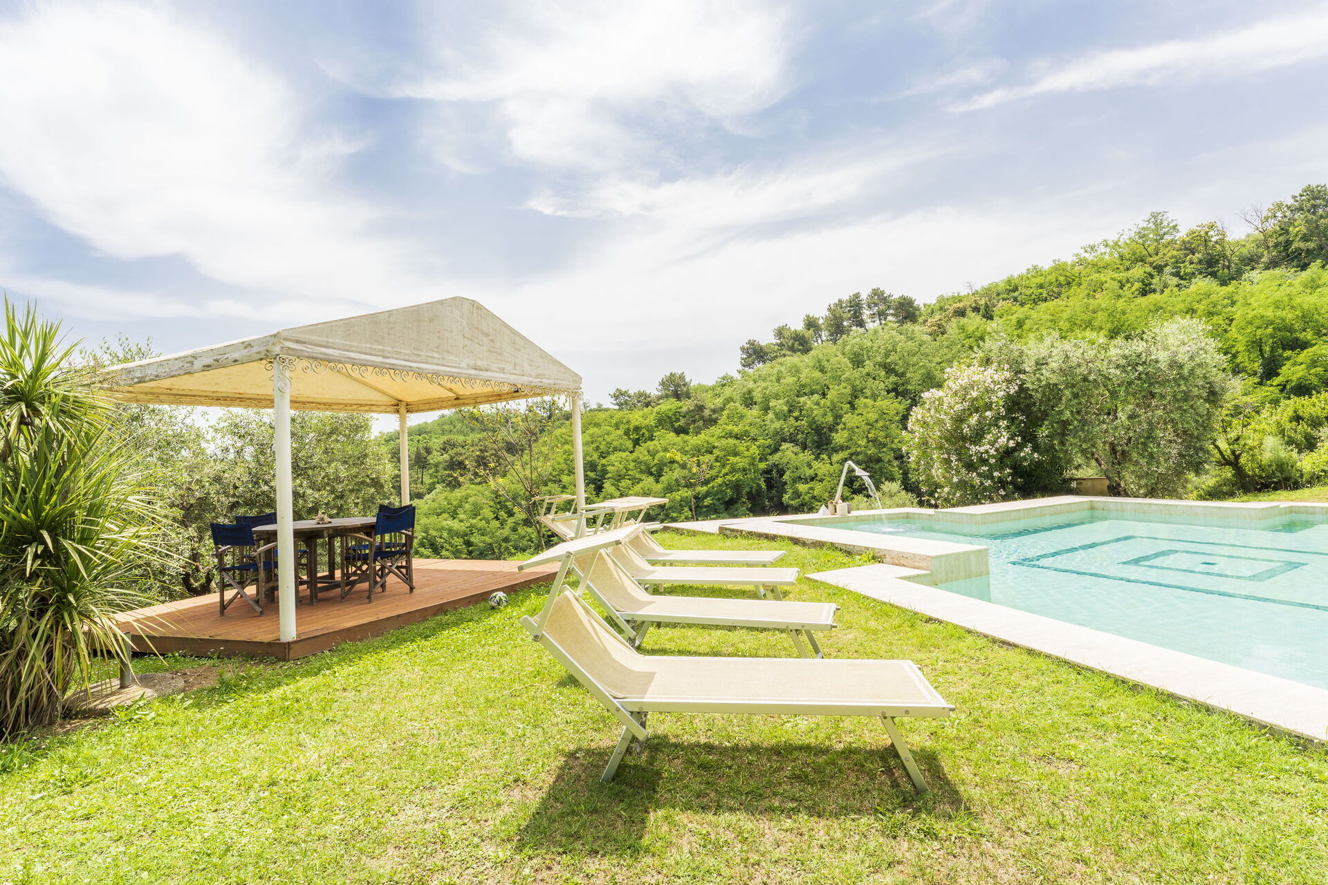 jardin: piscine, piscine (largeur: 12m, longueur: 15m), internet WIFI, barbecue, espace extérieur pour les repas en plein air, table à manger, pavillon, meuble de jardin, meuble de terrace, chaise longue, aire de jeux pour les enfants.