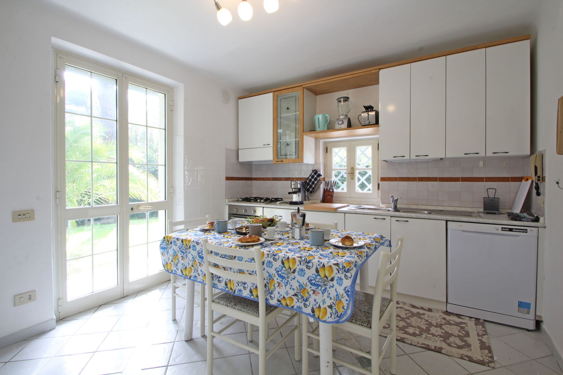 cuisine: table à manger (personnes: 4), lave-vaisselle, réfrigérateur, congélateur, cuisinière, four, grille-pain, machine à café italienne, machine à café américaine, internet WIFI, sortie sur le jardin, sortie sur la véranda.