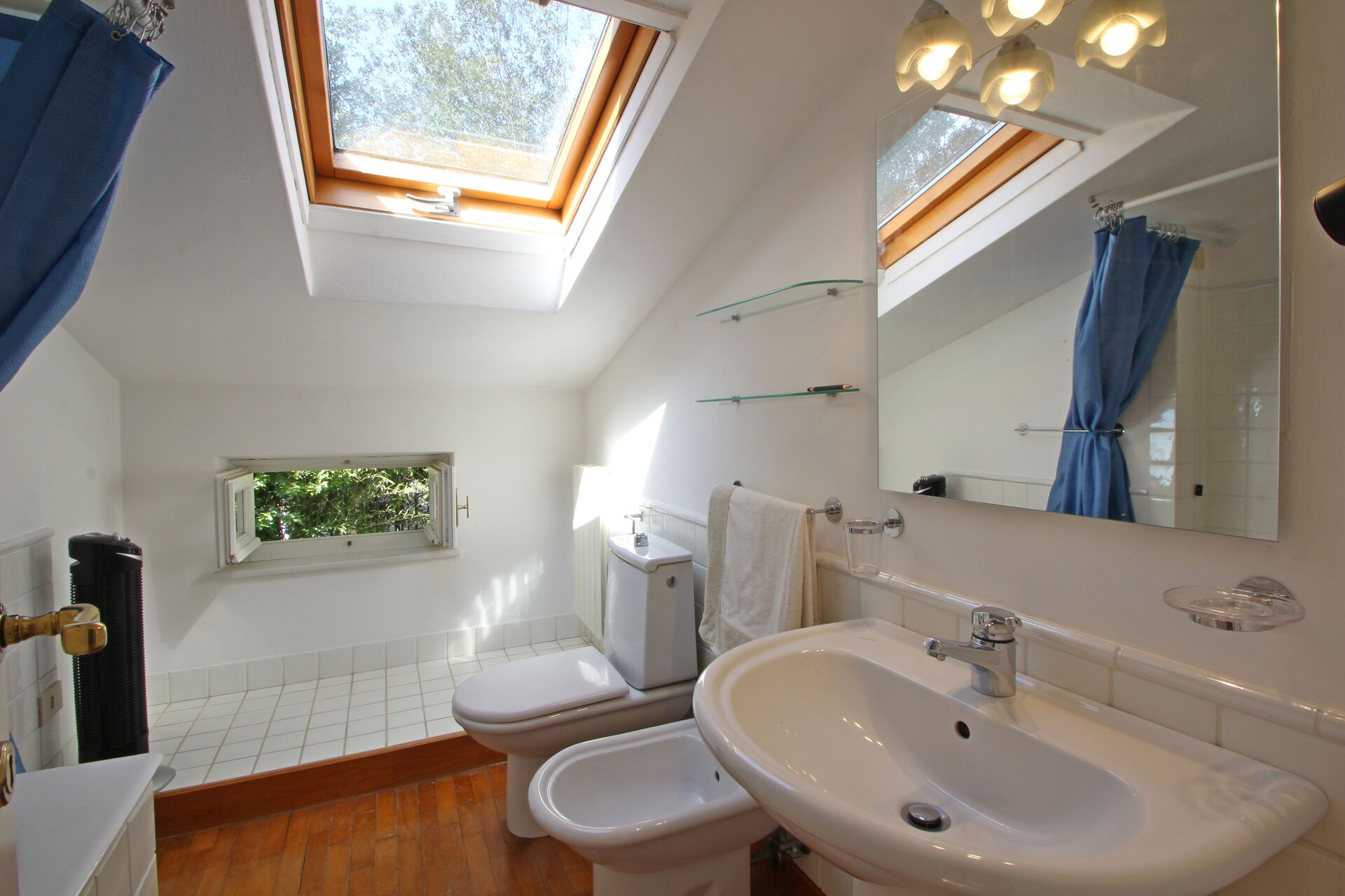 salle de bain: bassin, wc, bidet, douche.