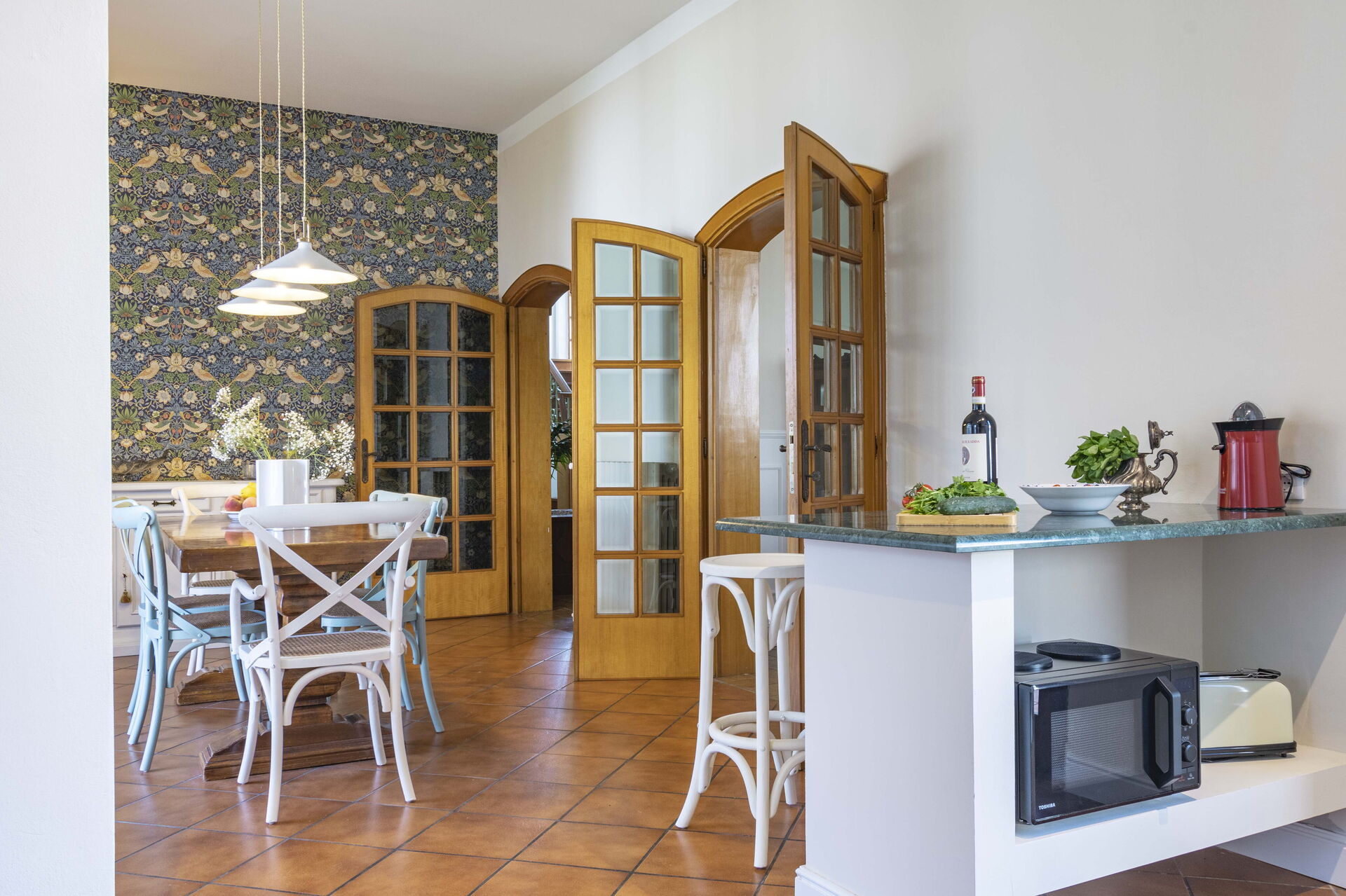 Une fois arrivés à Villa i Portici vous trouverez une jolie propriété, propre et bien entretenue, parfaite pour des vacances relaxantes en Toscane. Peu importe comment vous passez vos journées... shopping, visites, visites de musées ou tout simplement en vous baladant à la campagne, quand vous arrivez à la maison, vous pouvez vous délasser à la piscine avec votre famille et vos amis et conclure au mieux un autre jour de vacances en Toscane. Aussi disponibles dehors sont une terrasse et un barbecue. Dîner avec les amis et la famille est une importante partie de la culture toscane. Profitez de la cuisine bien équipée pour préparer les repas avec des produits locaux pendant vos vacances. La cuisine comprend machine à café, four micro-onde, cuisinière et réfrigérateur, ainsi que, abondance de vaisselle et couverts pour un maximum de 15 personnes.