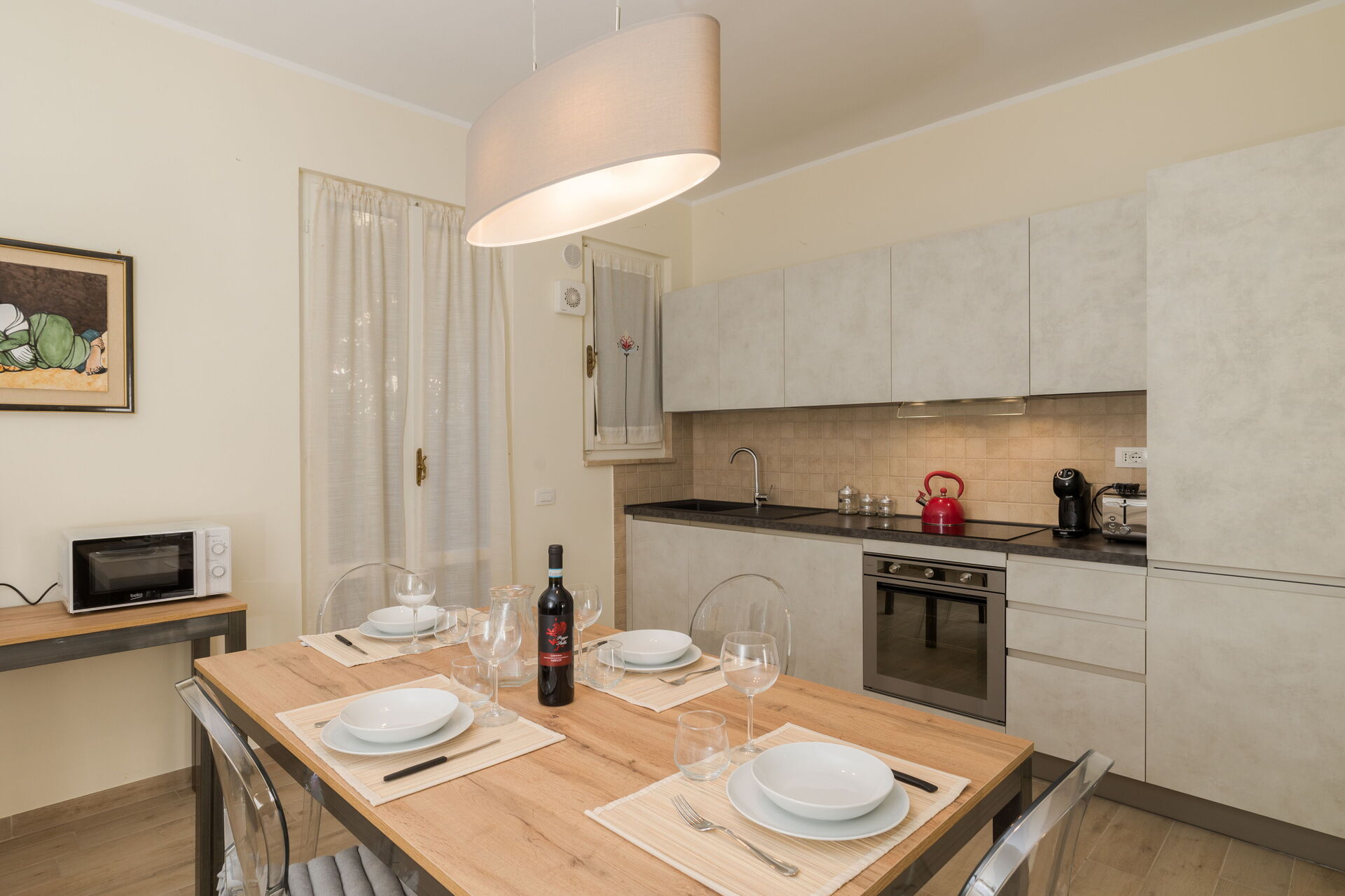 cuisine: cuisine bien équipée, table à manger (personnes: 6), lave-vaisselle, réfrigérateur, congélateur, four micro-onde, cuisinière, four, grille-pain, fer à repasser, machine à café italienne, machine à café américaine, internet WIFI, climatisation, sortie sur le jardin.
