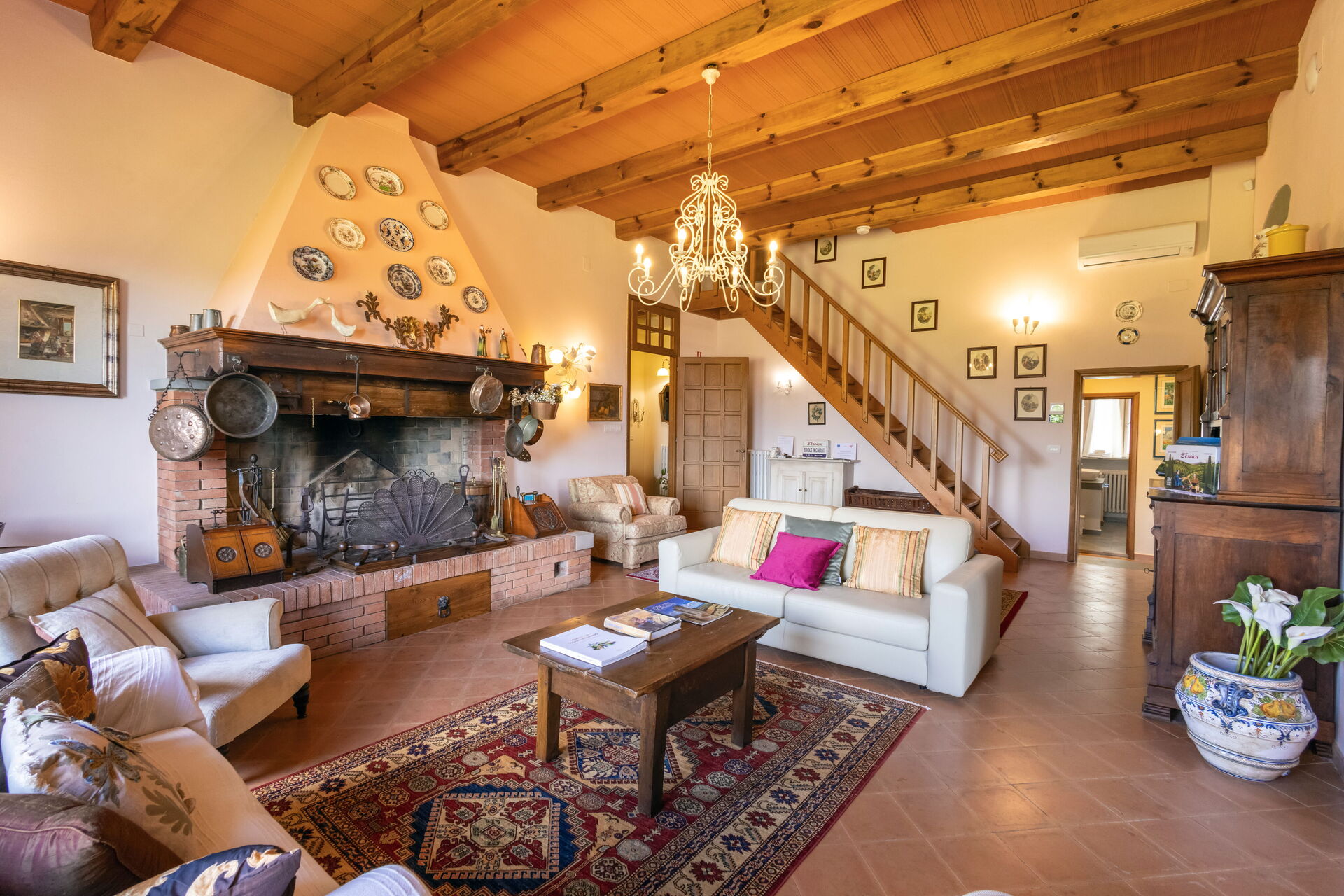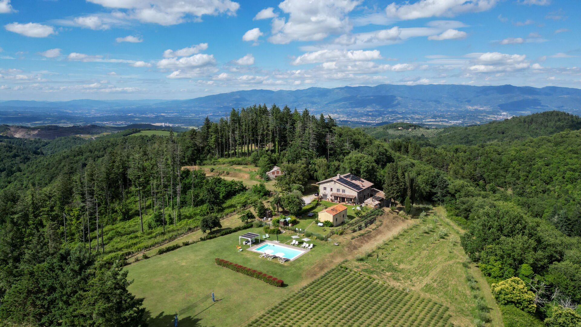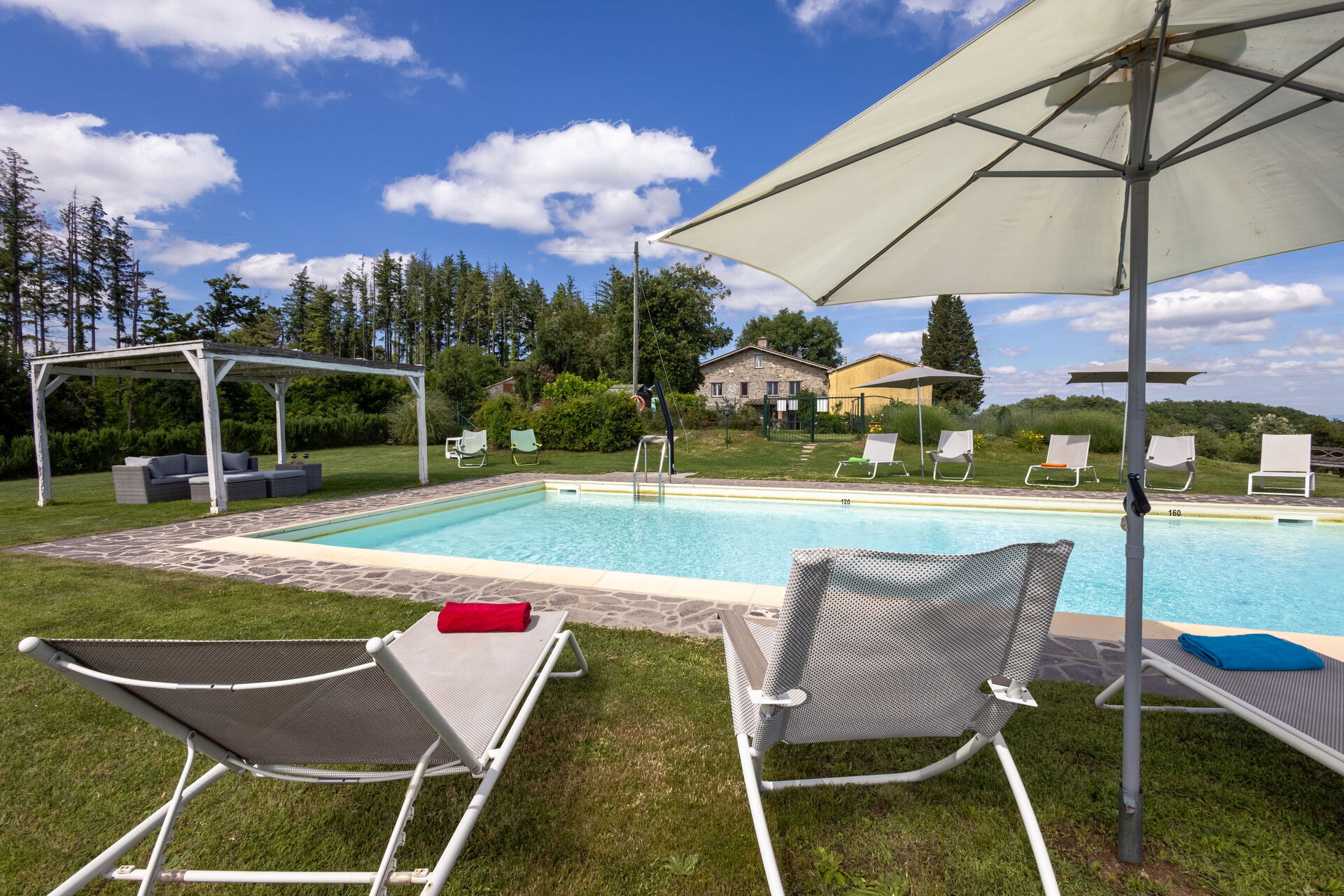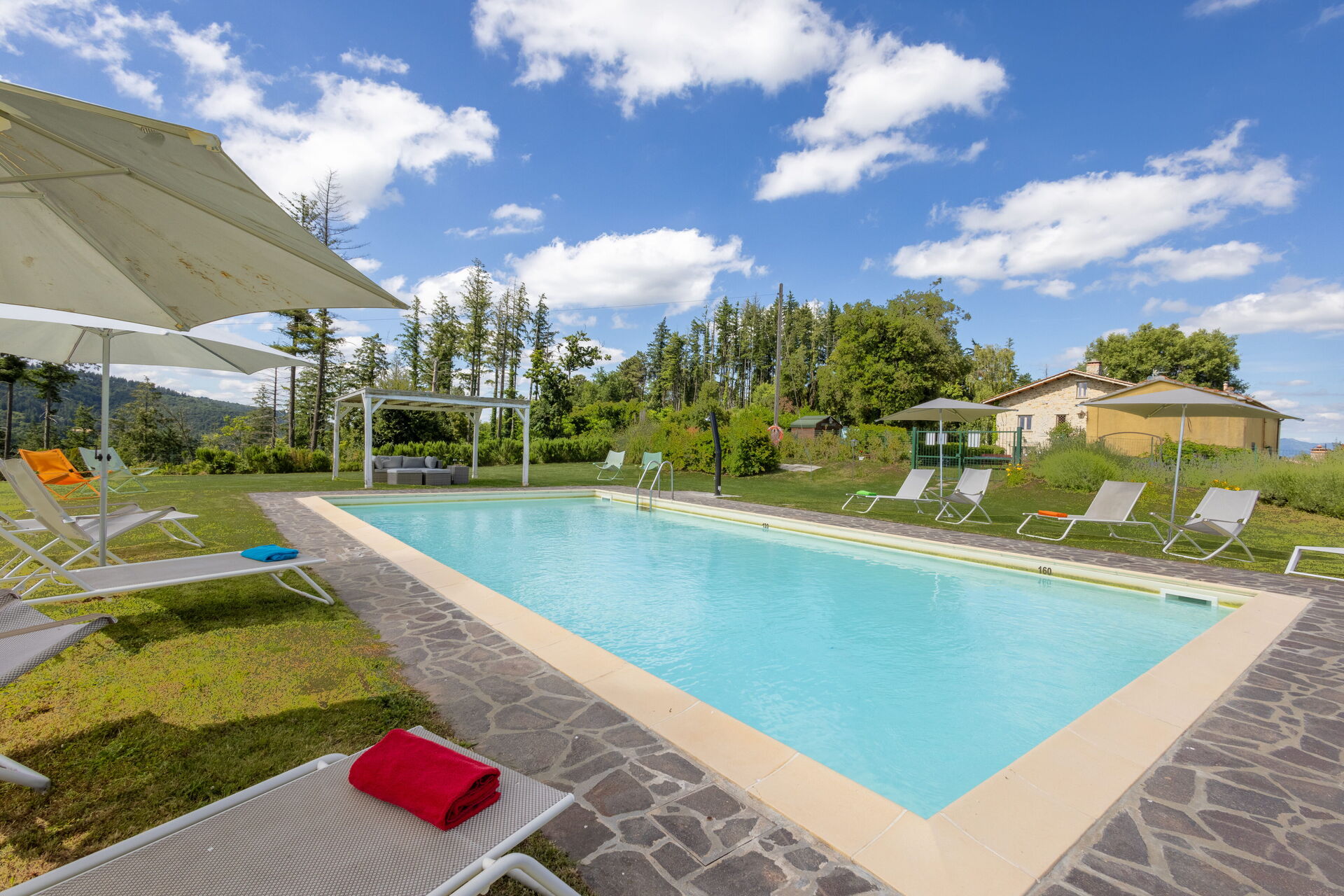 Une fois arrivés vous serez accueillis par le propriétaire, ou une personne de sa confiance, et vous trouverez une jolie propriété, propre et bien entretenue, avec vue sur les collines et montagnes parfaite pour des vacances relaxantes en Toscane. Pour votre plaisir vous trouverez une piscine privée où vous pouvez vous délasser tout en dégustant une bonne boisson fraîche après une active journée de visites. Dehors vous trouverez également un patio et un barbecue. Si vous aimez cuisiner pour la famille et les amis il y a une cuisine bien equipée y compris machine à café, four micro-onde, grille-pain, cuisinière et réfrigérateur, ainsi que, assez de vaisselle et couverts jusqu'à 14 personnes. Si vous préférez dîner «al fresco», il y a à votre disposition une véranda entièrement meublée où vous pourrez profiter du beau temps tout en mangeant en plein air.
