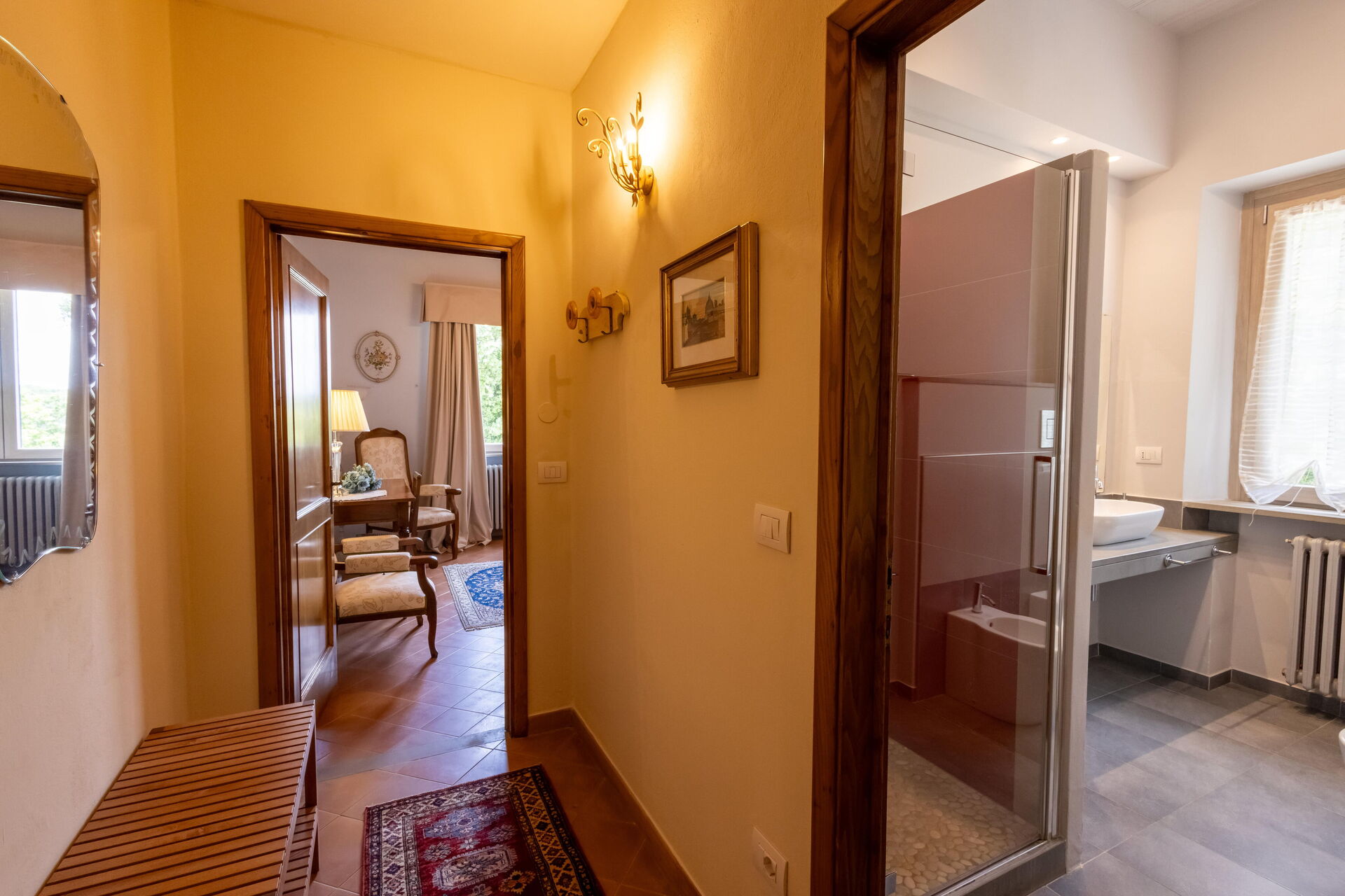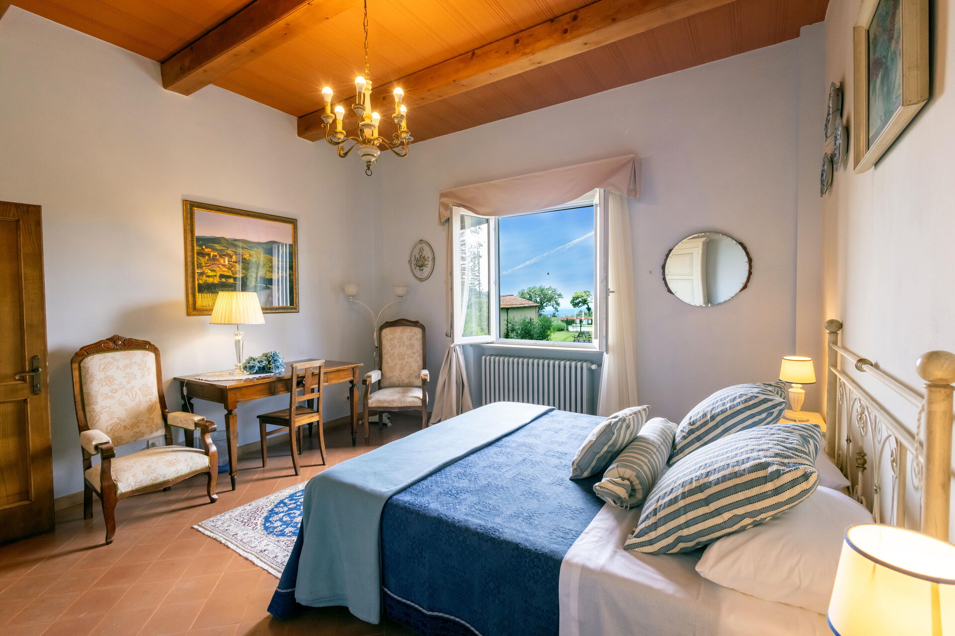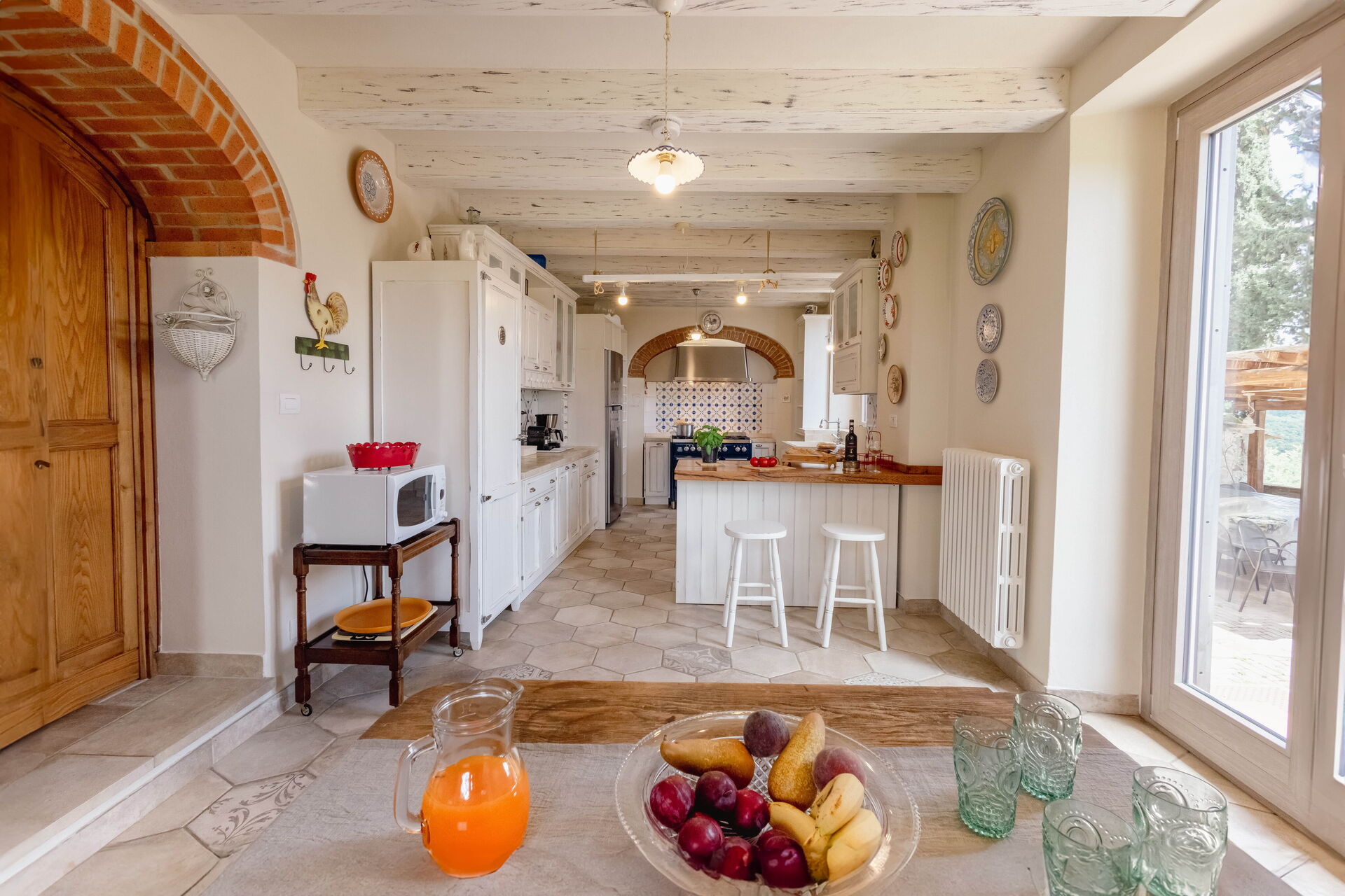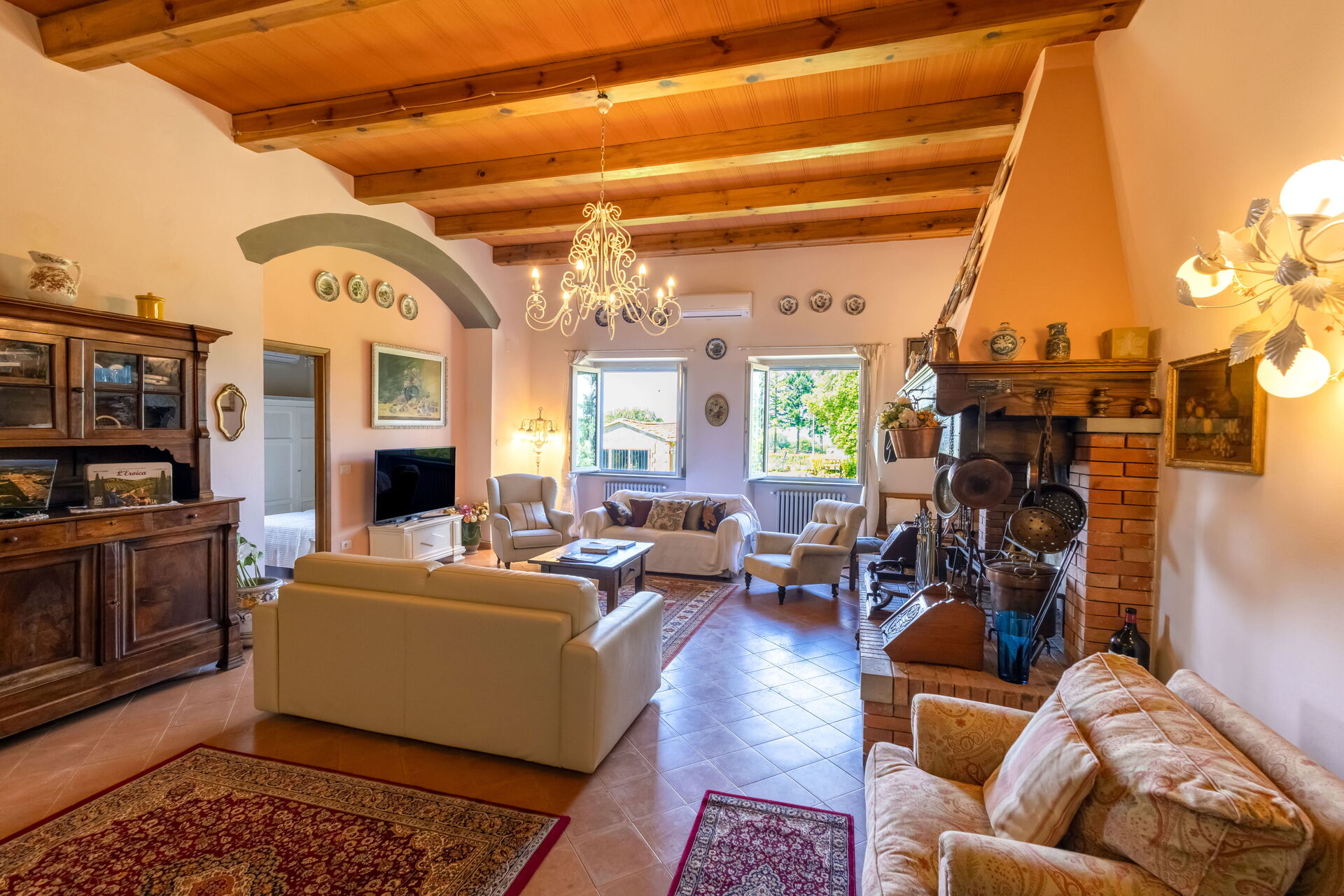 Une fois arrivés vous serez accueillis par le propriétaire, ou une personne de sa confiance, et vous trouverez une jolie propriété, propre et bien entretenue, avec vue sur les collines et montagnes parfaite pour des vacances relaxantes en Toscane. Pour votre plaisir vous trouverez une piscine privée où vous pouvez vous délasser tout en dégustant une bonne boisson fraîche après une active journée de visites. Dehors vous trouverez également un patio et un barbecue. Si vous aimez cuisiner pour la famille et les amis il y a une cuisine bien equipée y compris machine à café, four micro-onde, grille-pain, cuisinière et réfrigérateur, ainsi que, assez de vaisselle et couverts jusqu'à 14 personnes. Si vous préférez dîner «al fresco», il y a à votre disposition une véranda entièrement meublée où vous pourrez profiter du beau temps tout en mangeant en plein air.