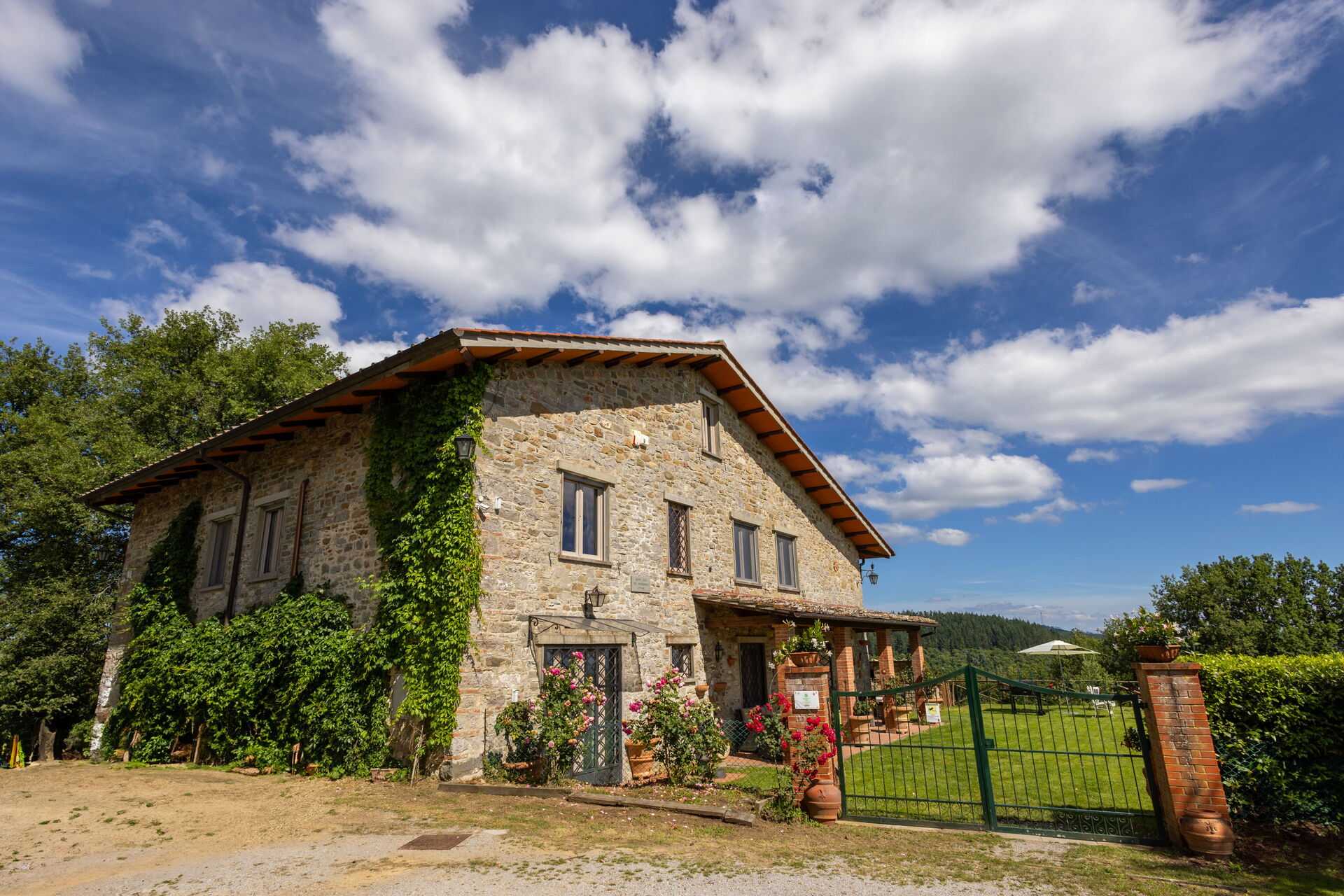 La maison de vacances Montelucci Chianti Agrivilla est un jolie logement en pierre (400 mètres carrés) qui offre piscine privée, internet sans fils et air conditionné. La propriété peut accueillir comfortablement jusqu'à 14 personnes dans sept chambres à coucher avec six salles de bain. La propriété est idéalement située 560 m de Montegrossi, Italie, dans la région touristique "Chianti" et à seulement 30 km de Greve In Chianti.