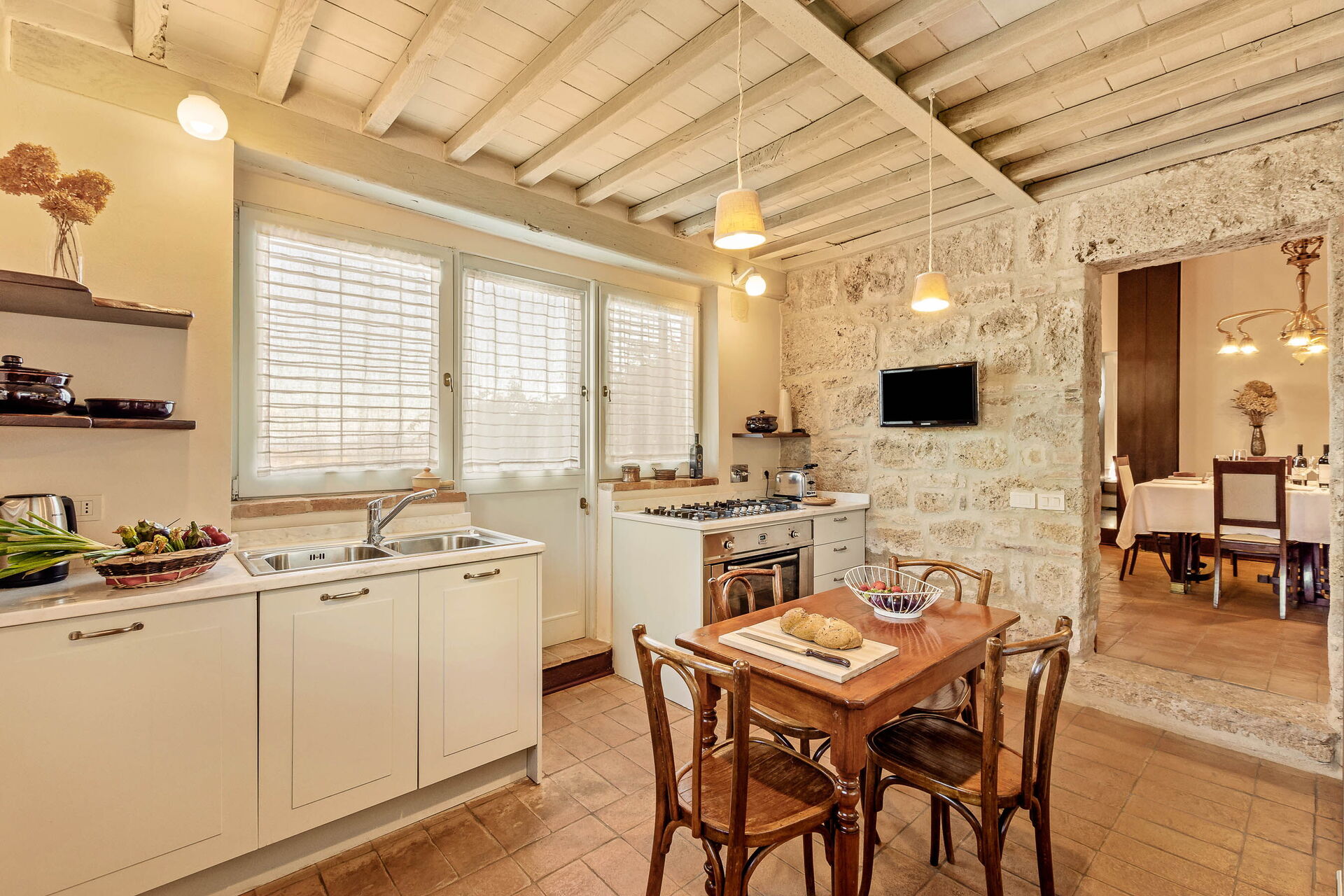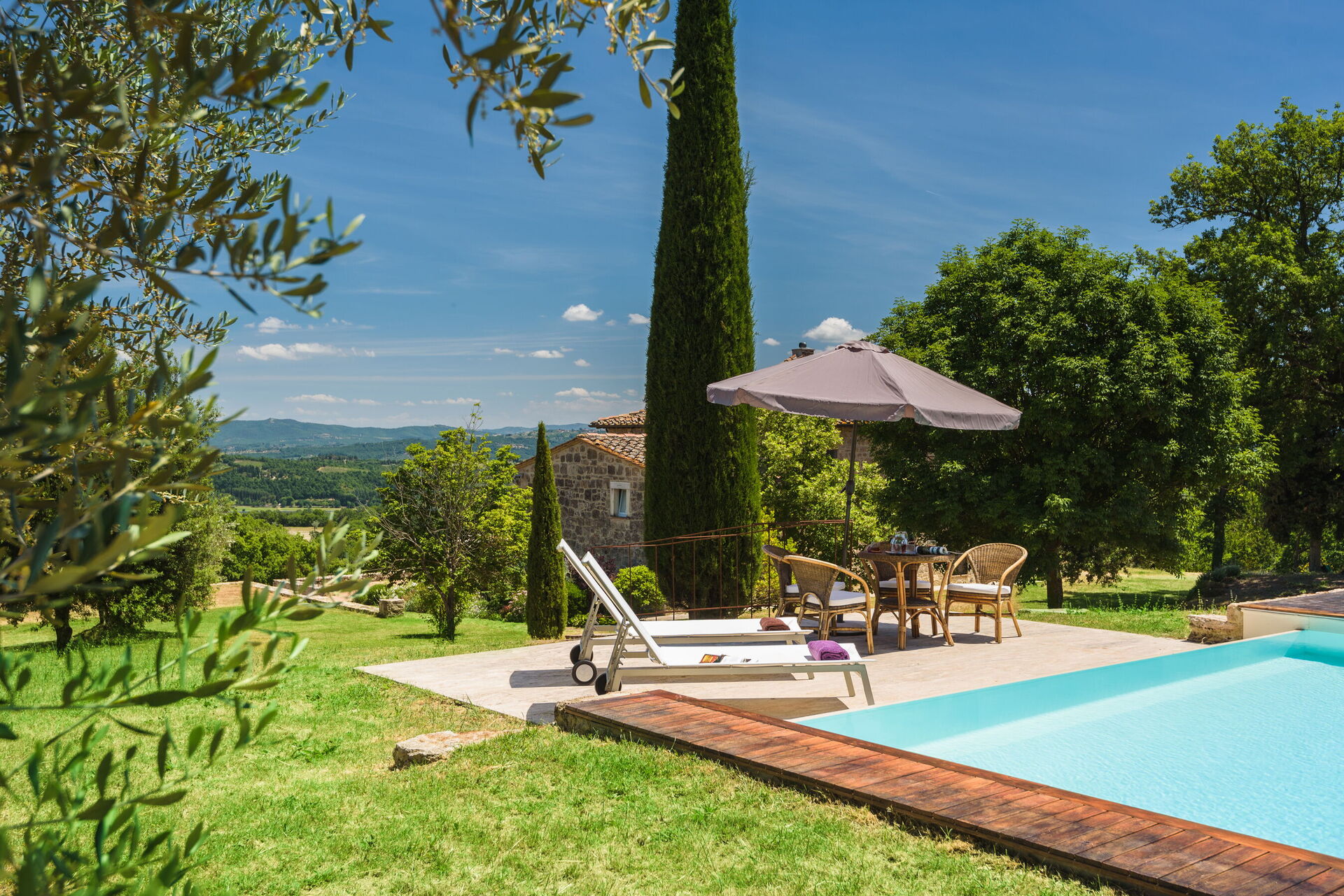 Une fois arrivés vous serez reçus par le propriétaire, ou une personne de sa confiance, et vous trouverez une jolie propriété, propre et bien entretenue, avec vue sur les collines parfaite pour des vacances relaxantes en Toscane. Peu importe comment vous passez vos journées... visites, shopping, visites de musées ou tout simplement en vous baladant à la campagne, quand vous arrivez à la maison, vous pouvez vous délasser à la piscine avec votre famille et vos amis et conclure au mieux un autre jour de vacances en Toscane. En plein air vous trouverez également une véranda et un barbecue. Si vous aimez cuisiner pour la famille et les amis il y a une cuisine bien equipée y compris machine à café, four micro-onde, grille-pain, cuisinière et réfrigérateur, ainsi que, assez de vaisselle et couverts jusqu'à six personnes. Si vous préférez dîner «al fresco», il y a à votre disposition un patio entièrement meublé où vous pourrez profiter du beau temps tout en mangeant en plein air.