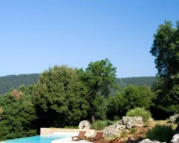 Votre séjour est enrichi d'équipements complets conçus pour le confort et la commodité dans toute la propriété. La cuisine est entièrement équipée de toutes les commodités modernes, notamment un grand four, un réfrigérateur avec congélateur, un lave-vaisselle et un micro-ondes, avec des plans de travail en travertin de noyer toscan et un îlot central en châtaignier poli. Les options de divertissement comprennent une télévision par satellite, un lecteur DVD et une chaîne stéréo pour votre plaisir. La villa principale présente des cheminées spectaculaires intégrées dans la roche naturelle, tandis que l'espace de vie de la grange comprend également une cheminée pour une chaleur d'ambiance. Un four à pain et à pizza extérieur à bois ainsi qu'un équipement barbecue offrent des expériences culinaires en plein air exceptionnelles. Des équipements de buanderie sont commodément fournis avec un lave-linge et un sèche-linge dans le bâtiment principal et un lave-linge supplémentaire dans la dépendance. Les commodités modernes s'étendent à la connectivité Wi-Fi, au système d'alarme et aux moustiquaires sur toutes les fenêtres des chambres et salles de bains. La propriété est entièrement accessible en fauteuil roulant avec des installations spécialement adaptées. Votre jardin privé offre de vastes terrains pour la détente et les loisirs, tandis que la piscine à débordement dispose d'une douche intégrée. Des attentions supplémentaires incluent l'éclairage extérieur pour la sécurité et l'ambiance, le service téléphonique, une caisse de six bouteilles de vin local en guise de bienvenue, et une bouteille d'huile d'olive extra vierge à l'arrivée.
