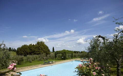 Les espaces extérieurs de La Villa del Riccio offrent un cadre idyllique pour la détente et les loisirs. Vous aurez accès à une piscine non chauffée de dimensions généreuses mesurant 15 mètres sur 7 mètres, avec des profondeurs variant de 1,20 à 1,40 mètre, entourée d'une clôture sécurisée. Le vaste jardin offre amplement d'espace pour les activités de plein air et les promenades paisibles dans le paysage toscan. Un espace solarium dédié vous permet de profiter du soleil italien tout en admirant les vues panoramiques sur les vignobles et oliveraies environnants. La propriété dispose d'un délicieux gazebo où vous pourrez chercher l'ombre pendant les heures les plus chaudes de la journée ou vous réunir pour des repas en plein air. Du mobilier d'extérieur confortable est disposé avec soin dans tout le domaine, créant plusieurs espaces pour dîner en plein air, lire ou simplement apprécier la beauté naturelle de la campagne du Chianti. Les installations de barbecue vous permettent de préparer des spécialités grillées toscanes traditionnelles tout en recevant vos invités dans ce cadre pittoresque.