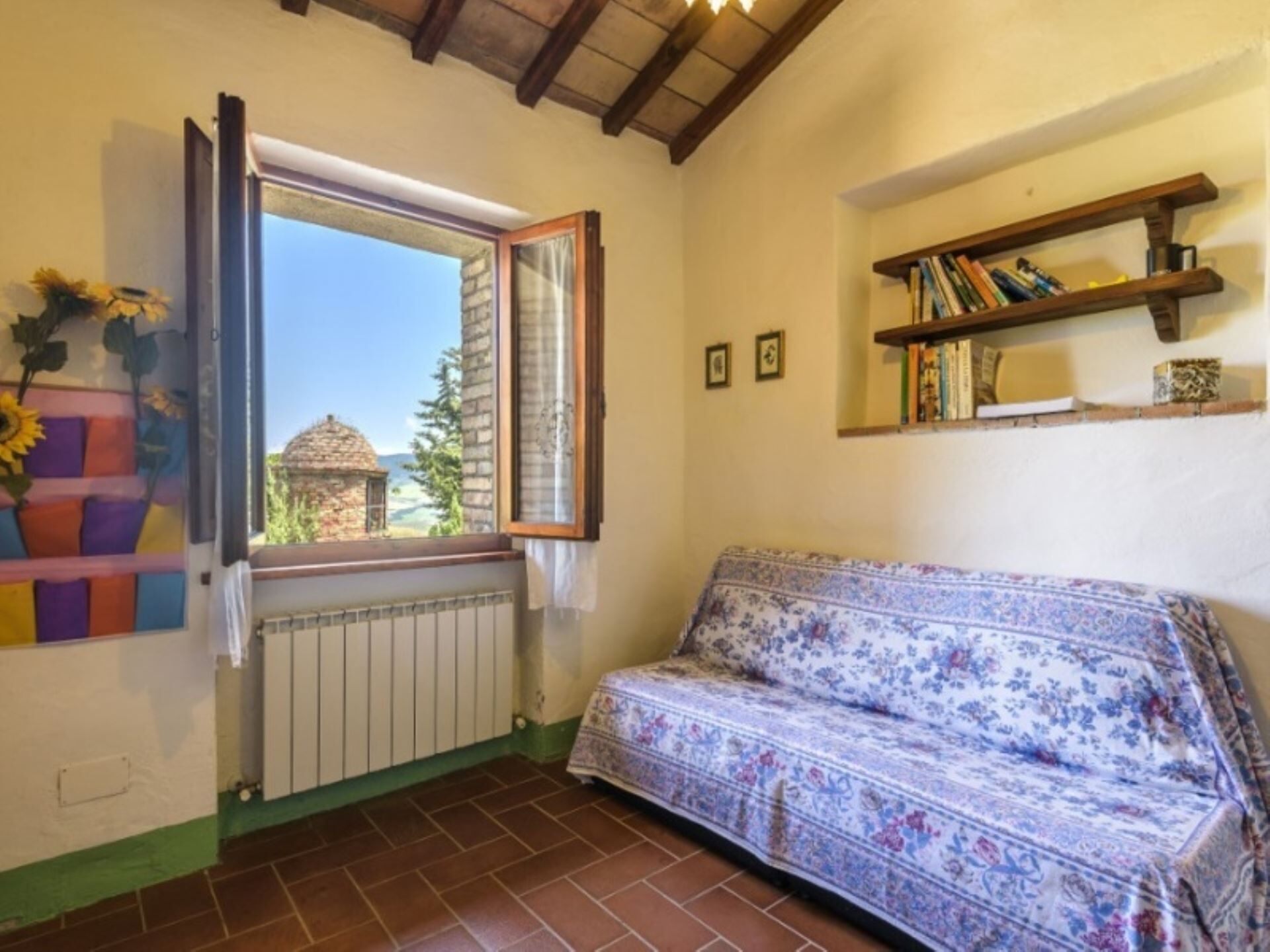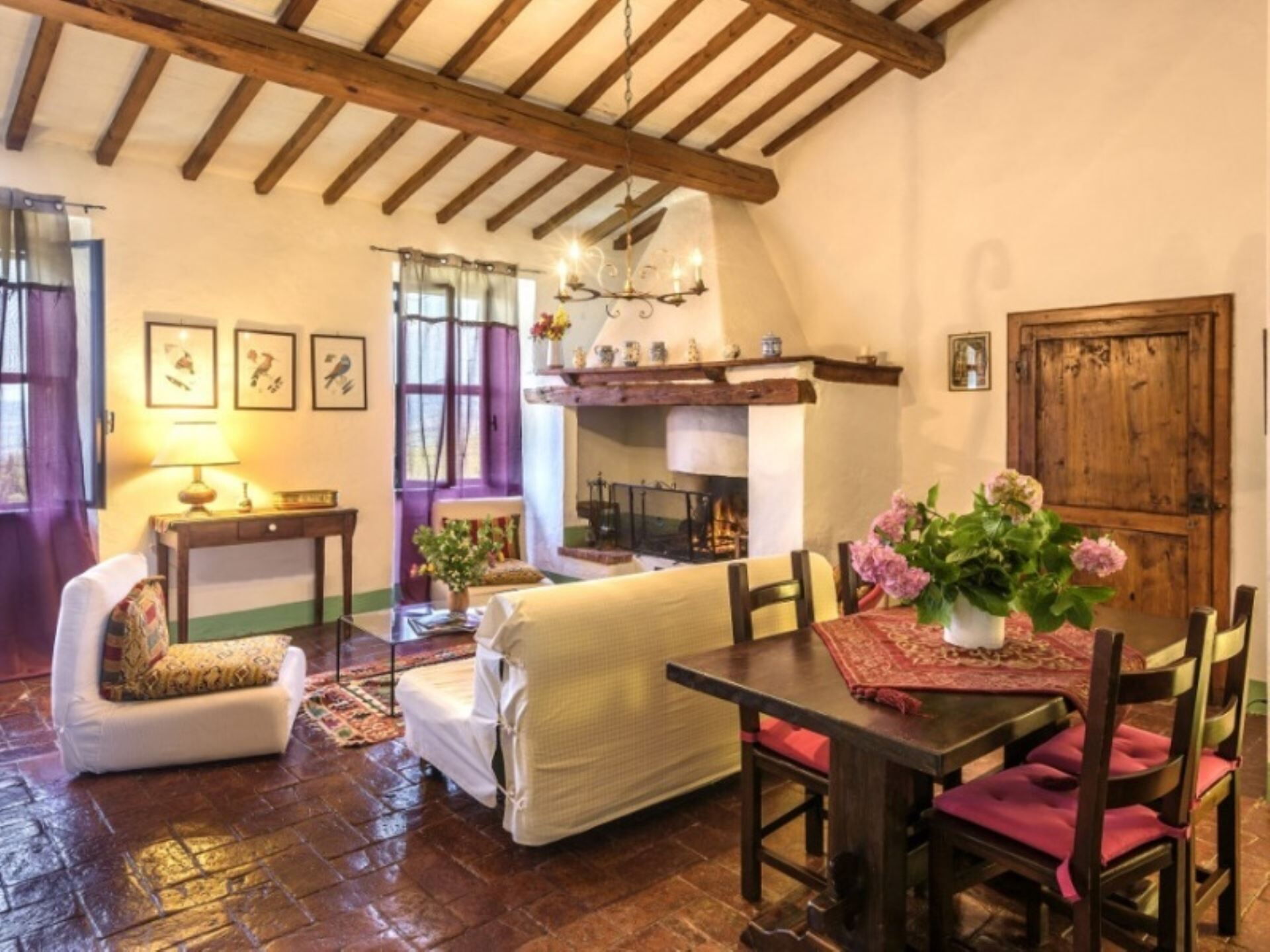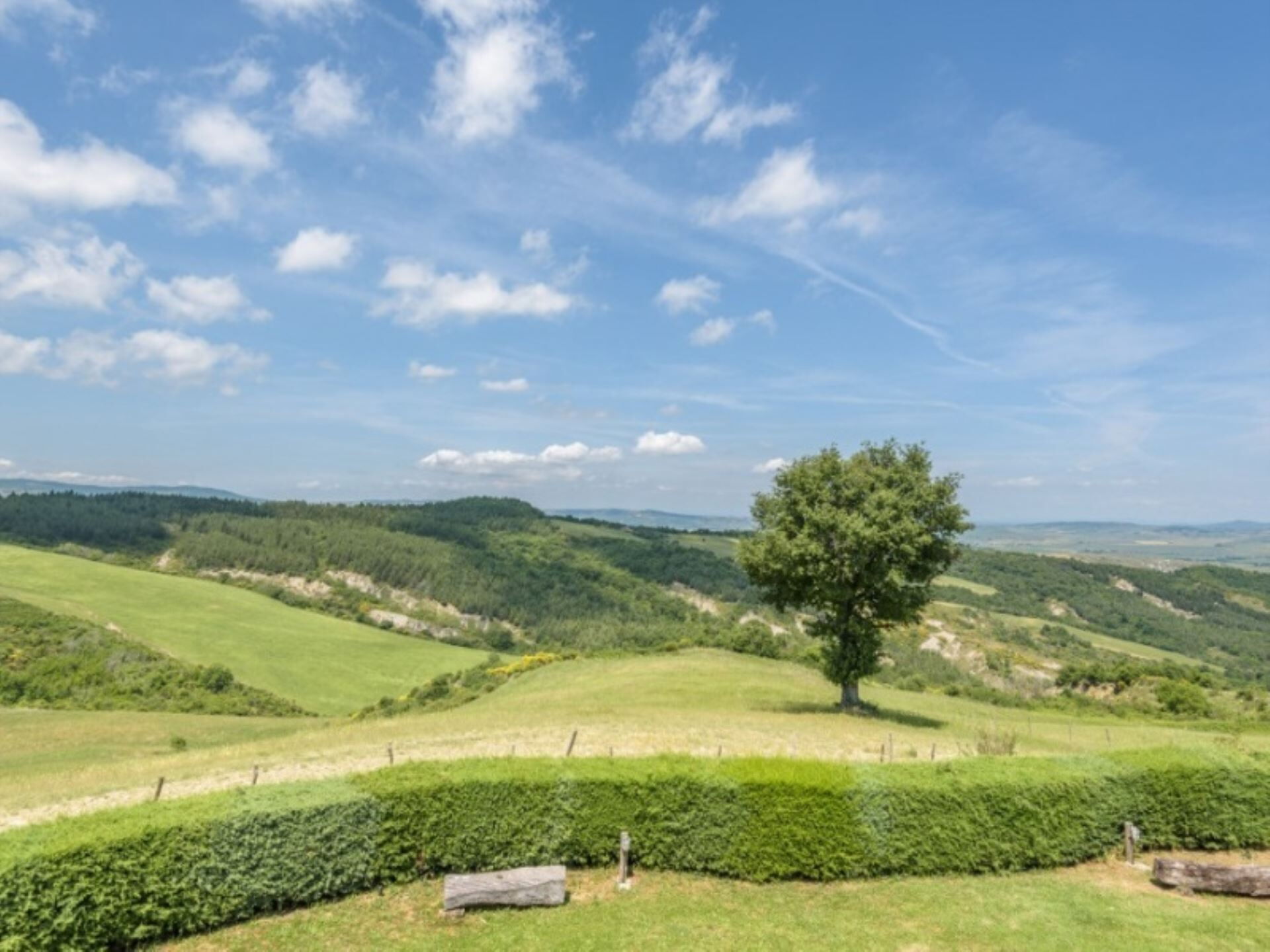 Podere del Mezzadro bénéficie d'une position privilégiée à environ 1 km de la ville de Contignano, offrant un accès facile aux commodités locales tout en maintenant un cadre rural paisible. L'emplacement élevé de la propriété sur une colline offre des vues magnifiques qui s'étendent du Mont Amiata aux collines de Pienza, vous permettant d'apprécier le paysage distinctif de la région du Val d'Orcia. Les collines environnantes cultivées de céréales créent un panorama typiquement toscan, vous plaçant à portée des attractions renommées de la région, des villes historiques et du pays viticole célèbre.