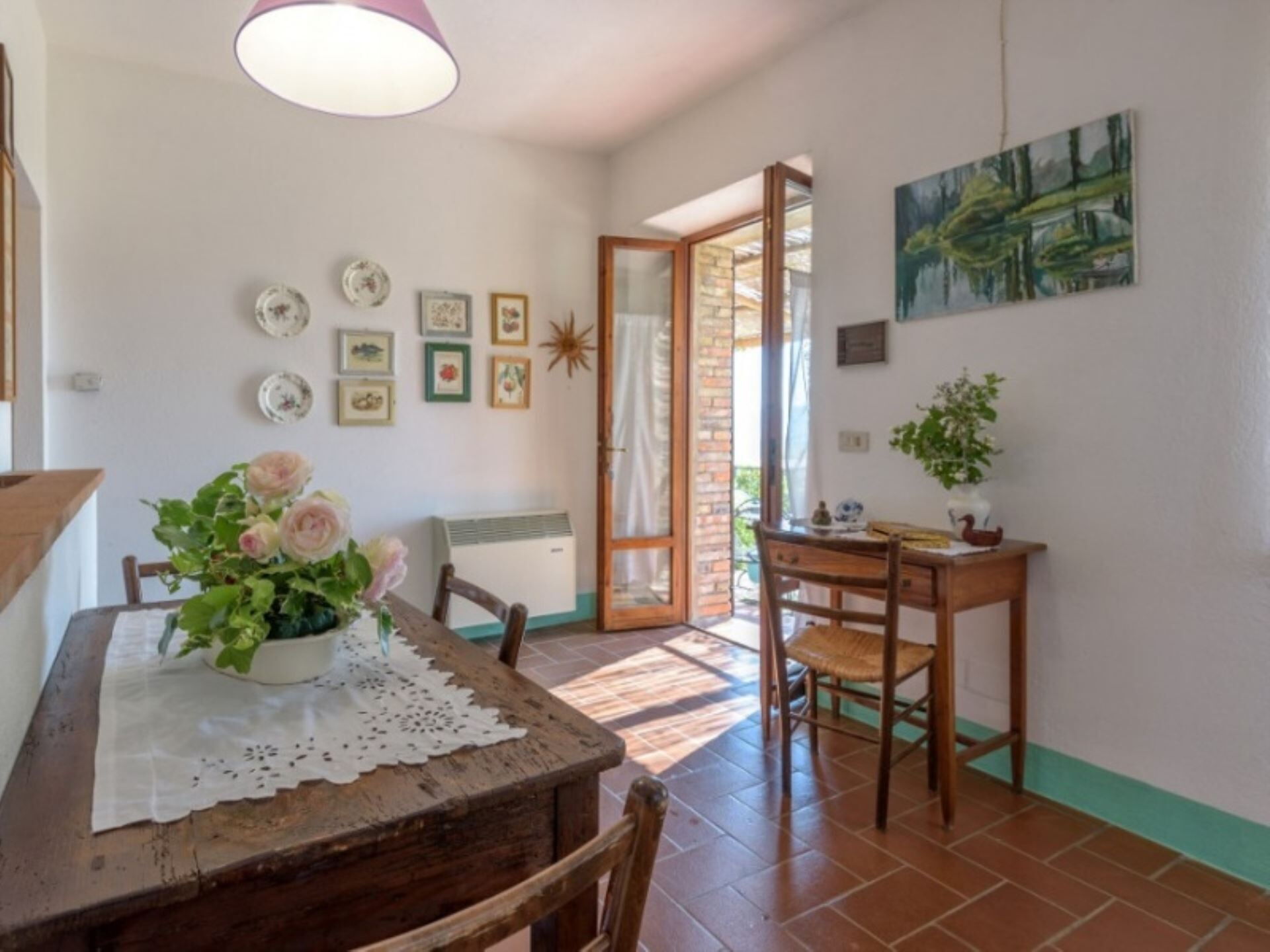Les espaces extérieurs de Podere del Mezzadro offrent des zones exceptionnelles pour la détente et le divertissement. Vous profiterez d'une piscine panoramique non chauffée mesurant 8 x 4 mètres avec une profondeur variant de 1,20 à 1,40 mètres, qui est clôturée pour la sécurité et ouverte du 1er mai au 31 octobre. La propriété dispose d'un grand jardin entourant la ferme, offrant un vaste espace pour les activités extérieures et les loisirs. Une charmante pergola de jasmin s'étend depuis la maison, créant une zone ombragée où vous pourrez dîner en plein air à des tables en fer confortables avec chaises. Vous trouverez du mobilier d'extérieur stratégiquement placé dans l'ensemble du domaine pour maximiser votre plaisir des vues époustouflantes. Un espace barbecue est disponible pour préparer des repas en plein air, et les enfants seront ravis de l'aire de jeux dédiée. Les appartements du rez-de-chaussée s'ouvrent directement sur la pergola de jasmin, tandis que l'appartement Lavanda offre un accès par une porte-fenêtre à la grande pelouse arrière. L'appartement Oleandro donne sur un petit coin de verdure isolé de la ferme, offrant davantage d'intimité et de tranquillité.