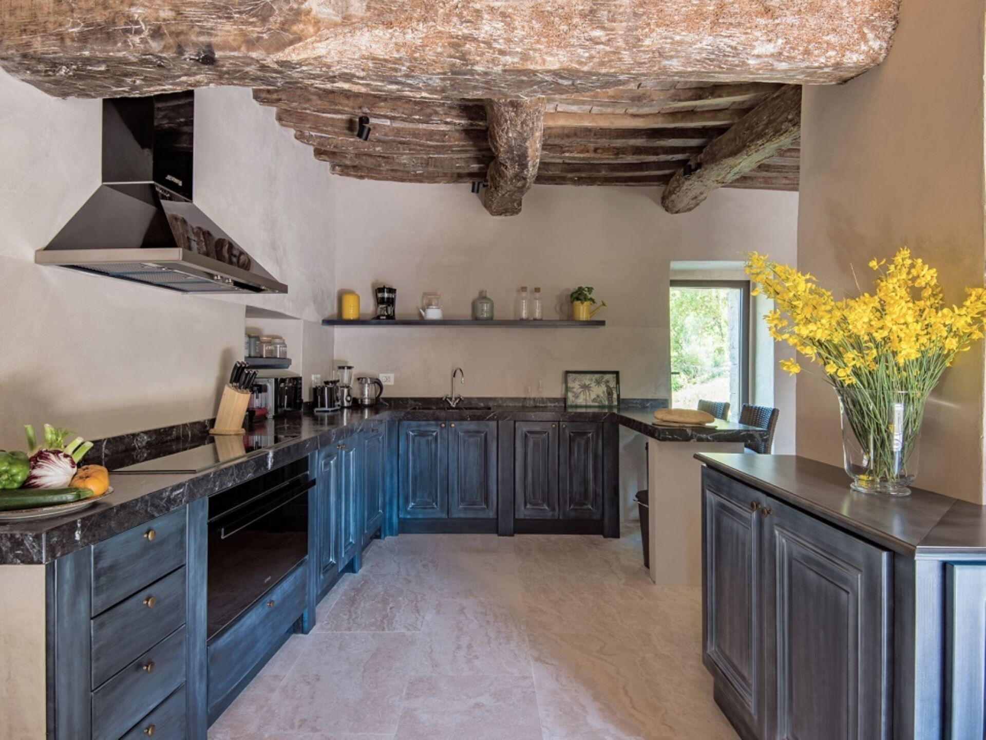 L'hébergement est judicieusement réparti entre le bâtiment principal et une annexe adjacente, offrant un logement confortable pour jusqu'à 8 personnes dans 4 chambres et 4 salles de bains. L'unité principale abrite 2 chambres king-size magnifiquement aménagées, chacune dotée de sa propre salle de bains attenante en marbre luxueux. L'annexe reproduit cette configuration avec 2 chambres king-size supplémentaires, équipées de manière similaire de salles de bains privatives attenantes en marbre. Le spacieux salon du bâtiment principal constitue le cœur de la villa, où la lumière naturelle rehausse l'ambiance chaleureuse créée par les matériaux historiques préservés. Vous trouverez une cuisine entièrement équipée dotée d'appareils modernes incluant un réfrigérateur, un four et un micro-ondes, vous assurant de disposer de tout le nécessaire pour la préparation des repas. Un espace buanderie dédié est commodément situé dans le cottage, équipé d'un lave-linge, d'un sèche-linge, d'un fer et d'une planche à repasser. L'agencement maximise à la fois les espaces communs pour se réunir et les retraites privées pour se reposer, créant un équilibre idéal pour les groupes ou les familles recherchant à la fois la convivialité et le confort individuel.