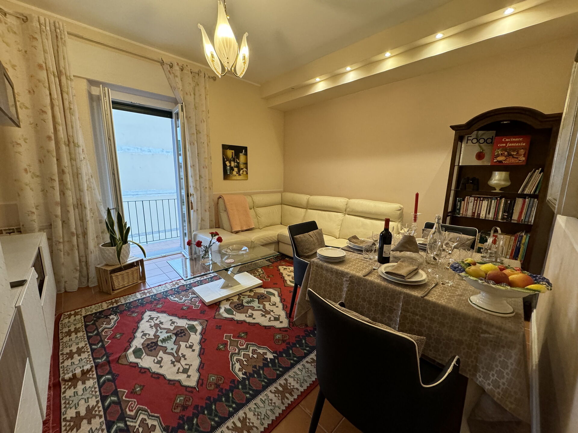 Salon: canapé, table à manger, internet WIFI, télévision, sortie sur le balcon.