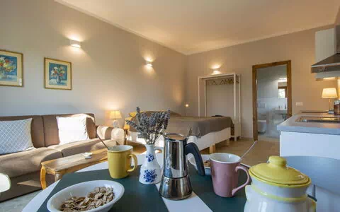 "Lavanda", studio Loft au rez-de-chaussée. Aménagement moderne et de bon goût: séjour/salle à manger avec 1 divan-lit et air-conditionné. 1 chambre double. Sortie sur le jardin. Cuisine (four, 4 plaques à induction, grille-pain, bouilloire électrique, micro-ondes). Douche/bidet/WC. Chauffage. Meubles de terrasse, chaises longues. Belle vue éloignée sur le jardin. A disposition: lave-linge, chaise haute pour enfant, sèche-cheveux. Internet (Connexion WIFI). Maximum 1 animal/ chien autorisé. IT048019C2KG90FH7Y