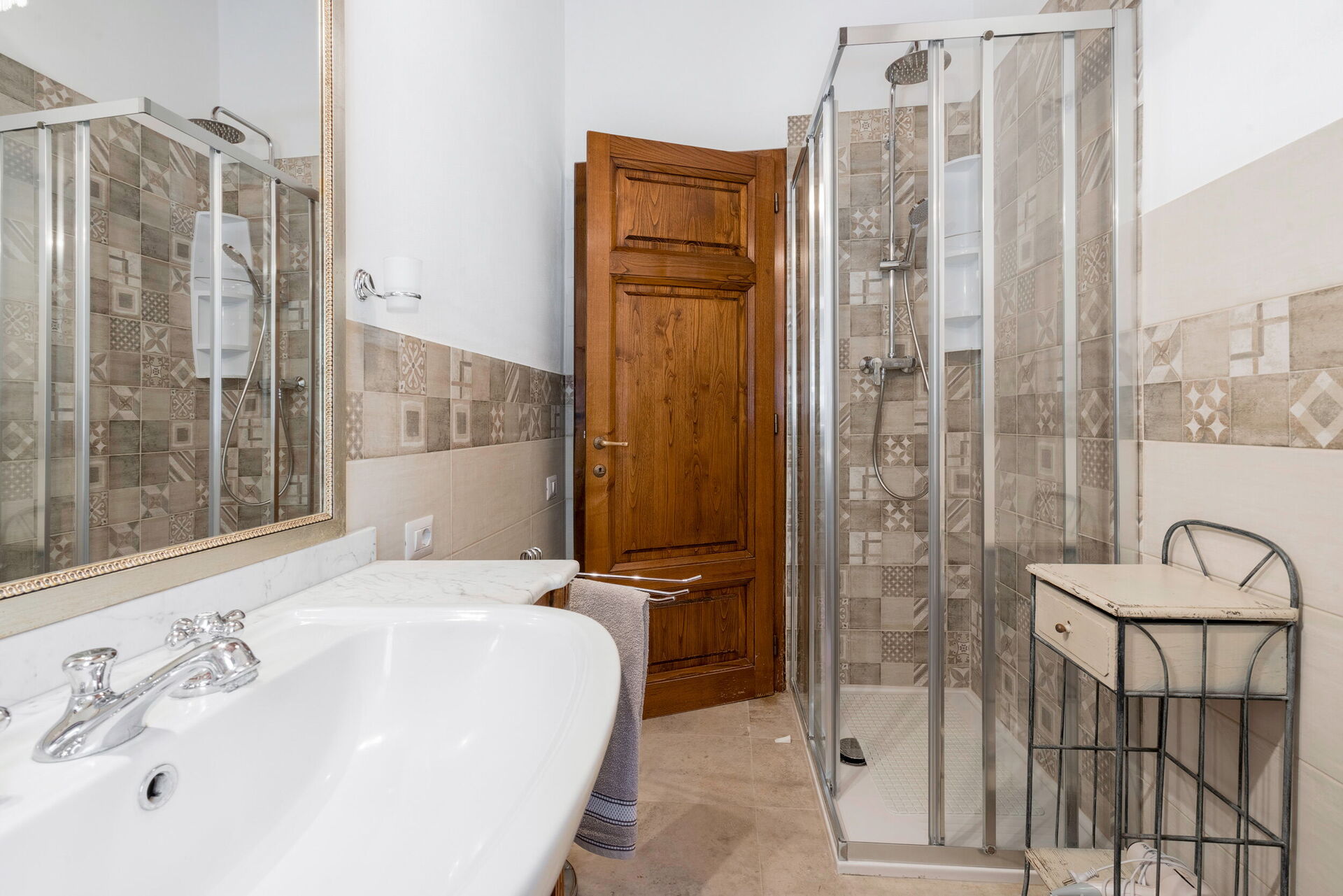 chambre avec salle de bain 1: lit double, internet WIFI, climatisation, bassin, wc, bidet, douche.