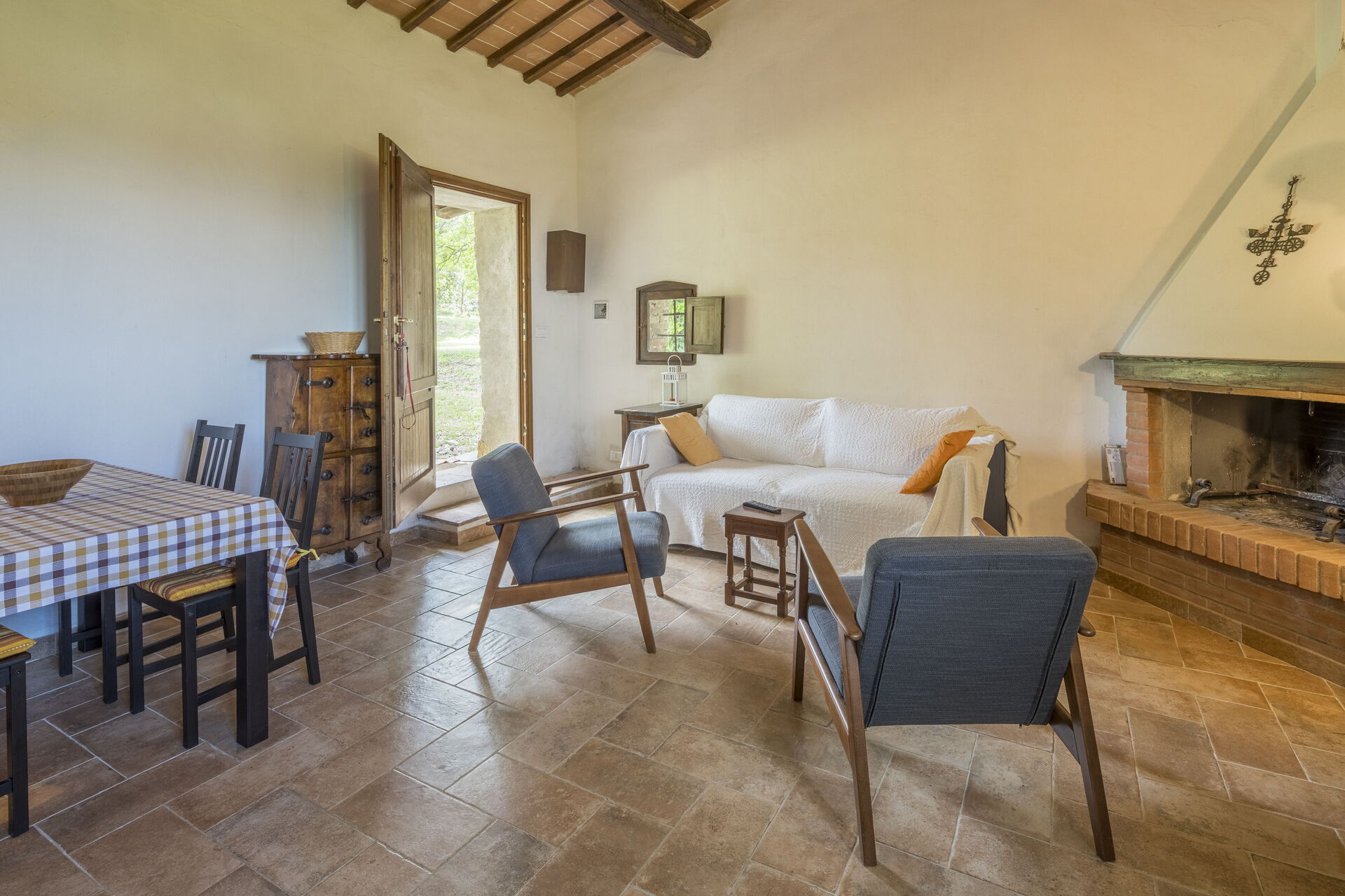 à l'arrivée vous serez reçus par le propriétaire, ou une personne de sa confiance, et vous trouverez une jolie propriété, propre et bien entretenue, avec vue sur les collines idéale pour des vacances relaxantes en Toscane. Peu importe comment vous passez vos journées... shopping, visites de musées, visites ou tout simplement en vous baladant à la campagne, quand vous arrivez à la maison, vous pouvez vous détendre à la piscine avec votre famille et vos amis et conclure au mieux un autre jour de vacances en Toscane. Manger avec les amis et la famille est une importante partie de la culture toscane. Profitez de la cuisine bien équipée pour préparer les repas avec des produits locaux pendant vos vacances. La cuisine comprend machine à café, four micro-onde, grille-pain, cuisinière et réfrigérateur, ainsi que, abondance de vaisselle et couverts pour un maximum de quatre personnes.