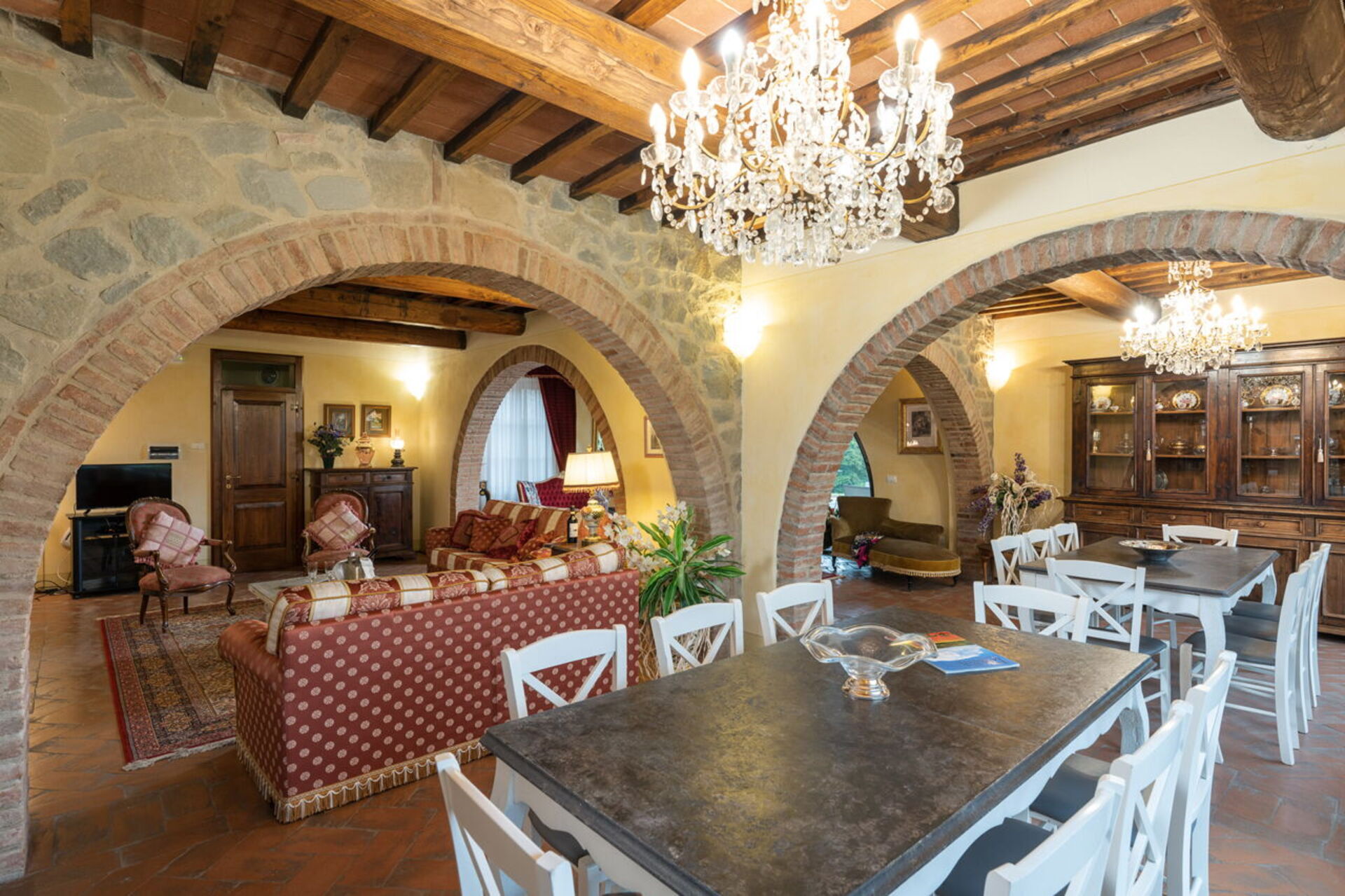 à l'arrivée à Dimora Di Castroncello vous trouverez une jolie propriété, propre et bien entretenue, avec vue sur les collines idéale pour des relaxantes vacances en Toscane. Peu importe comment vous passez vos journées... visites de musées, visites, shopping ou tout simplement en vous baladant à la campagne, quand vous arrivez à la maison, vous pouvez vous délasser à la piscine avec votre famille et vos amis et conclure au mieux un autre jour de vacances en Toscane. Manger avec les amis et la famille est une grande partie de la culture toscane. Profitez de la cuisine bien équipée pour préparer les repas avec des produits locaux pendant vos vacances. La cuisine comprend machine à café, four micro-onde, grille-pain, cuisinière et réfrigérateur, ainsi que, abondance de vaisselle et couverts pour un maximum de 12 personnes. Dînez «al fresco» comme un vrai toscan, la véranda complètement équipée est le cadre idéal pour apprécier la cuisine, s'amuser en famille, et profiter du jolie beau temps toscan.