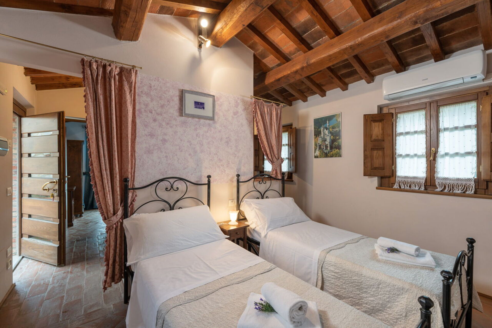 La plupart des gens aiment visiter les villes et les villages dans les alentours pendant les vacances, donc pour votre référence vous trouvez ici est une liste des lieux populaires avec les distances (à vol d’oiseau) en voiture depuis la propriété:Cortone 15 km, Arezzo 21 km, Montepulciano 38 km, Montalcino 58 km et Pérouse 70 km.