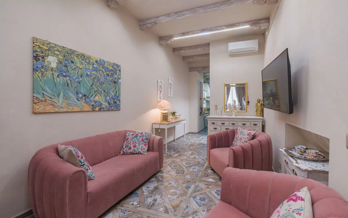 "Charme e Design" studio 67 m2 au 1er étage. Spacieux et clair, complètement rénové, aménagement confortable et de style: séjour/salle à manger avec 1 lit double et TV (écran plat), air-conditionné. Coin cuisine dans l'entrée (mini-four, 4 plaques à induction, bouilloire électrique, congélateur) avec table pour les repas. Douche/bidet/WC. Air-conditionné. Possibilité de chauffage uniquement du 01.11. au 07.04. Vue sur la ville. A disposition: lave-linge, fer à repasser, sèche-cheveux. Internet (Connexion WIFI, gratuit). Veuillez noter: détecteur de fumée, extincteur. IT046024C2EFXFZVT2