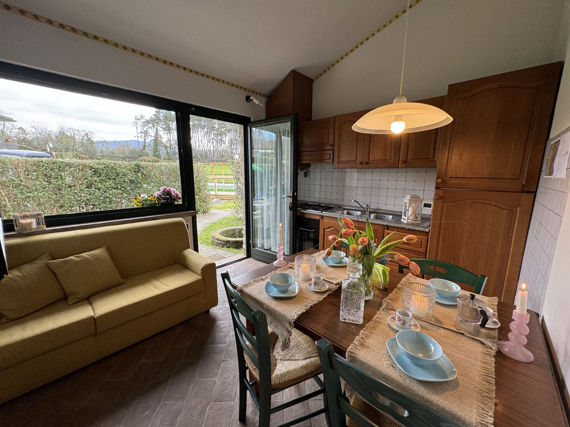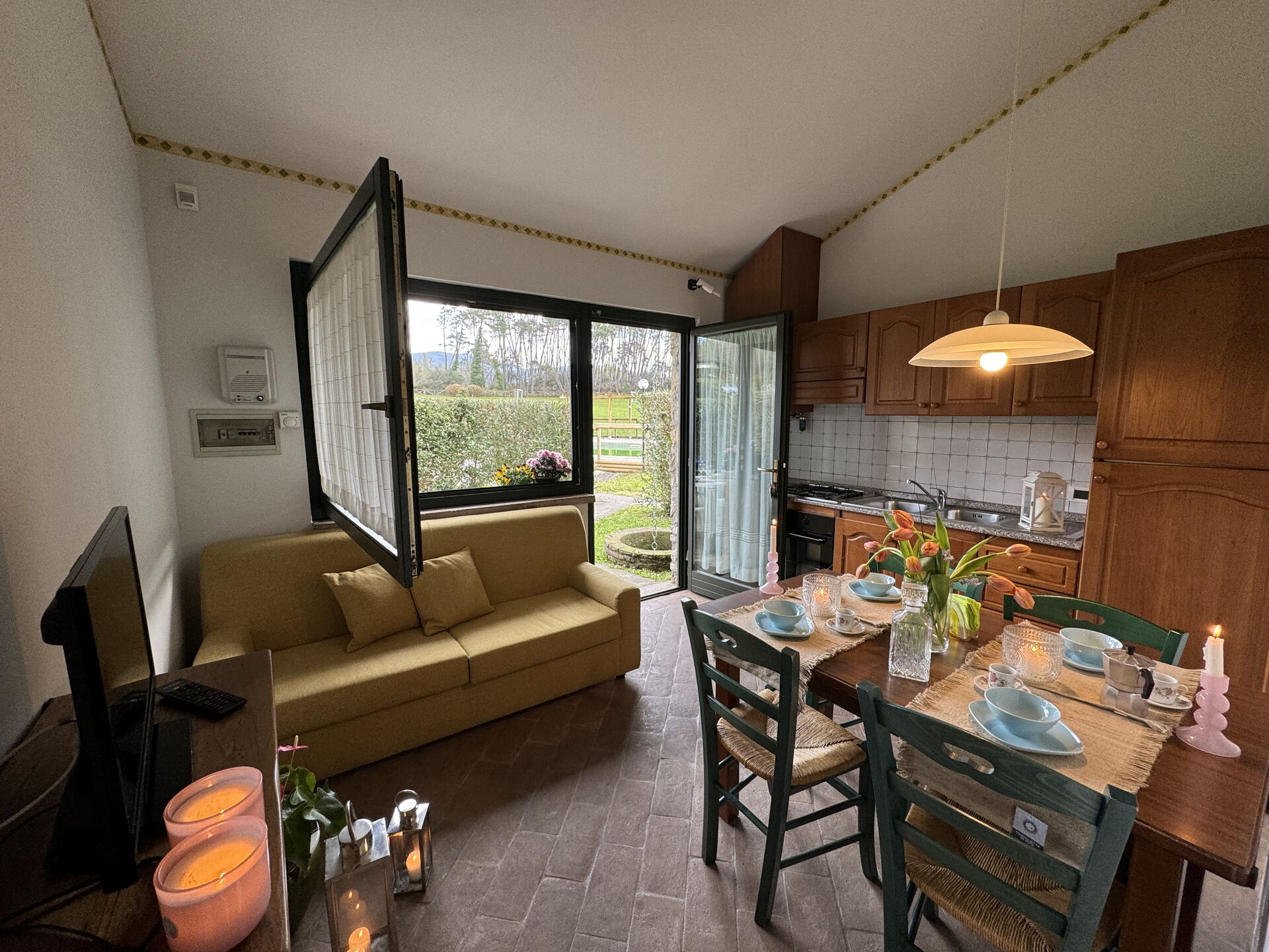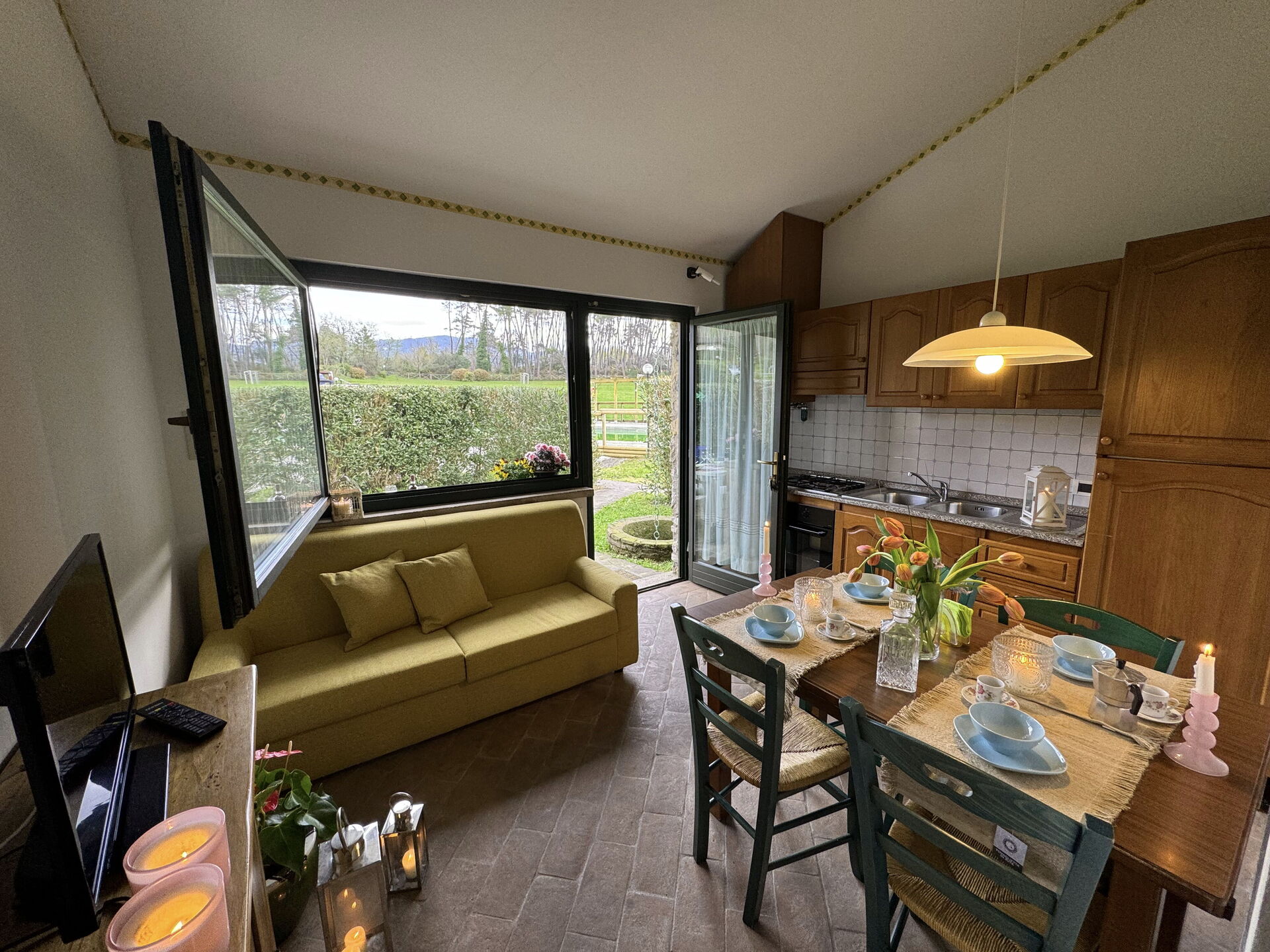 Il y a une cuisine y compris machine à café, cuisinière et réfrigérateur, ainsi que, assez de vaisselle et couverts jusqu'à quatre personnes. Dînez «al fresco» comme un vrai toscan, le jardin est le cadre parfait pour apprécier la cuisine, s'amuser en famille, et profiter du jolie beau temps toscan.