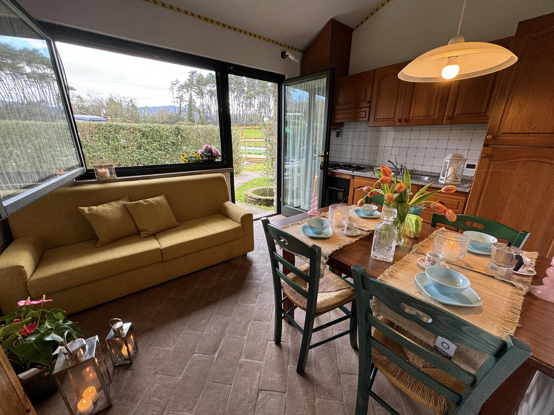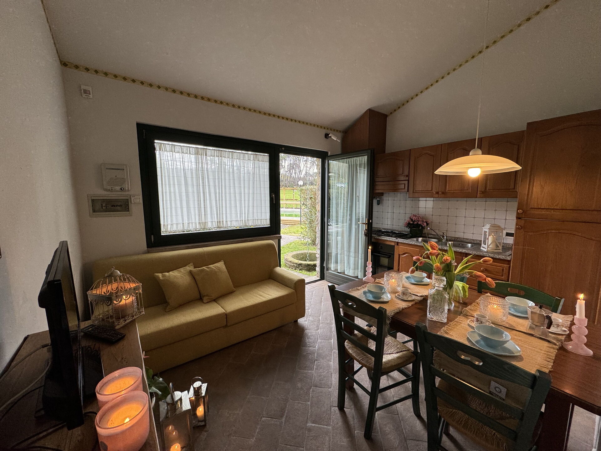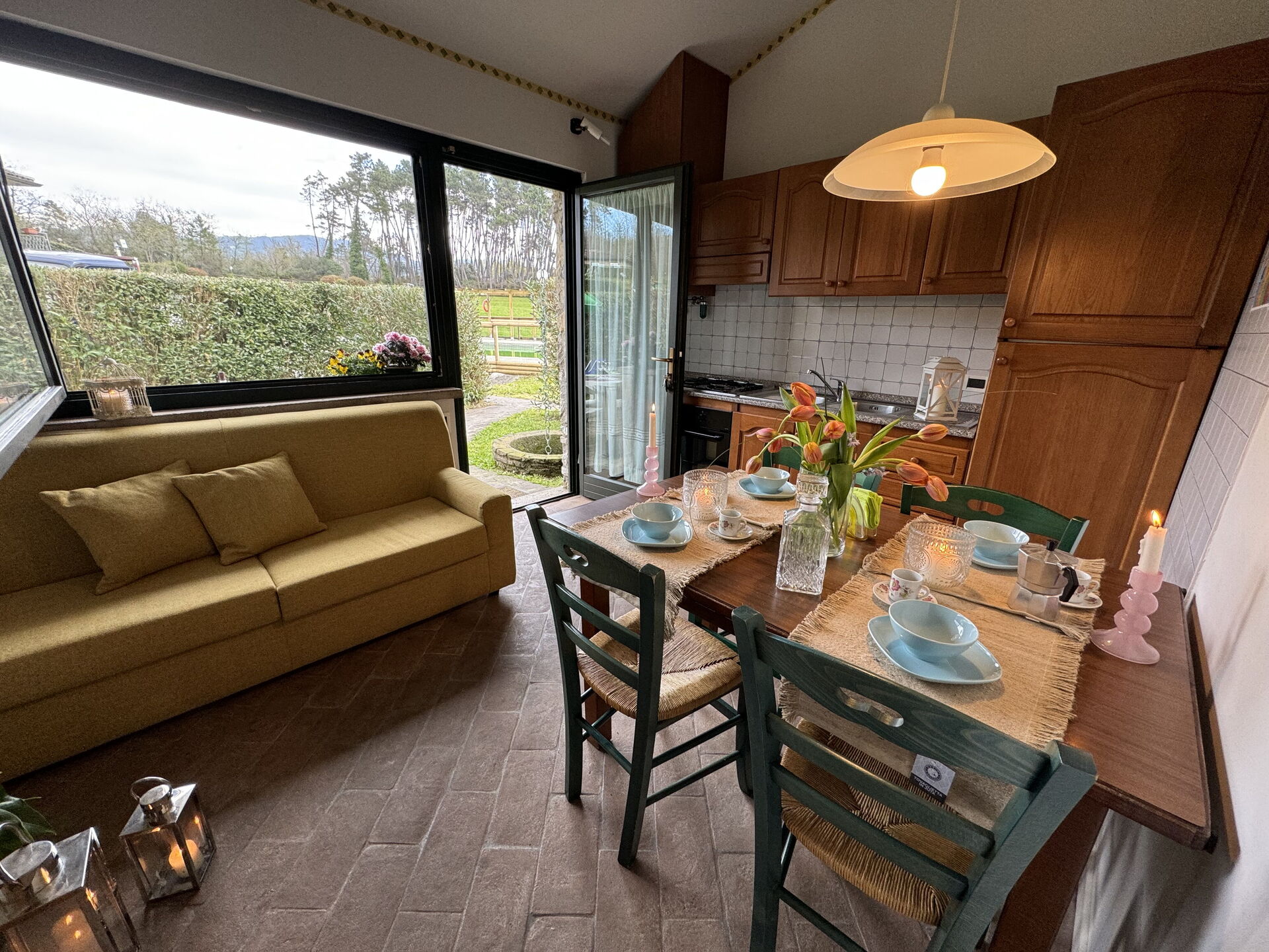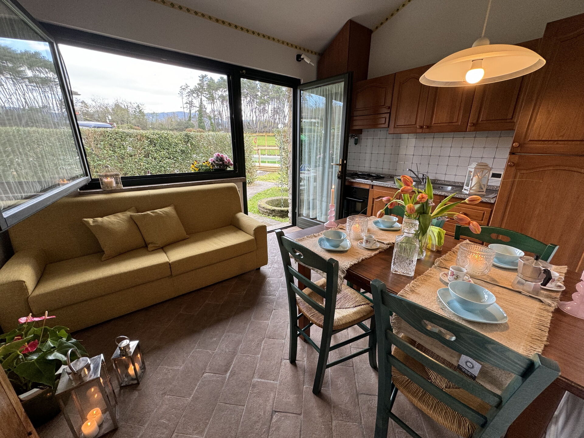 Il y a une cuisine y compris machine à café, cuisinière et réfrigérateur, ainsi que, assez de vaisselle et couverts jusqu'à quatre personnes. Dînez «al fresco» comme un vrai toscan, le jardin est le cadre parfait pour apprécier la cuisine, s'amuser en famille, et profiter du jolie beau temps toscan.