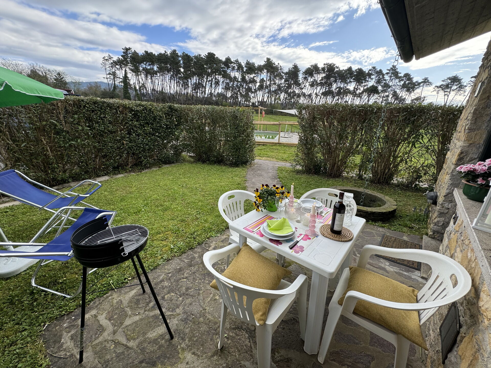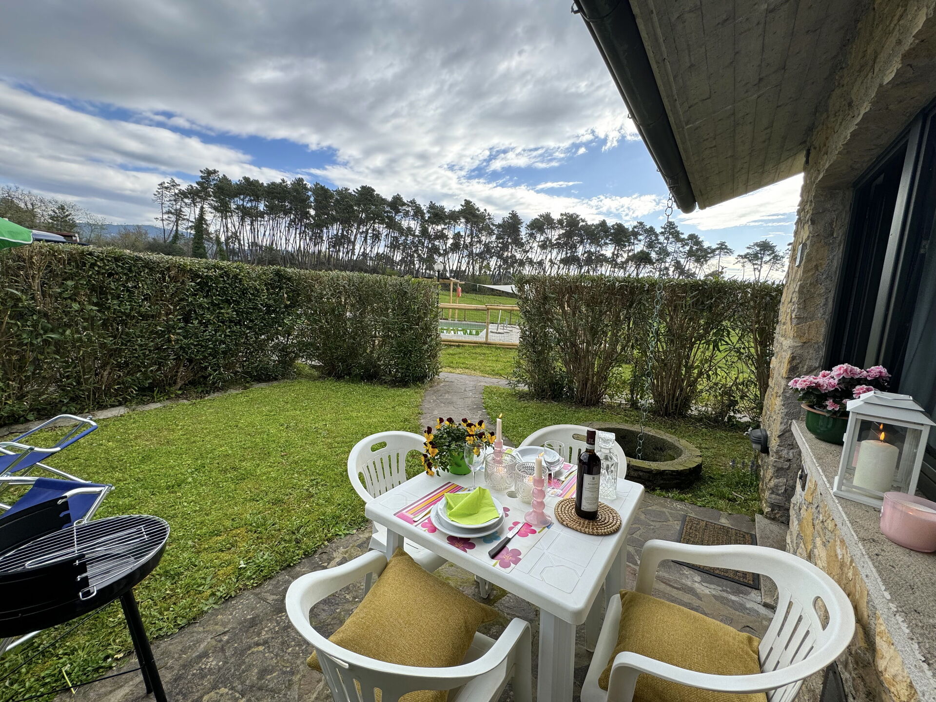 jardin (25 m2): barbecue, espace extérieur pour les repas en plein air, table à manger (personnes: 4), meuble de jardin.