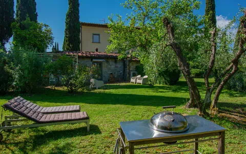 Magnifique grange en pierre, située dans un jardin bien entretenu et surplombant la campagne toscane. La rénovation, effectuée avec beaucoup de soin, a transformé l'intérieur en un véritable bijou. Idéal pour ceux qui souhaitent visiter Florence et les villes d'art, tout en profitant de la tranquillité de la campagne, loin de l'agitation de la ville. Maison de campagne "Il Fienile", 100 m au dessus du niveau de la mer. 2 maisons dans le même complexe de vacances. Location composée d'un bâtiment principal et d'une annexe, dans le quartier de Scandicci, à 7 km du centre de Firenze, à 12 km du centre de San Casciano in Val di Pesa, à 29 km du centre de Greve in Chianti, situation tranquille, ensoleillée sur un versant, quartier résidentiel, dans la verdure. En commun: terrain 4'000 m2 (clôturé). A usage privé: jardin 80 m2. Meubles de jardin, barbecue, place de parking sur le terrain. Magasins 2.5 km, supermarché 2.5 km, arrêt de bus 2.5 km, plage de sable "Versilia" 100 km, centre thermal "Rapolano Terme" 98 km, baignade en lac "Bilancino" 39 km. Terrain de golf (18 trous) 17 km. Attractions à proximité: Palazzo Pitti 9 km, Piazzale Michelangelo 10 km, Piazza del Duomo 12 km, Galleria dell'Accademia 13 km, Galleria degli Uffizi 14 km, Museo Nazionale del Bargello 14 km. Veuillez noter: le propriétaire habite sur le même terrain.