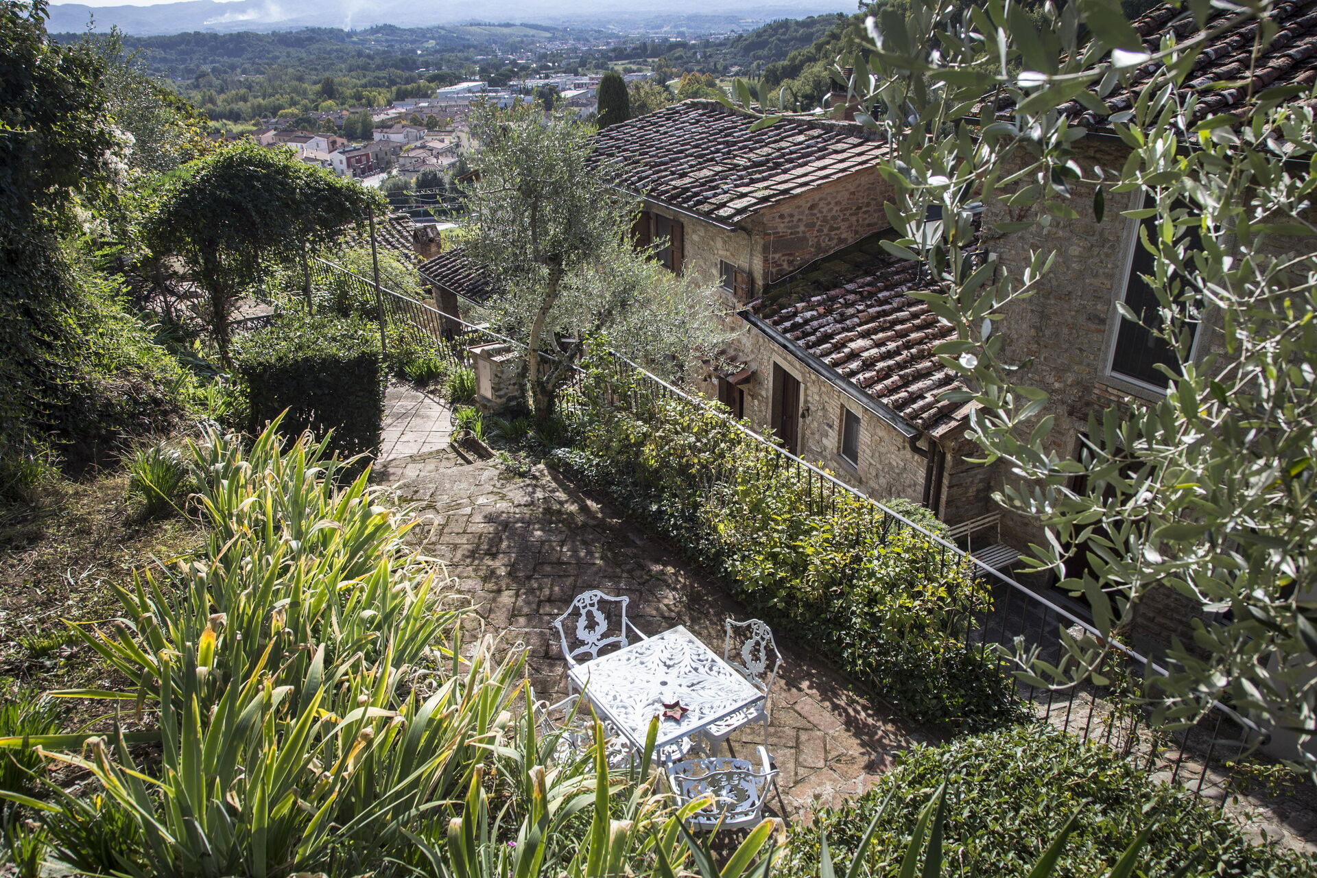 Pool area is 40 meters away, on the hilltop surrounded by a beautiful fenced garden, and it's shared with other guests.