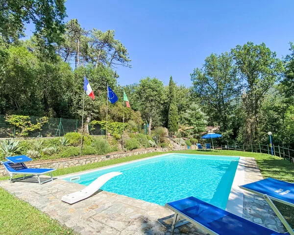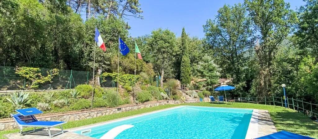 Maison à 2 apts rustique "Alle Piane", de 2 étages, environnée par les arbres. À 4 km du centre de Lucca, situation isolée, tranquille, à 20 km de la mer, à 20 km de la plage, dans la verdure, dans la forêt. En commun: terrain 7 ha, étang. A usage privé: jardin (pas clôturé), piscine (12 x 6 m, profondeur 140 - 300 cm, disponibilité saisonnière: 30.Jun. - 31.Aou.). Entretien de la piscine par le propriétaire/jardinier. Accès en voiture (600 m chemin non goudronné). Place de parking près de la maison. Magasin d'alimentation 1 km, bar 1 km, boulangerie 1 km, arrêt de bus 500 m, plage de sable "Marina di Vecchiano" 18 km. Attractions à proximité: Aeroporto Pisa 25 km. Veuillez noter: Le propriétaire habite dans une partie de maison indépendante. Le propriétaire a un chien. Animaux dans le voisinage.