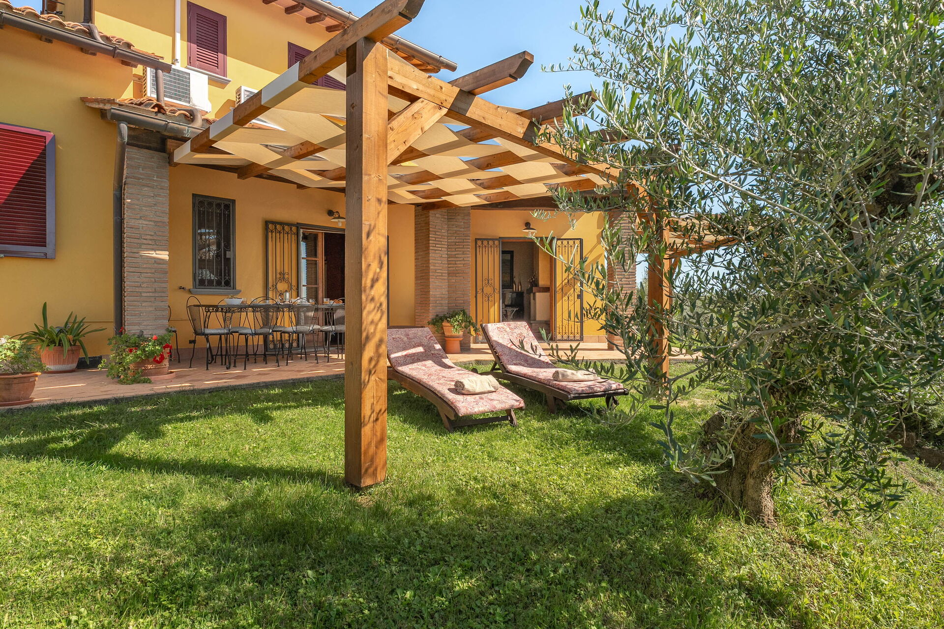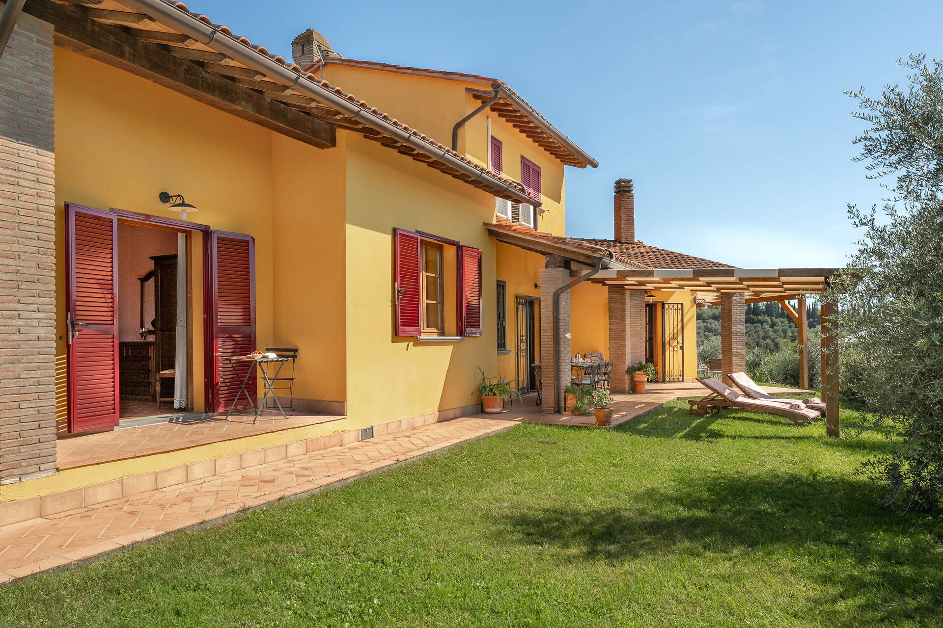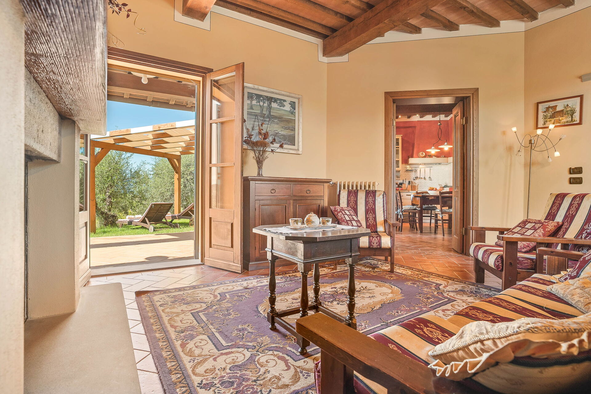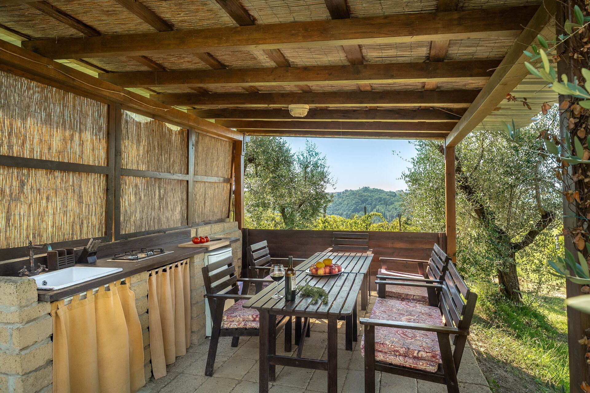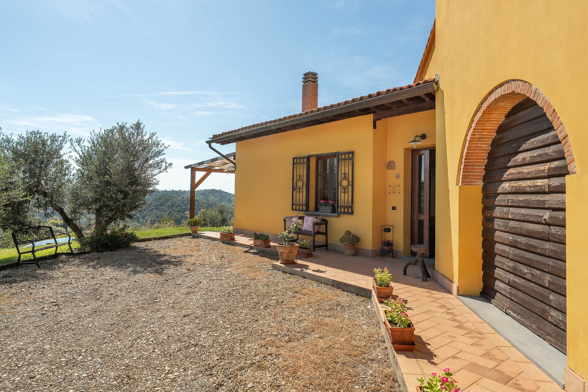 à l'arrivée vous serez accueillis par le propriétaire, ou une personne de sa confiance, et vous trouverez une jolie propriété, propre et bien entretenue, avec vue sur les collines idéale pour des vacances tranquilles en Toscane. Pour votre plaisir vous trouverez une piscine privée où vous pouvez vous détendre tout en dégustant une bonne boisson fraîche après une mouvementée journée de visites de musées. Si vous aimez cuisiner pour la famille et les amis il y a une cuisine bien equipée y compris machine à café, grille-pain et cuisinière, ainsi que, assez de vaisselle et couverts jusqu'à huit personnes. Si vous préférez dîner «al fresco», il y a à votre disposition une véranda entièrement meublée où vous pourrez profiter du beau temps tout en mangeant en plein air.