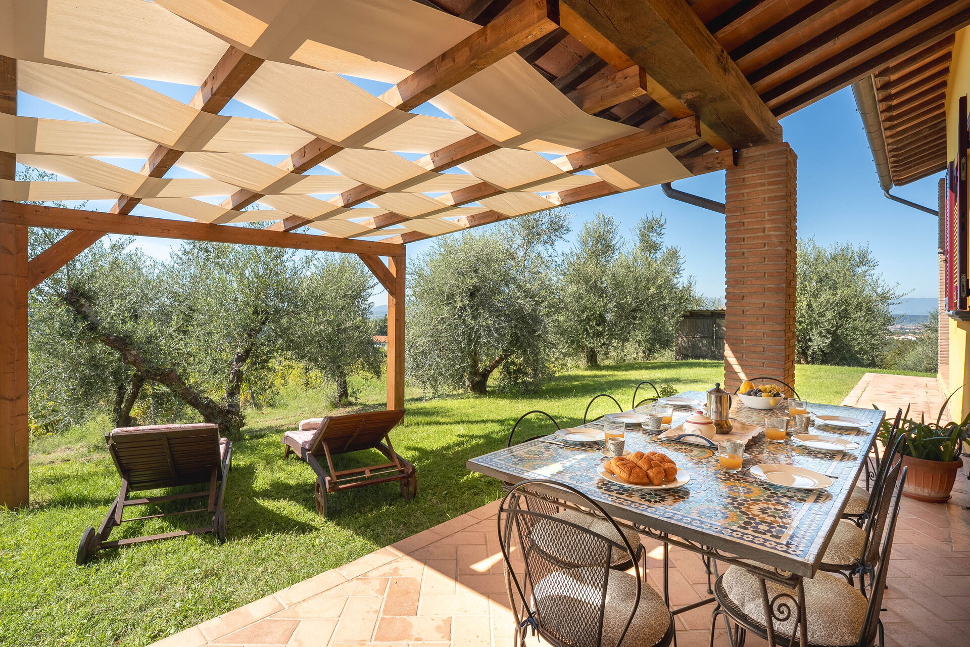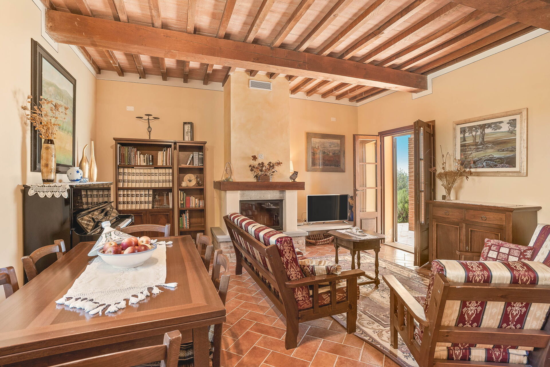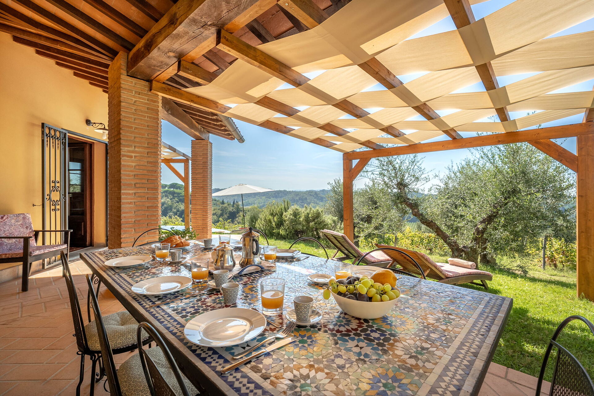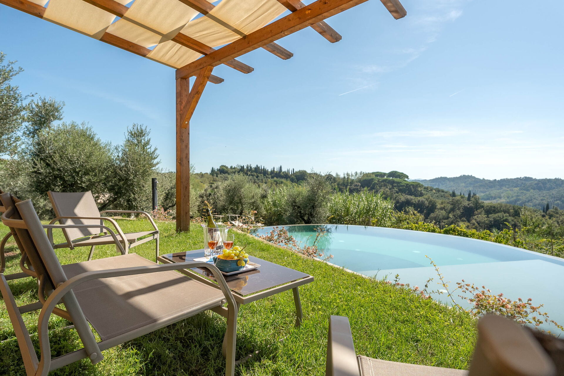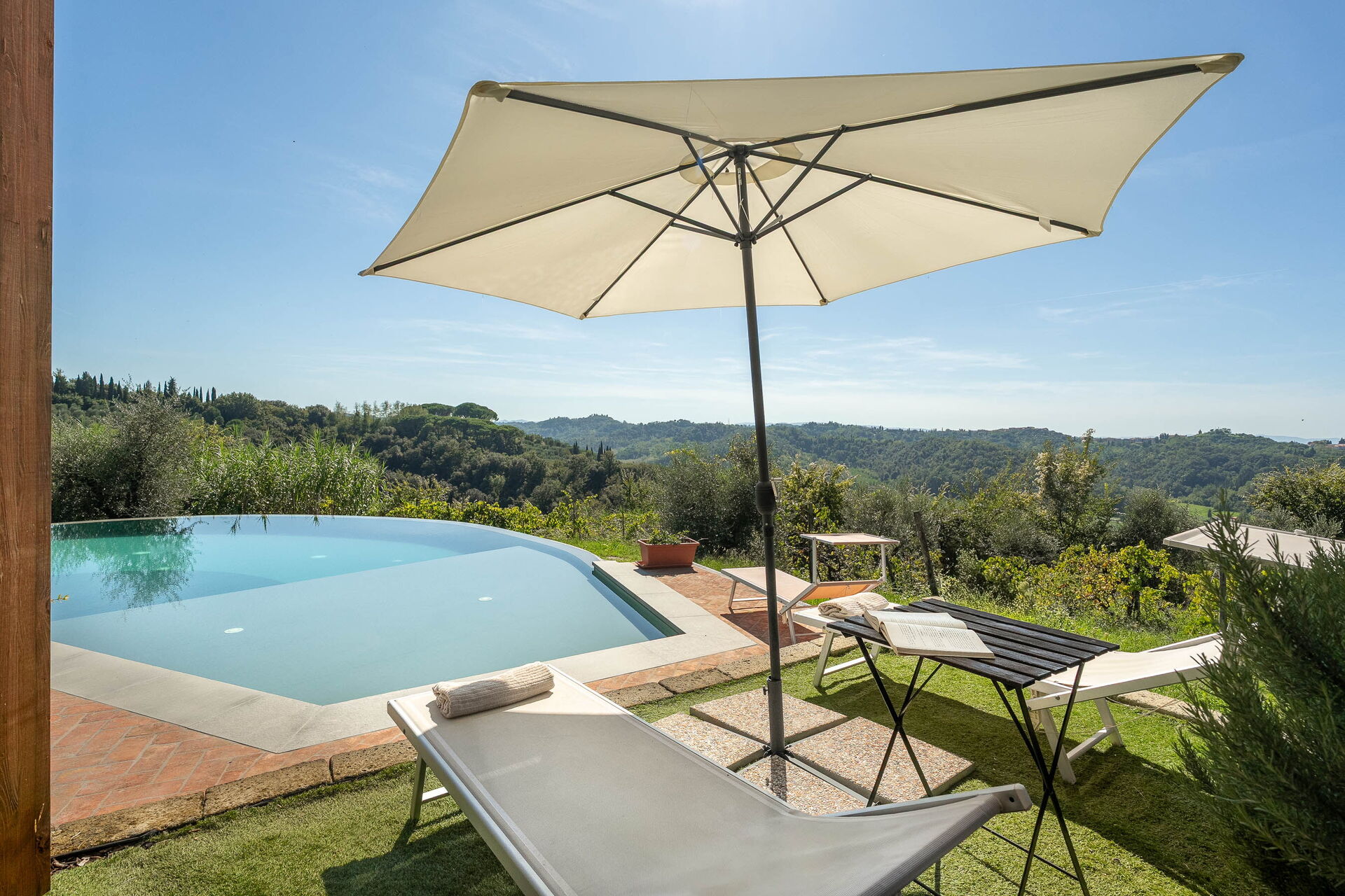 à l'arrivée vous serez accueillis par le propriétaire, ou une personne de sa confiance, et vous trouverez une jolie propriété, propre et bien entretenue, avec vue sur les collines idéale pour des vacances tranquilles en Toscane. Pour votre plaisir vous trouverez une piscine privée où vous pouvez vous détendre tout en dégustant une bonne boisson fraîche après une mouvementée journée de visites de musées. Si vous aimez cuisiner pour la famille et les amis il y a une cuisine bien equipée y compris machine à café, grille-pain et cuisinière, ainsi que, assez de vaisselle et couverts jusqu'à huit personnes. Si vous préférez dîner «al fresco», il y a à votre disposition une véranda entièrement meublée où vous pourrez profiter du beau temps tout en mangeant en plein air.
