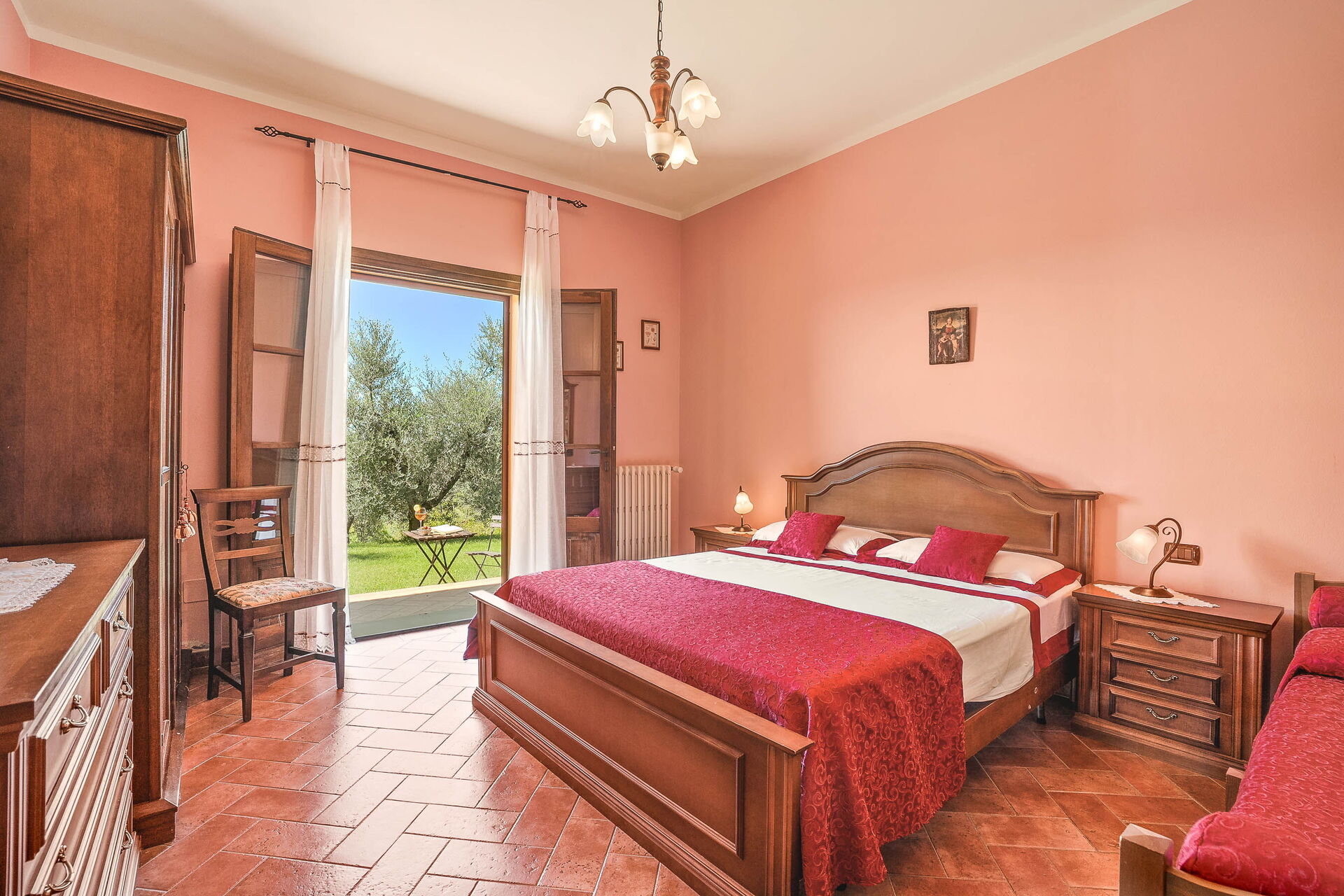 chambre à coucher 1: lit double, lit à une place, internet WIFI, climatisation, sortie sur le jardin.