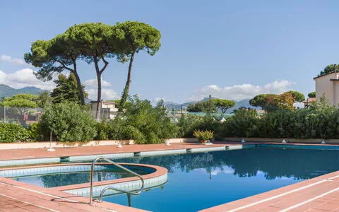 Résidence " Appartamento Residence Henderson". 80 appartements dans la résidence. À 1.1 km du centre de Cinquale, à 4.1 km du centre de Forte Dei Marmi, à 5.2 km du centre de Marina di Massa, dans un quartier résidentiel, à 1 km de la mer, à 1 km de la plage. En commun: terrain (clôturé), piscine cloturée (12 x 25 m, profondeur 40 - 200 cm, disponibilité saisonnière: 15.Jun. - 15.Sep. horaires d'ouverture de la piscine: 10:00-13:00 et 15:00-19:00) avec marches intérieures. Douche extérieure, tennis, éclairé, place de parking No 39 sur le terrain. Supermarché 700 m, centre commercial 7.7 km, restaurant, bar 500 m, arrêt de bus 100 m, gare ferroviaire "Massa" 7 km, plage de sable 1 km. Terrain de golf (18 trous) 6 km. Attractions à proximité: Pietrasanta 11 km, Viareggio 23 km, Carrara Cave Fantiscritti 19 km, Pisa 49 km, Lucca 48 km, Riomaggiore 5 Terre 51 km. Les lacs connus sont facilement accessibles: Torre del Lago 36 km, Lago di Massaciuccoli 49 km. Région de randonnées: Antro del Corchia Levigliani 25 km. Veuillez noter: voiture recommandée. Résidence avec portail électrique. Toutes les maisons/appartements sont aménagés individuellement. Parking à vélos couvert. Bonnet de bain obligatoire, parasols et chaises longues en nombre limité et sans garantie.