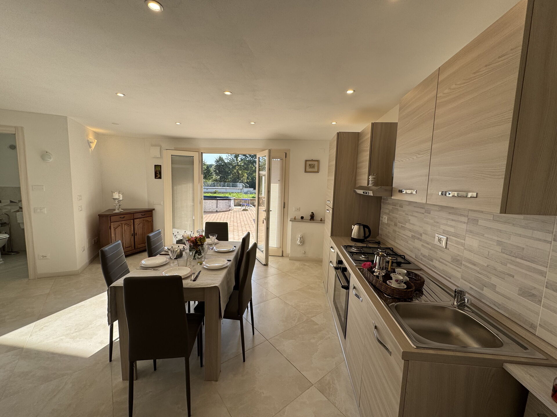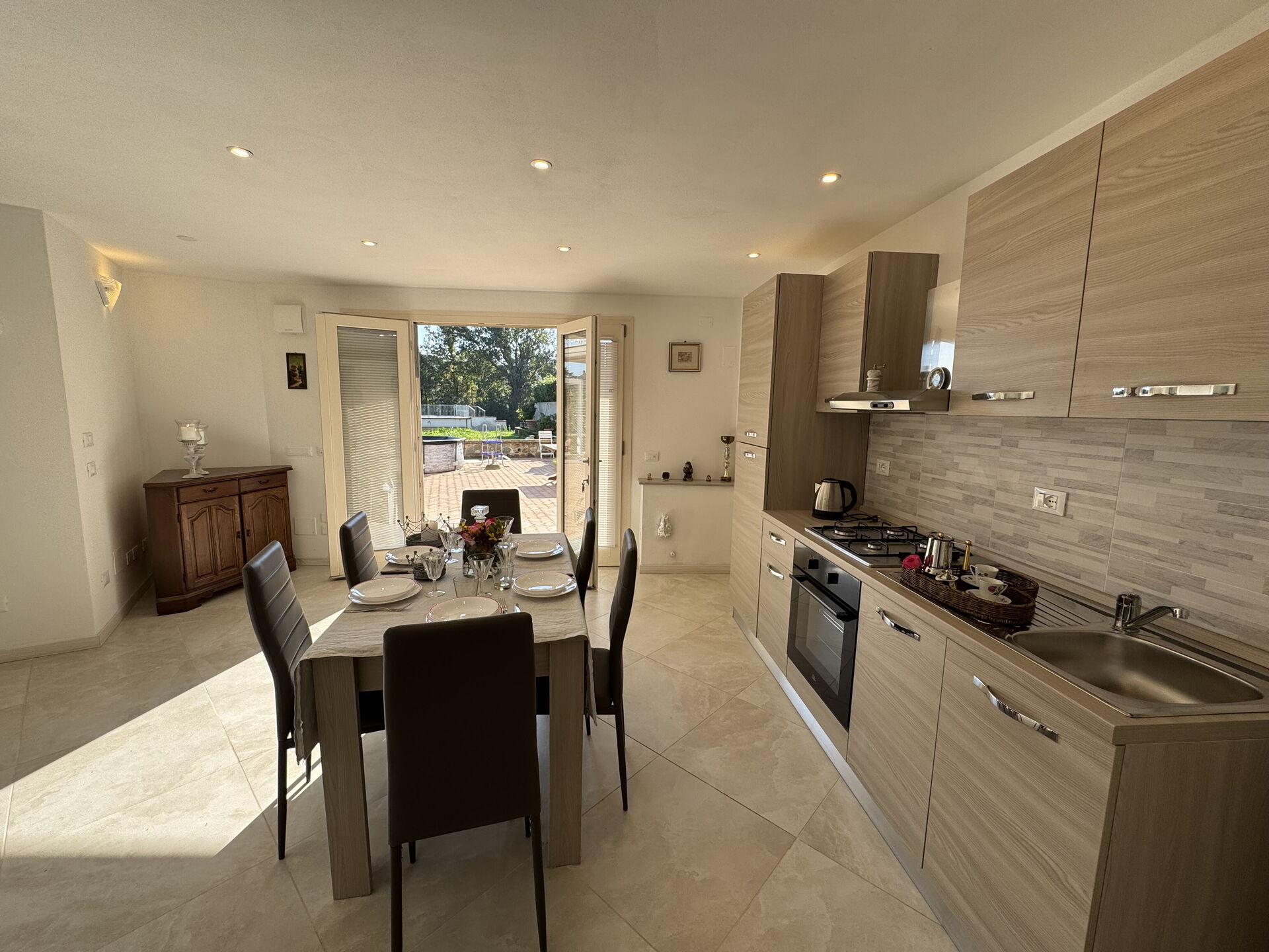 cuisine: cuisine bien équipée, table à manger, réfrigérateur, congélateur, cuisinière, four, grille-pain, machine à café italienne, machine à café américaine, internet WIFI, télévision, sortie sur la terrasse.