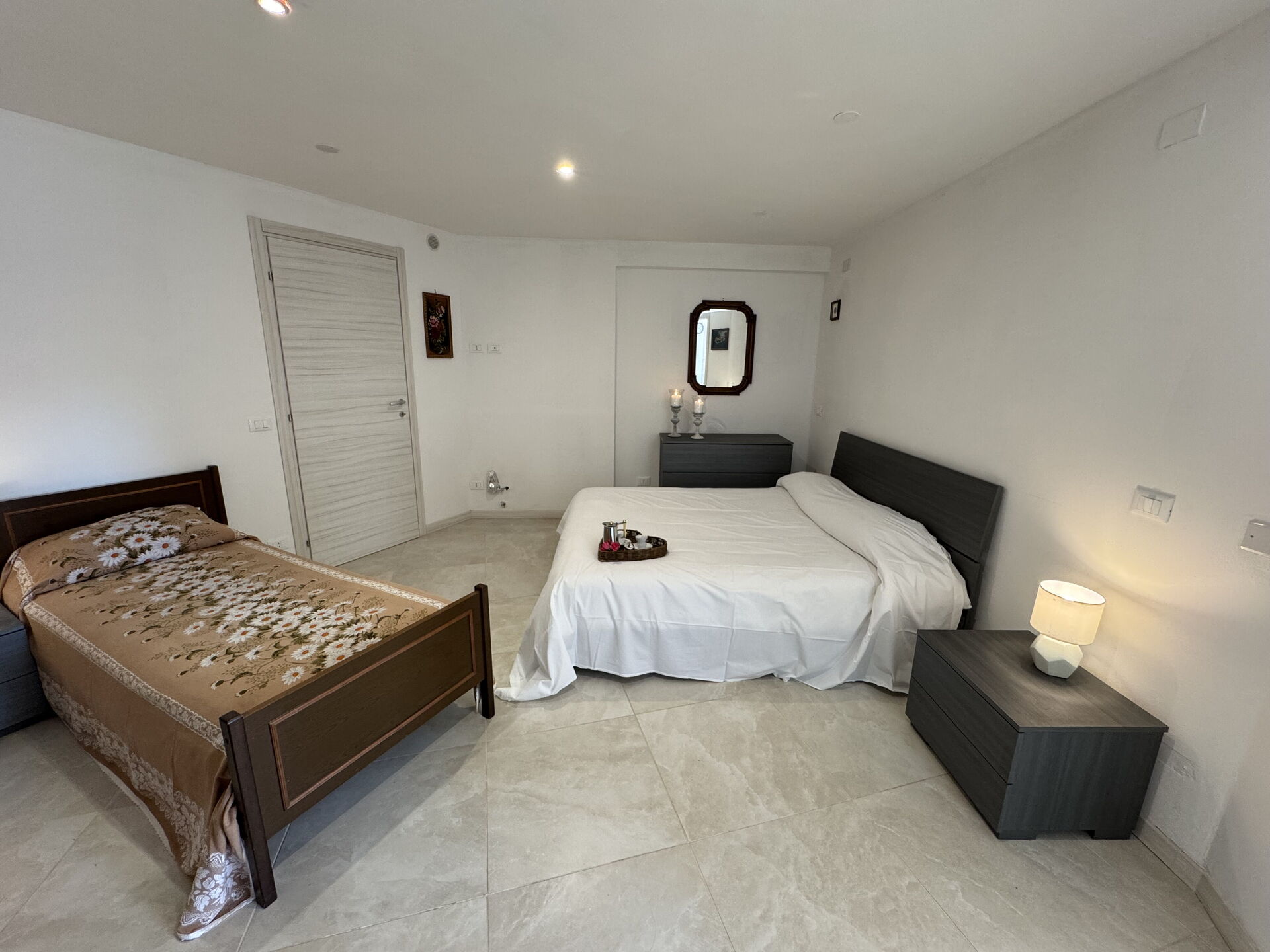 chambre à coucher: deux lits à une place, sortie sur la terrasse.