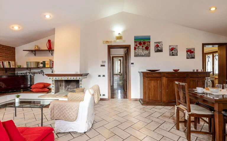 Salon: bureau, cheminée, table à manger, canapé-lit double, internet WIFI, tv satellitaire, sortie sur le balcon.