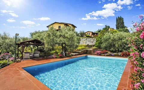 Maison individuelle accueillante, confortable "Delfina", 98 m au dessus du niveau de la mer, de 2 étages. Dans le quartier de Marti, à 5 km du centre de Montopoli in Val d' Arno, situation tranquille dans un quartier résidentiel. A usage privé: terrain à l'état naturel 3'000 m2 (clôturé), jardin naturel 70 m2 (clôturé), piscine (5 x 10 m, profondeur 120 - 220 cm, disponibilité saisonnière: 15.Avr. - 15.Oct.) avec systeme d'électolyseur au sel. Tonnelle, meubles de jardin. Infrastructures de la Maison: air-conditionné, lave-linge, possibilité de chauffage uniquement du 15.Nov. - 15.Avr.. Place de parking sur le terrain. Magasin d'alimentation 2 km, supermarché 4 km, restaurant 1 km, arrêt de bus 600 m, gare ferroviaire 4 km. Attractions à proximité: Pisa 38 km, Firenze 58 km, Lucca 48 km, Forte dei Marmi 70 km, Siena 85 km, San Gimignano 45 km. Veuillez noter: équipement pour bébés sur demande (inclus). Le propriétaire habite sur le même terrain.
