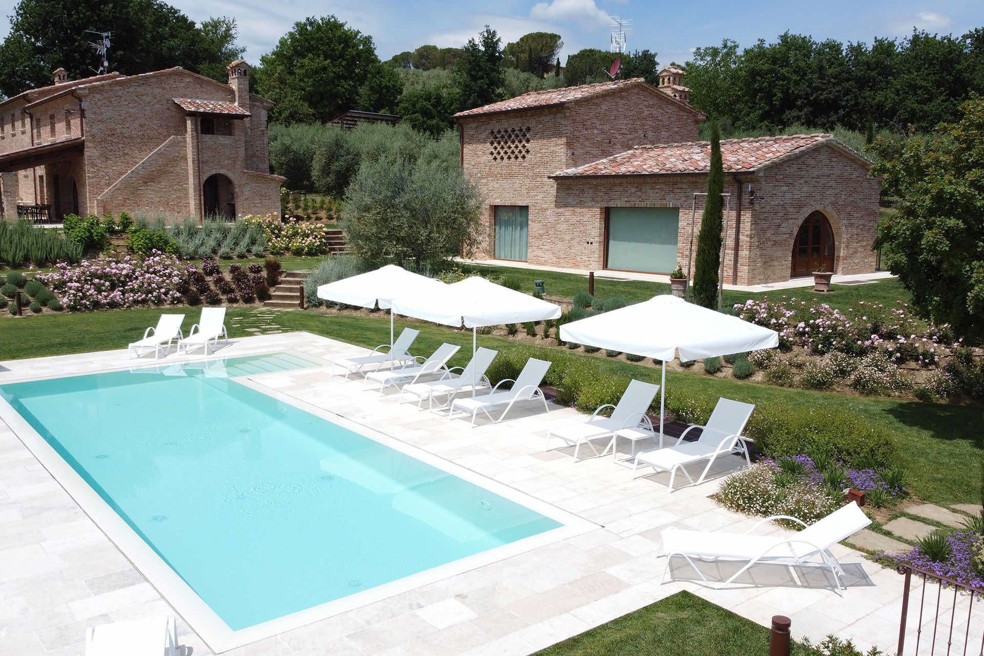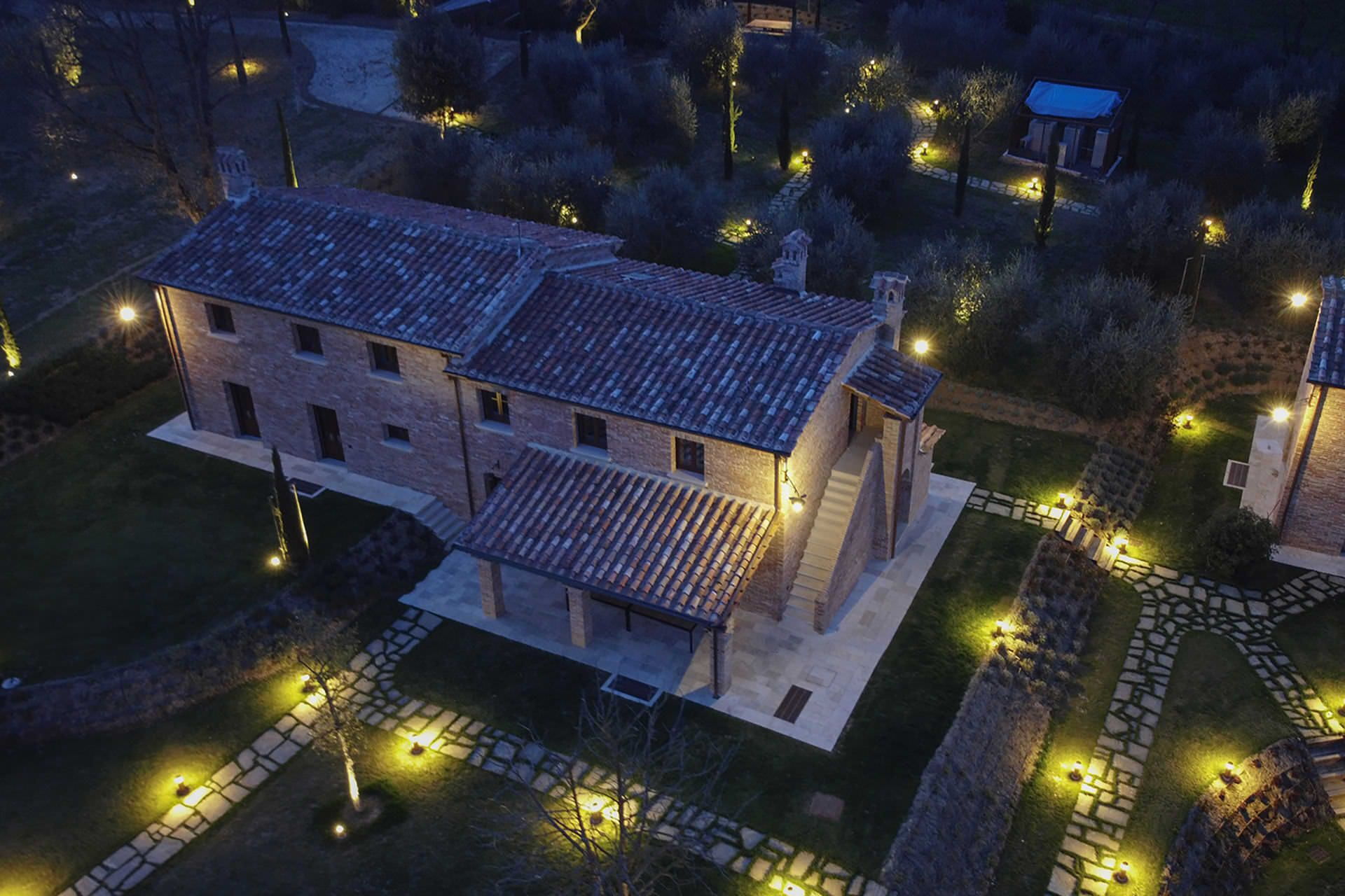 The villa is located in the Arezzo countryside, surrounded by a large private park, a perfectly maintained country road with the characteristic cypress tree leading to the property, the nearest town with all services is Foiano della Chiana 6 km; Cortona 20 km; Arezzo 25 km; Montepulciano 27 km; Siena 57 km; Florence (Airport) 100 km; Pisa (Airport) 166 km; Rome (Airport) 223 km.