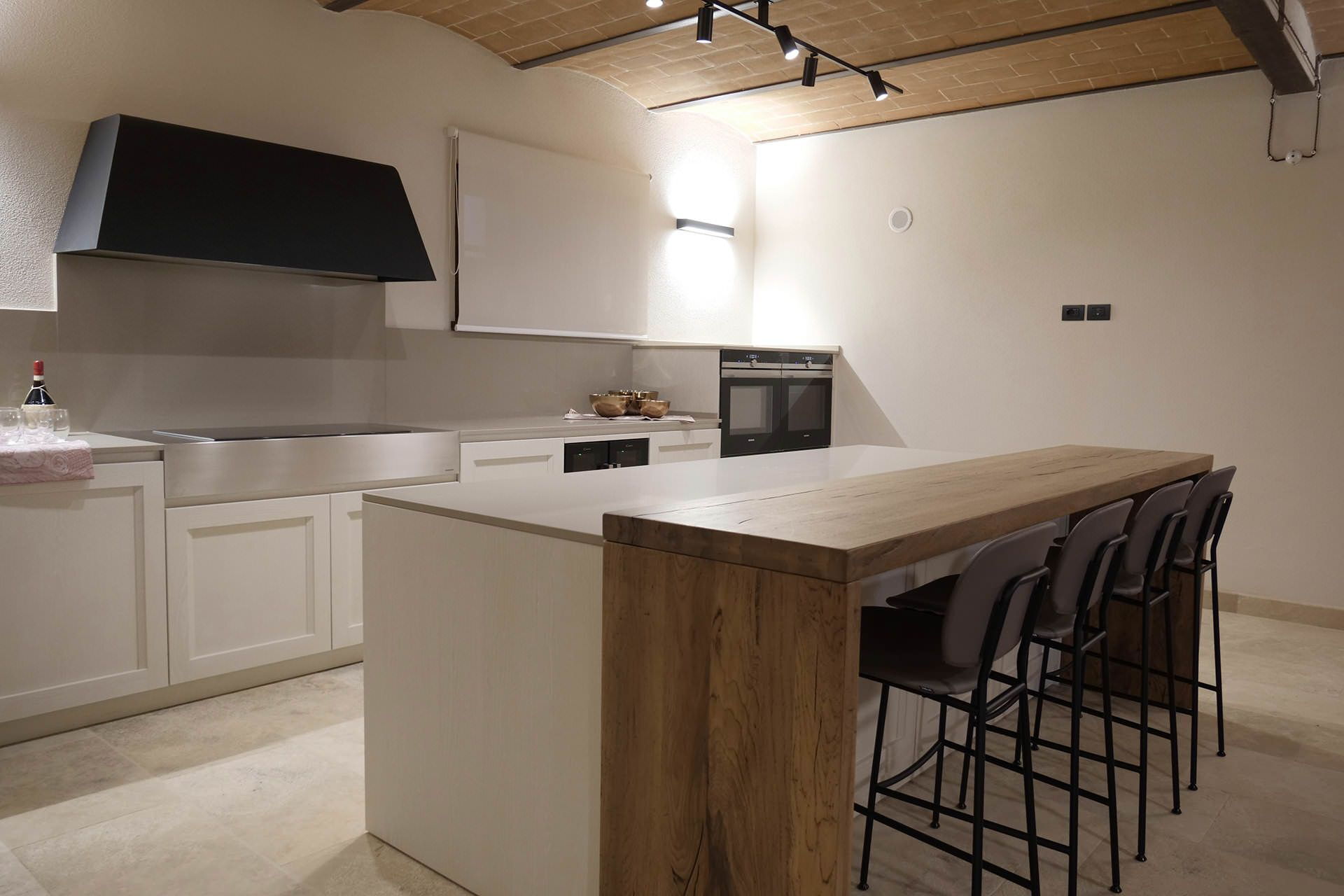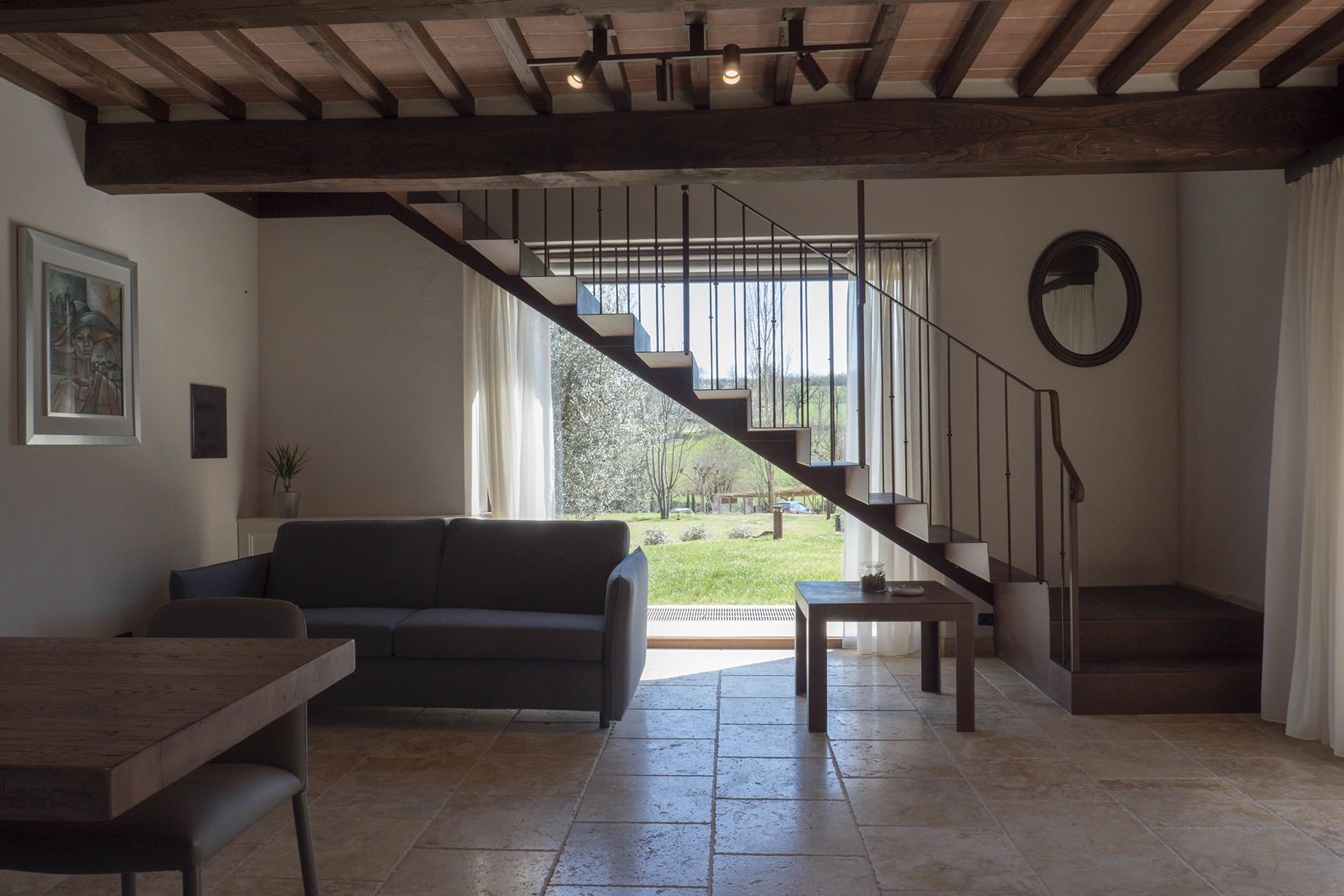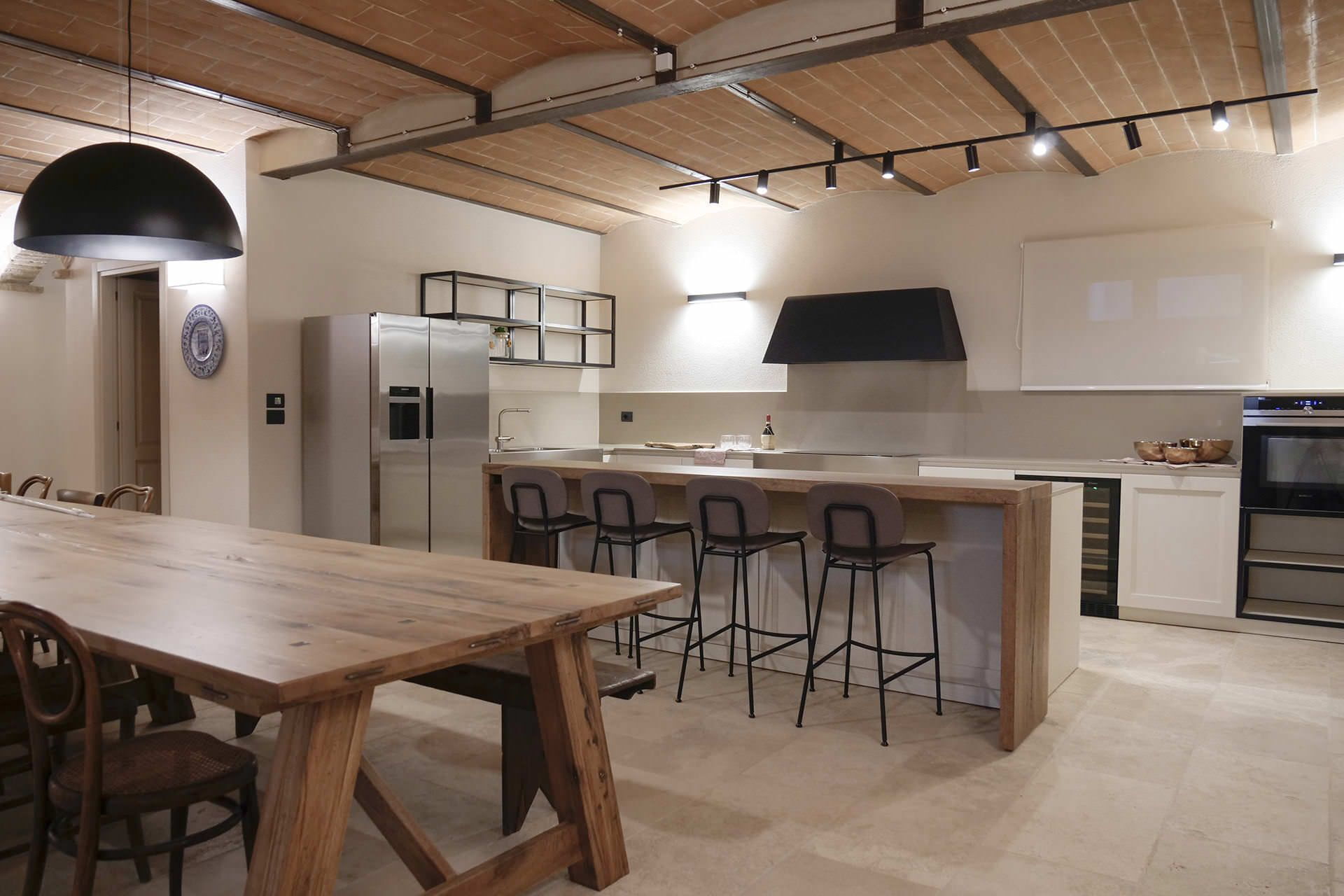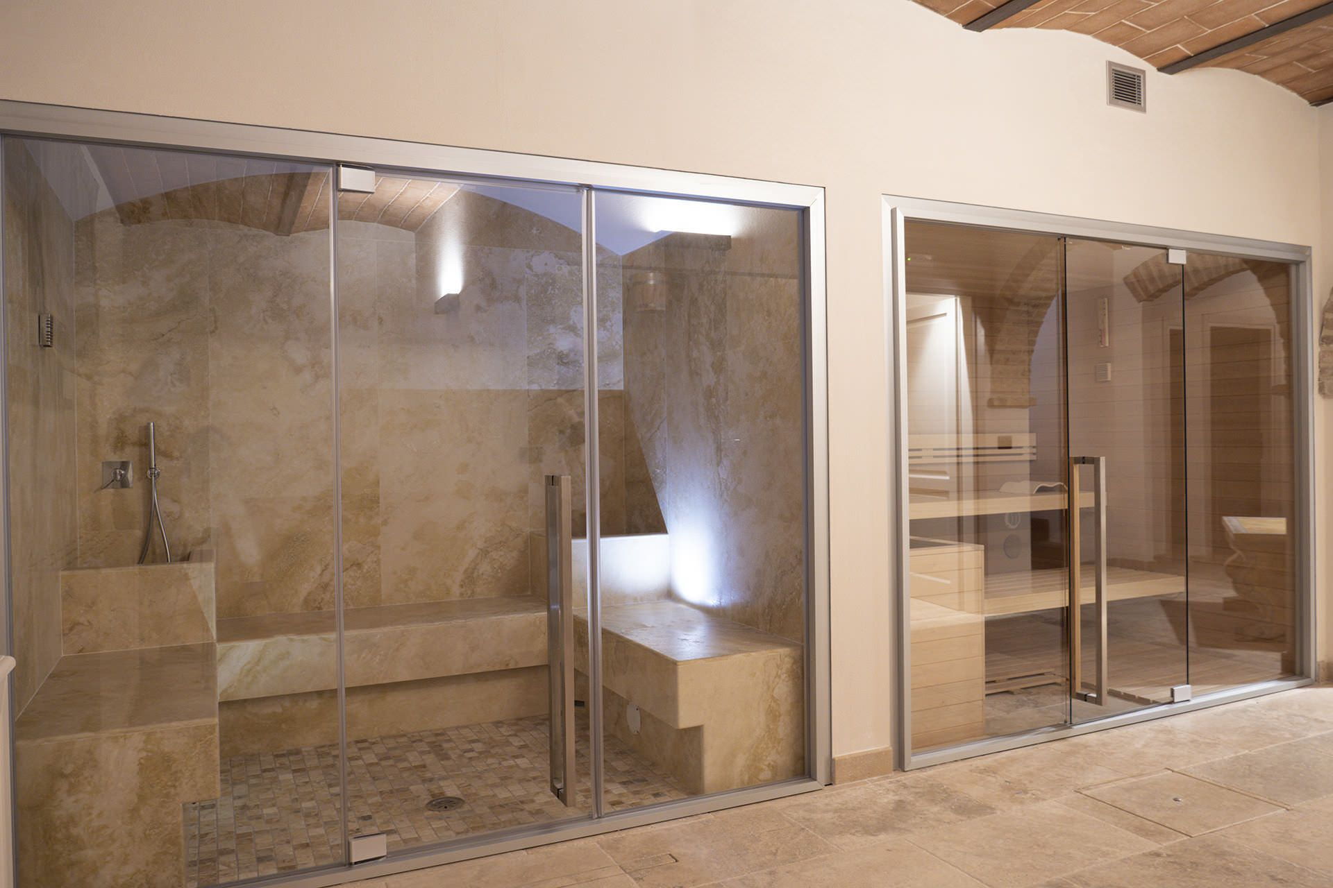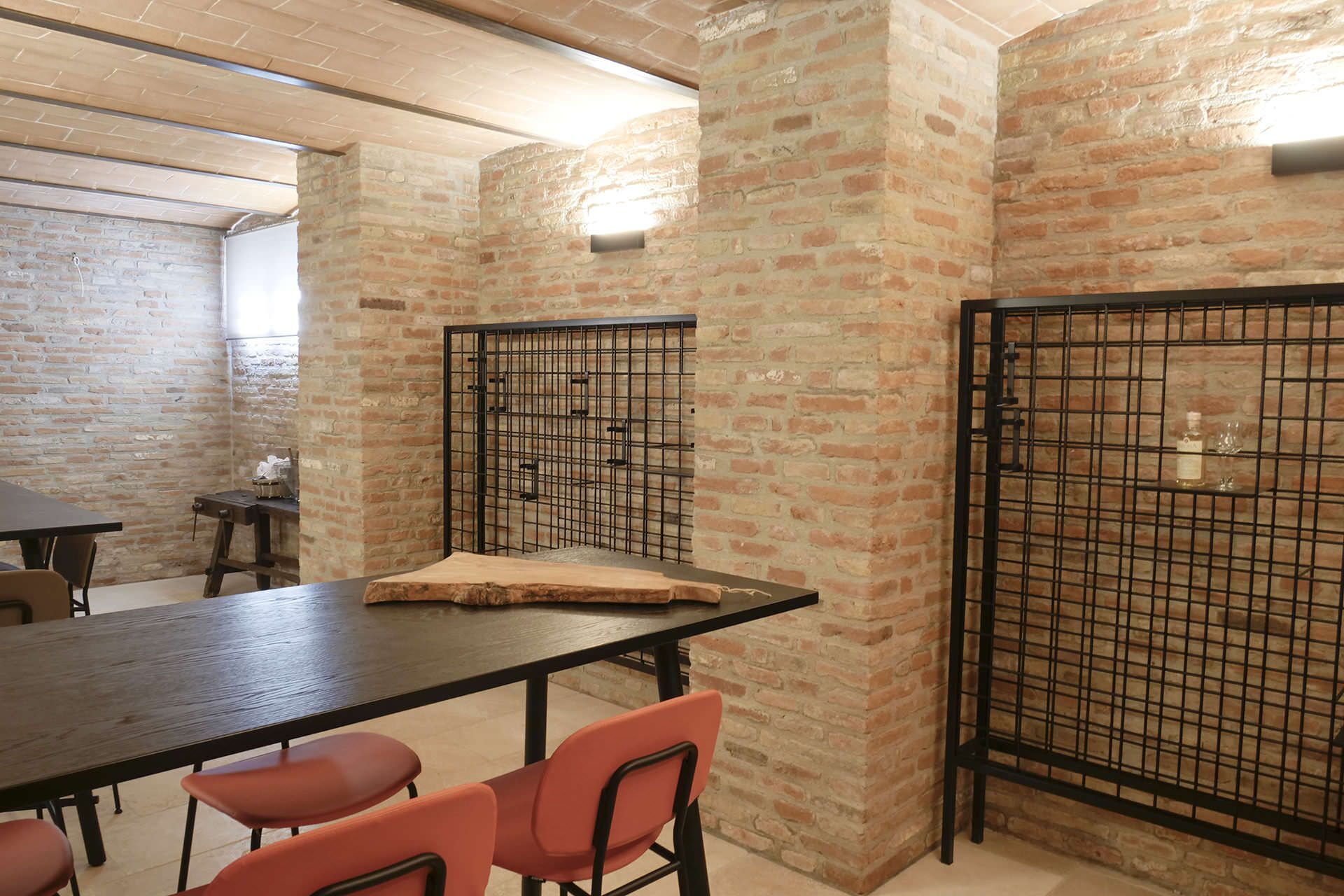 The basement floor: there is a second kitchen and large open space area where to organize also activities such as wine tasting, cooking classes, there is a cellar where guests can purchase some of the finest Tuscan wines such as Montalcino, Montepulciano, Chianti etc.) the large space also include a living area with sofas and billiard.
