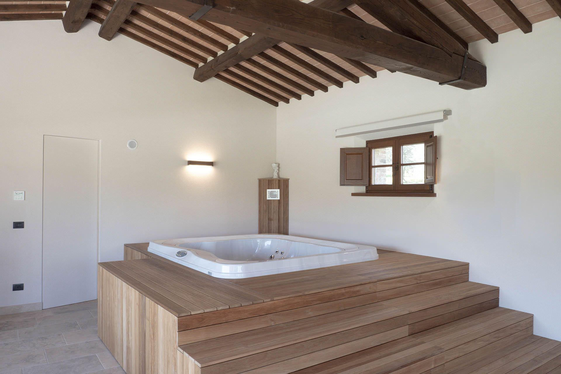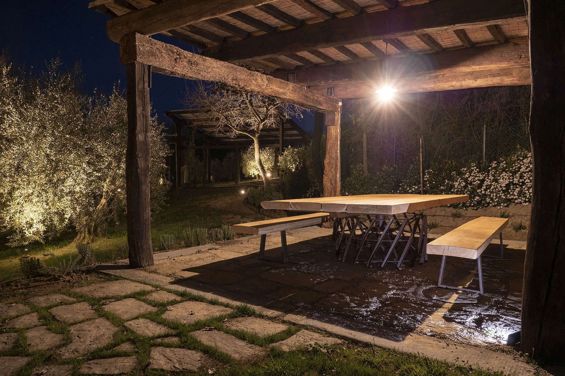 Villa la Ripa is set in a very quiet location few km from Foiano della Chiana where guests can find all services needed. The large private park that surround the property is perfectly maintained and features a magnificent private swimming pool of 12x4 mt. equipped with sun lounges and umbrellas. A built in covered patio with a large table and chairs with a near barbeque and pizza oven is the perfect spot where to organize al fresco meals enjoying the nature.