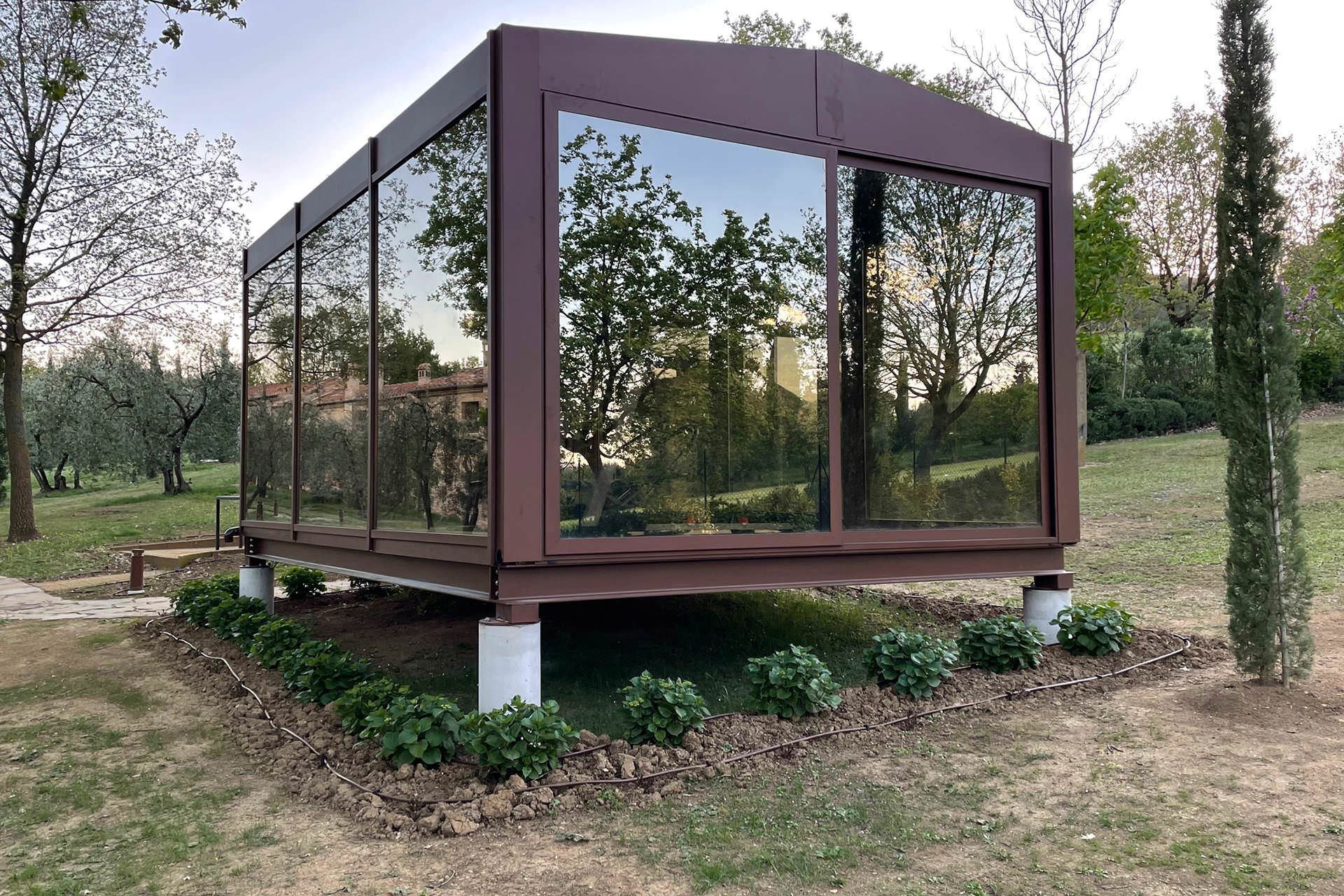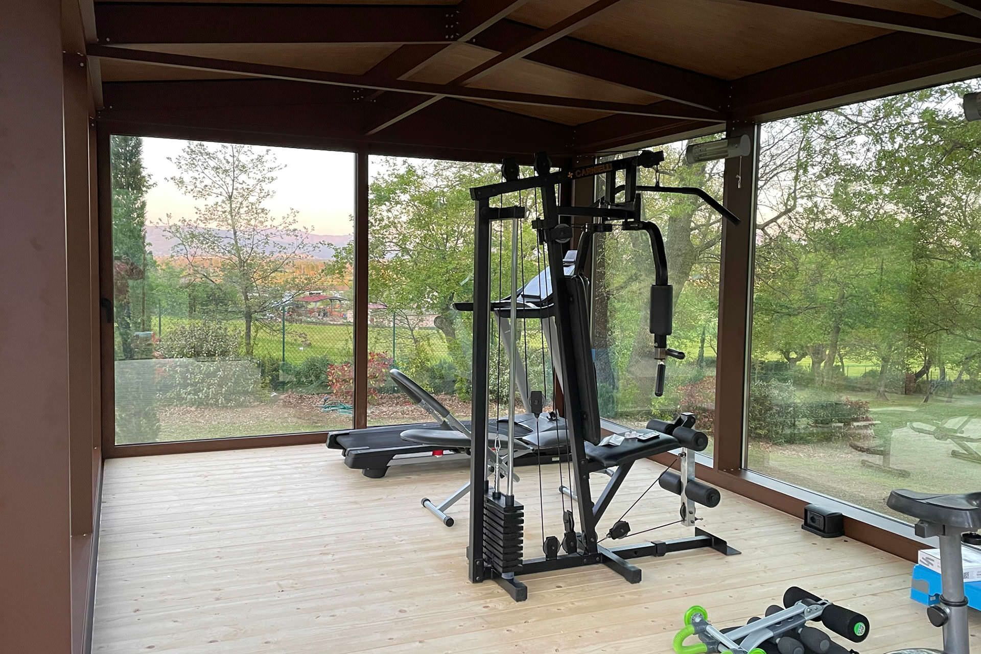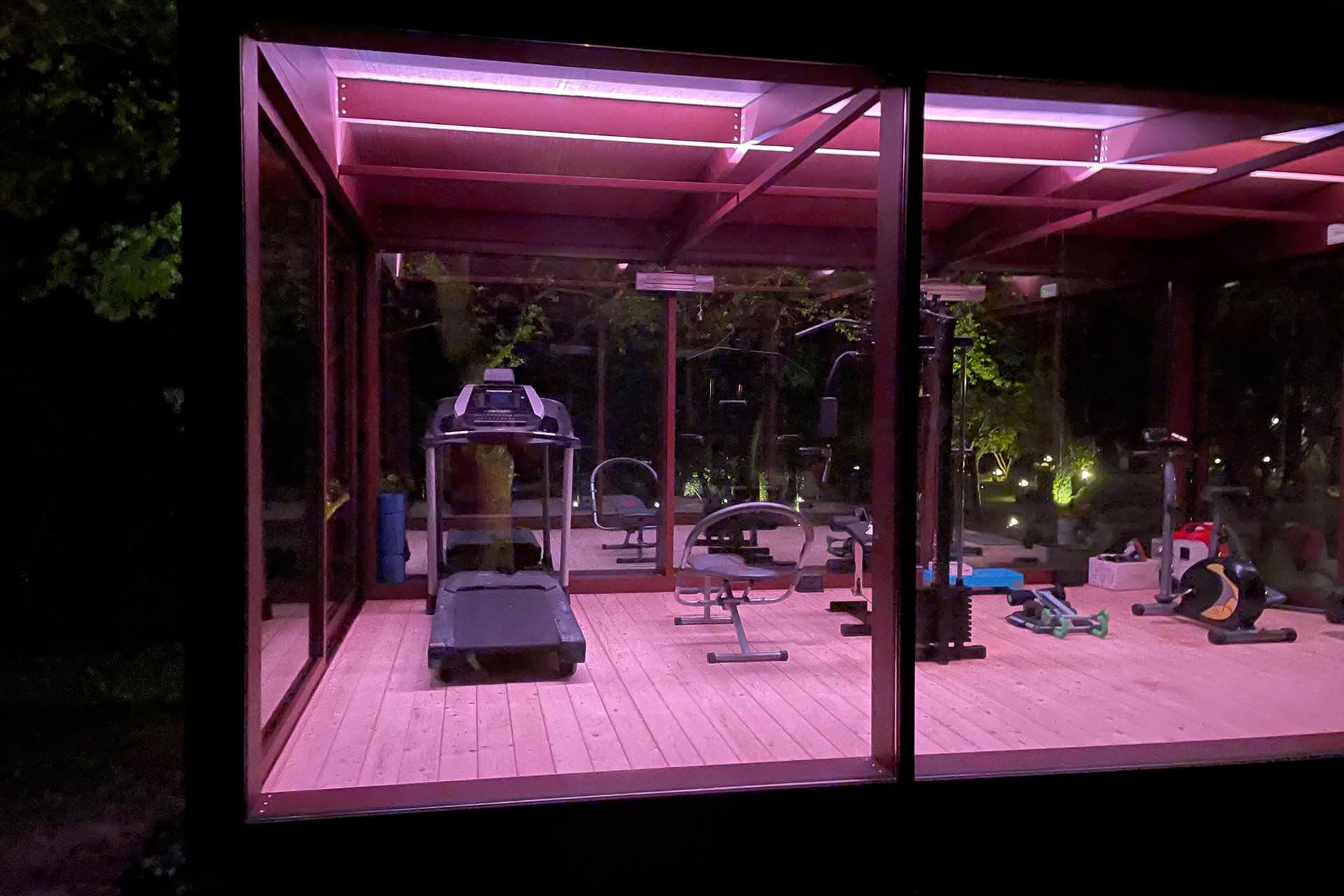 In the middle of the park owner built a glass room equipped as a Gym room let guest training feeling like being in the nature.