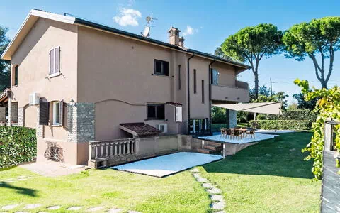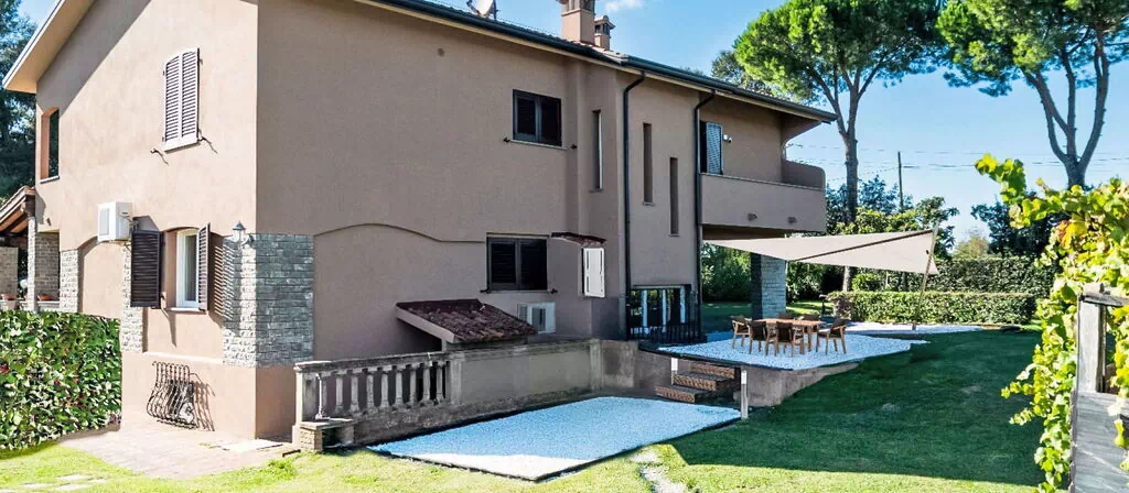 La villa « Rose Adriano Home » s'étend sur 150 m² répartis sur 2 niveaux et accueille un maximum de 8 hôtes. Elle comprend 3 chambres et 3 salles de bains. La propriété a été partiellement rénovée en 2026.