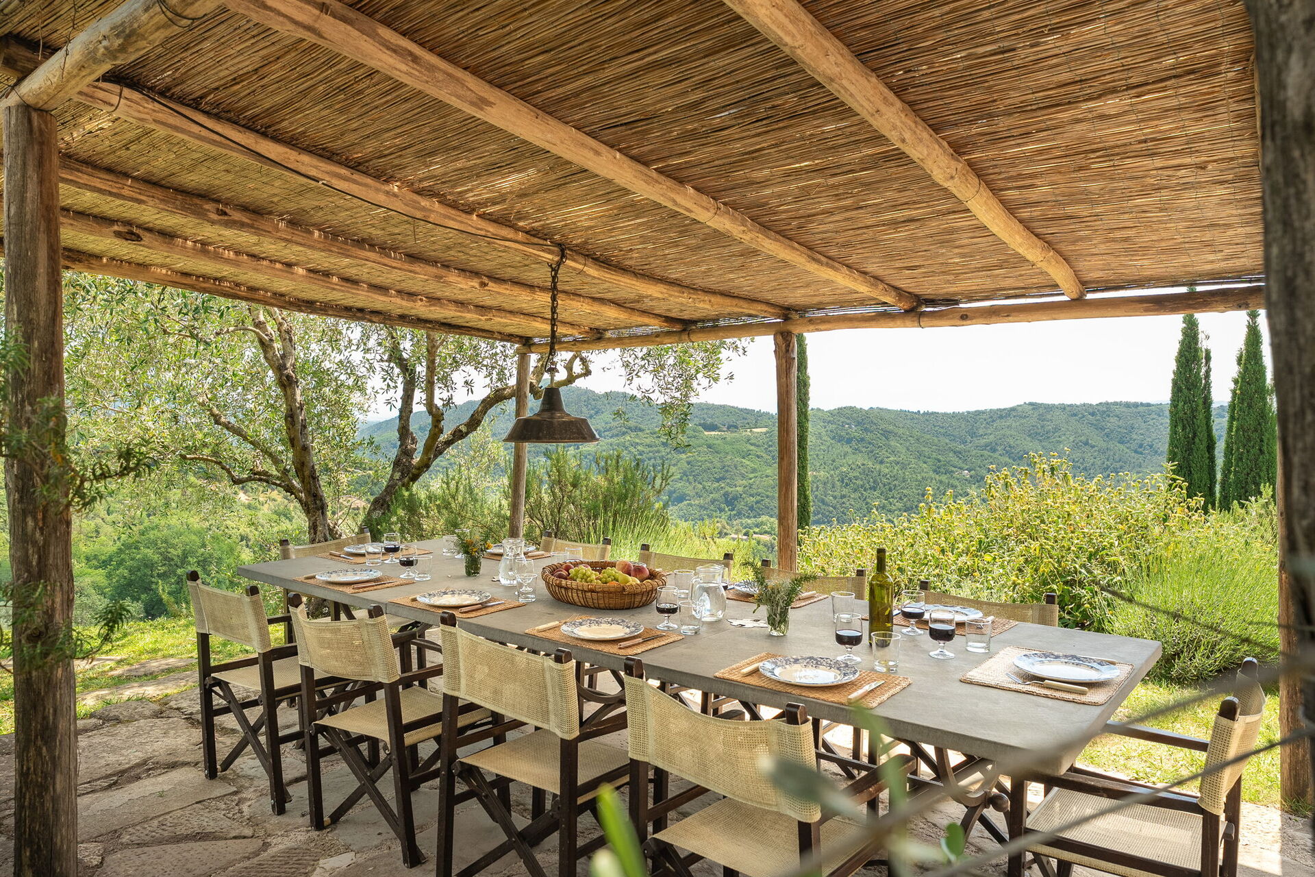 La maison a été méticuleusement restaurée à partir de ce qui était autrefois un moulin à huile et une grange, maintenant reliés par un grand hall d’entrée et une terrasse. Cette structure est idéale pour les groupes d'amis souhaitant passer leurs vacances en Toscane tout en préservant leur intimité, la maison étant divisée en deux zones différentes.