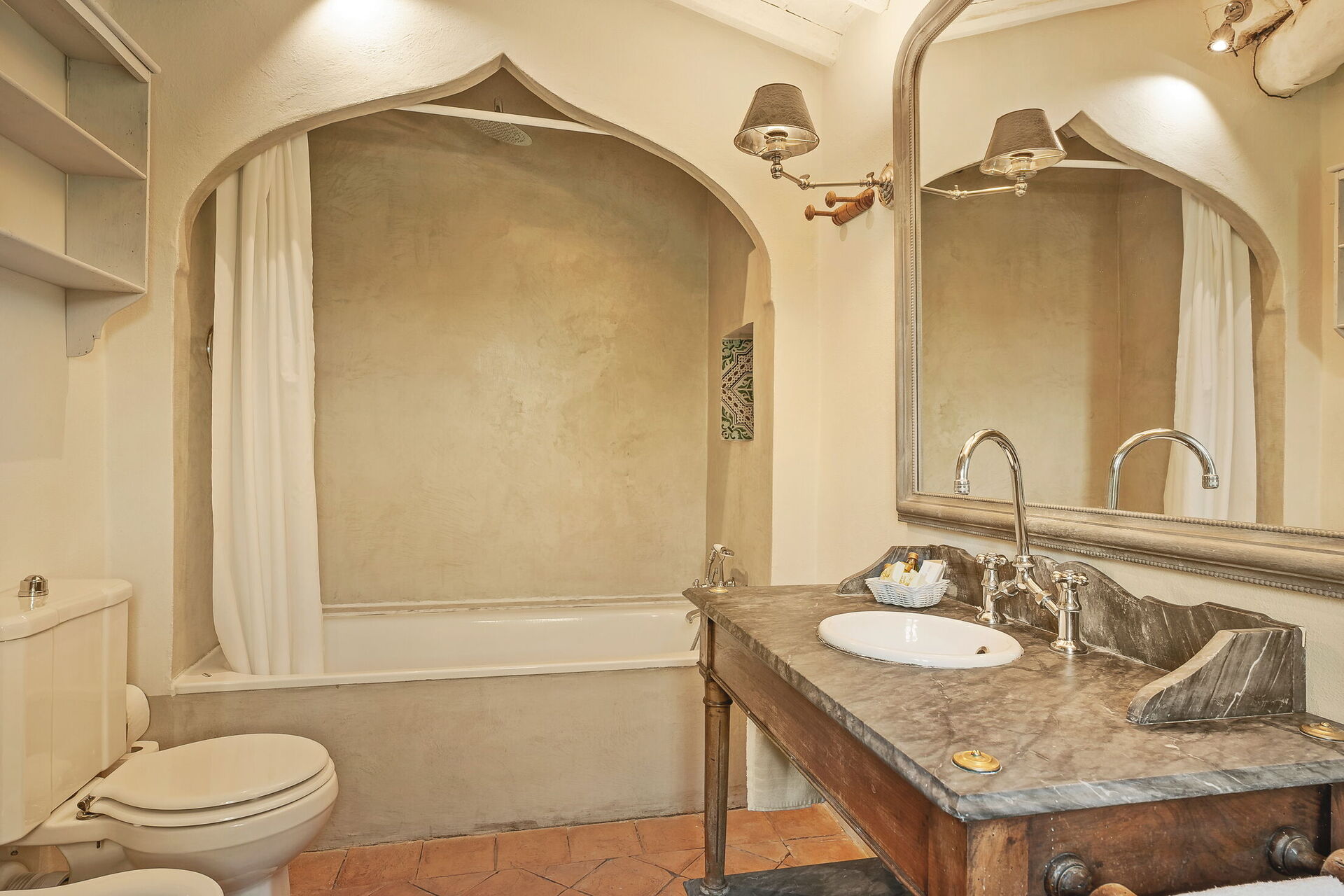 chambre avec salle de bain 1: lit double, internet WIFI, climatisation, ventilateur de plafond, fauteuil, bassin, wc, bidet, bagnoire, douche, sèche-cheveux.