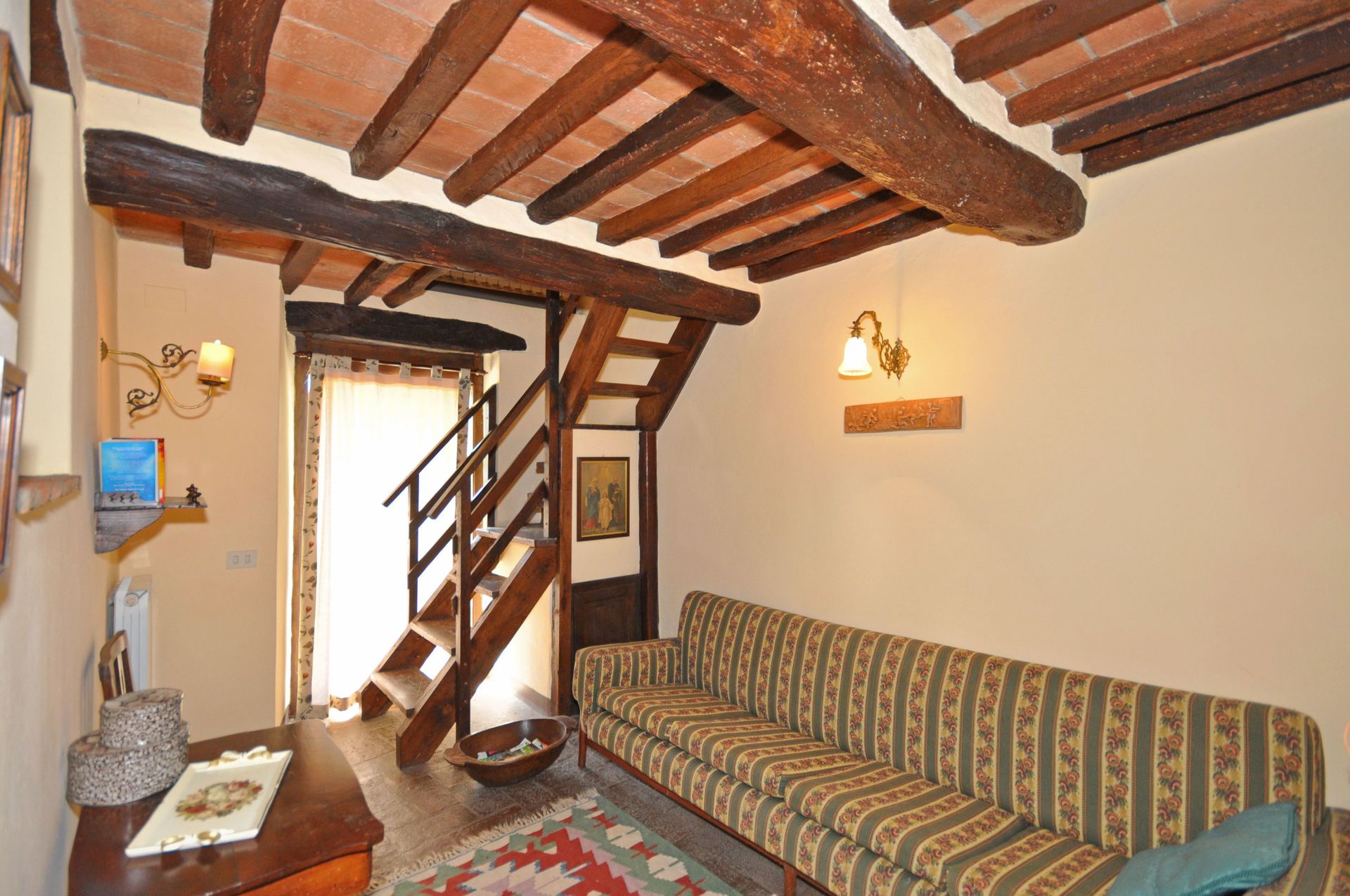 1er étage (accessible par un escalier en colimaçon): chambre double, salle de bains avec douche.