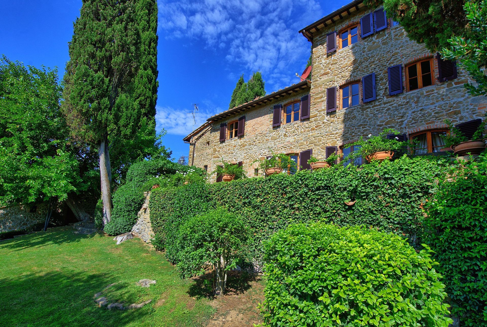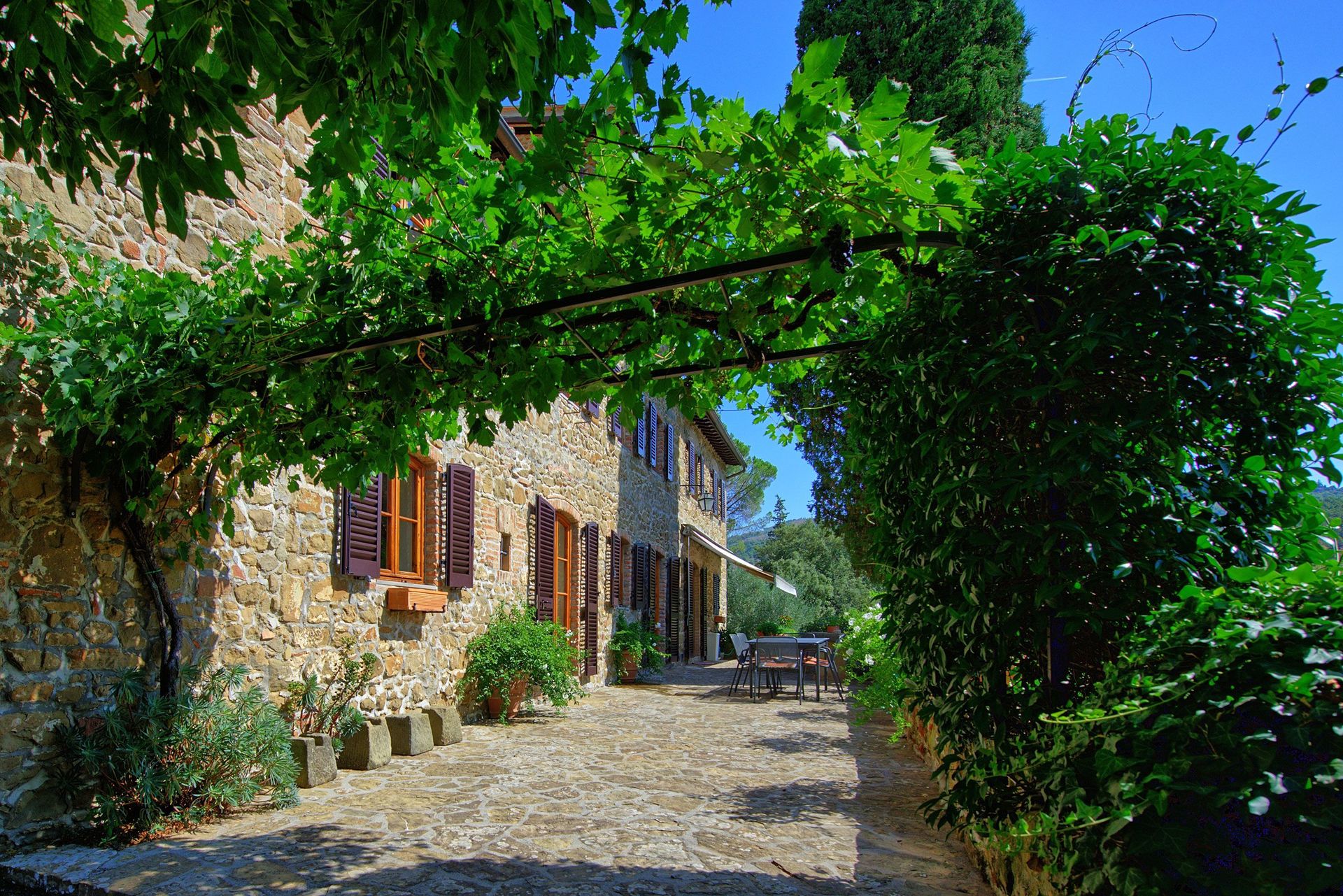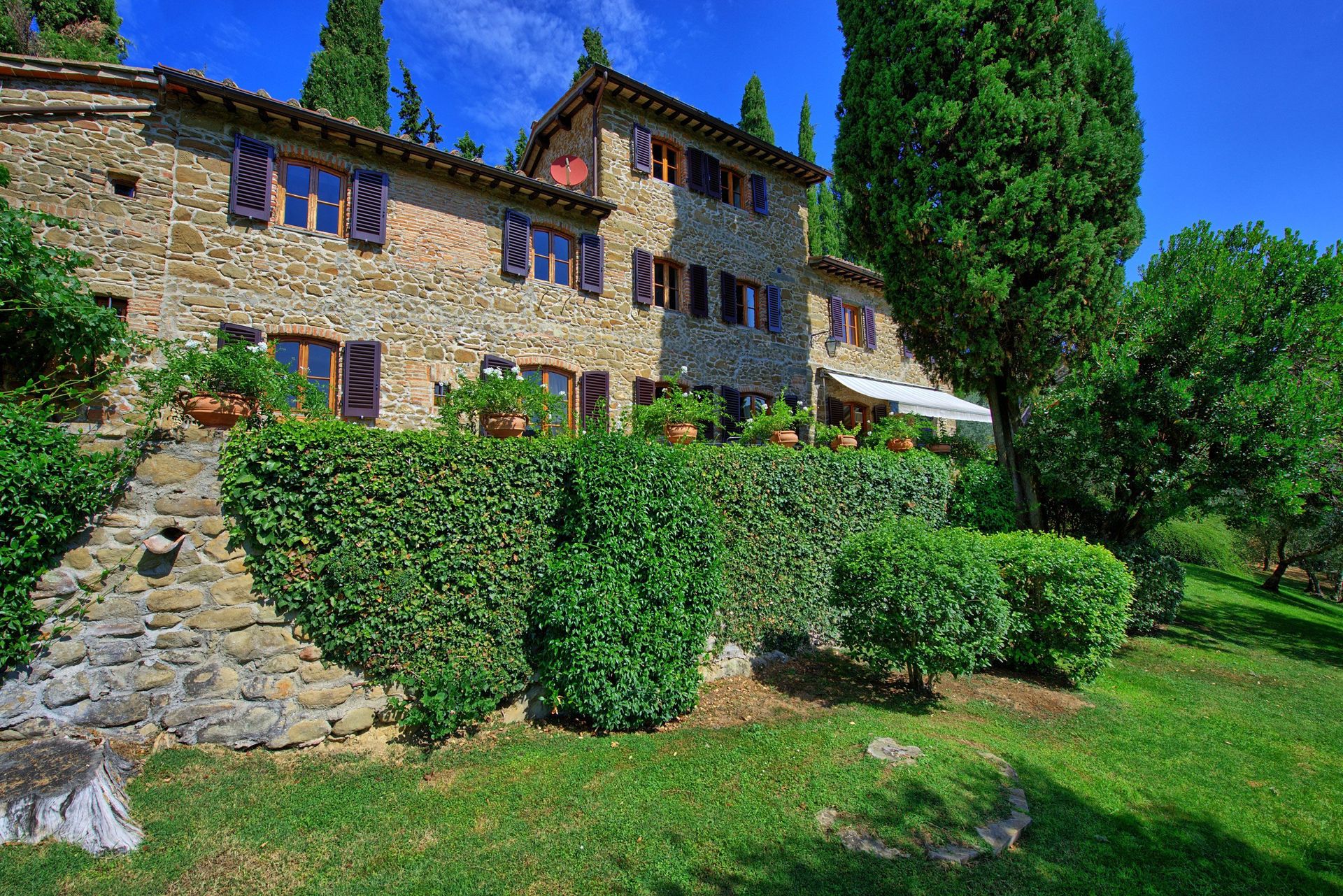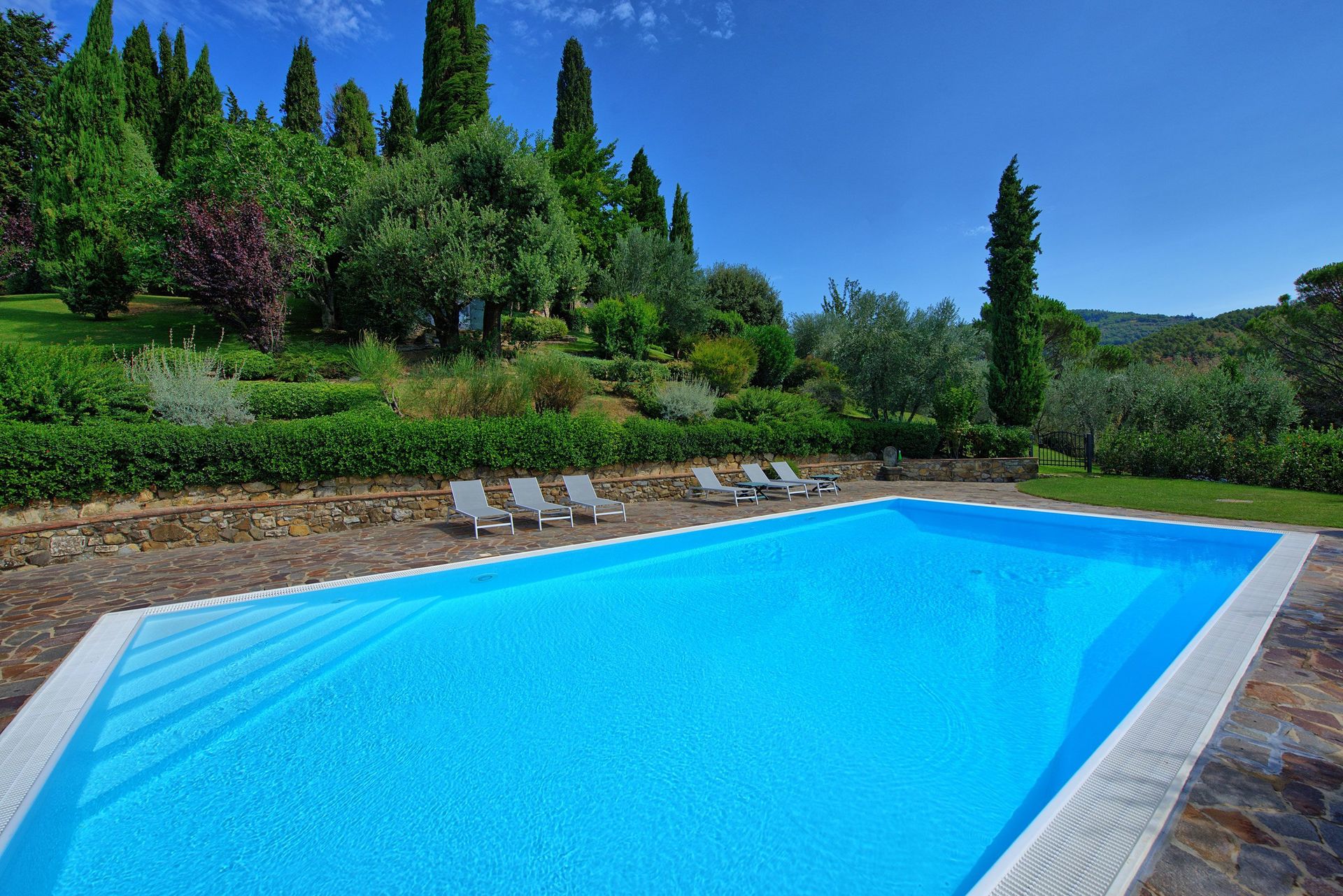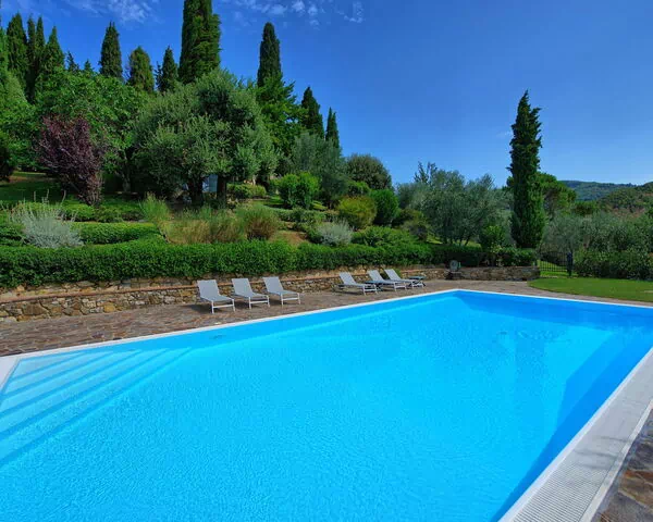 Splendide villa en pierre située dans une zone d’absolue tranquillité et calme dans le cœur du Chianti. La propriété, soigneusement renovée, offre une très belle vue sur les oliviers et les vignobles qui l’entourent. La villa, décorée avec bon goût, avec des pièces anciennes, est entourée par un très beau jardin, extrêmement soigné. La piscine privée permet de jouir d’un splendide panorama sur le paysage des alentours. A coté de la piscine un barbecue et une terrasse couverte équipée pour des repas inoubliables avec vue panoramique sur les collines Toscanes verdayant. La propriété se trouve en position idéale pour visiter tous les villages de la région du Chianti et les villes comme Florence et Sienne qui sont très proches.
