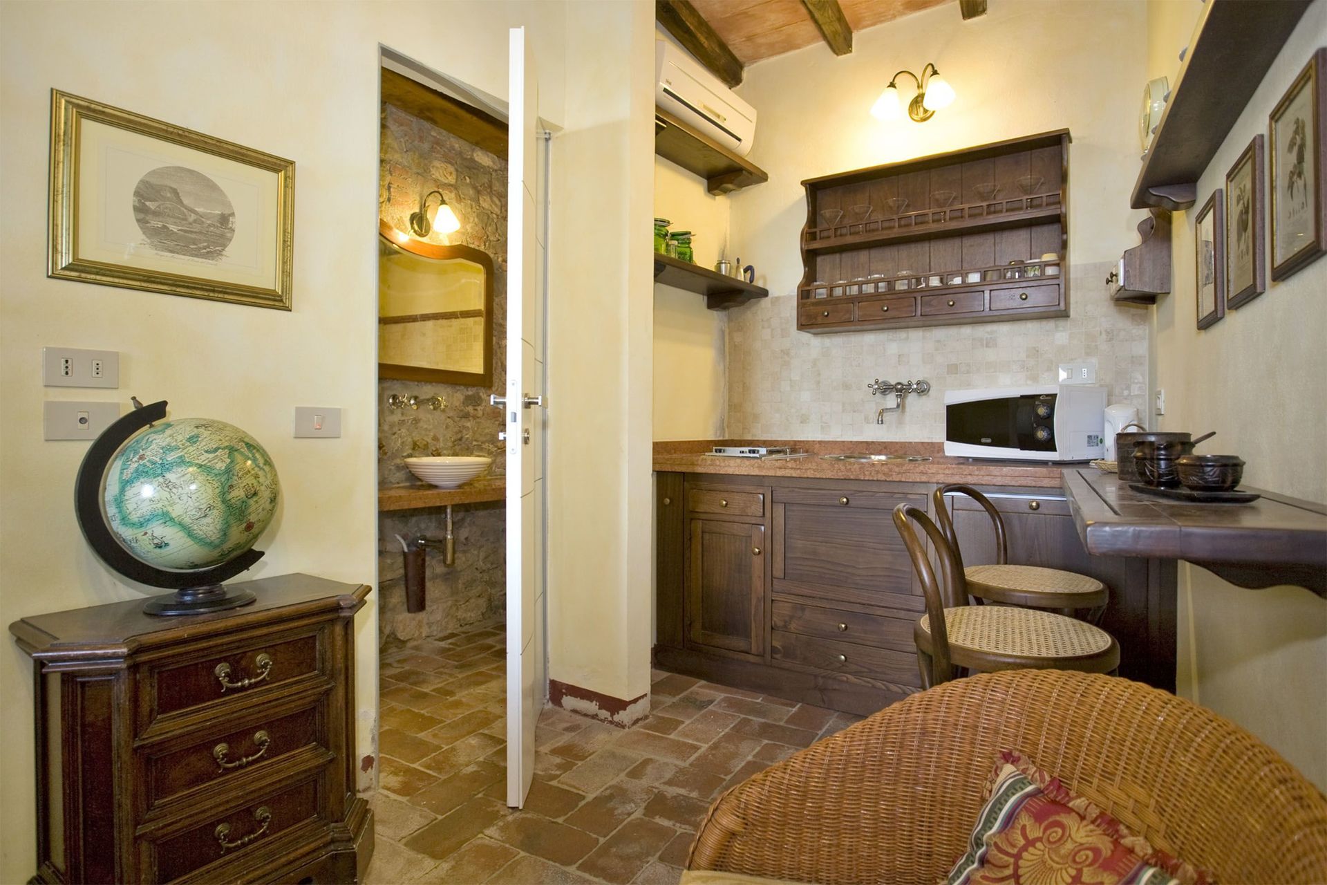 cuisine 1: réfrigérateur, four micro-onde, cuisinière, machine à café italienne, machine à café américaine, internet WIFI.
