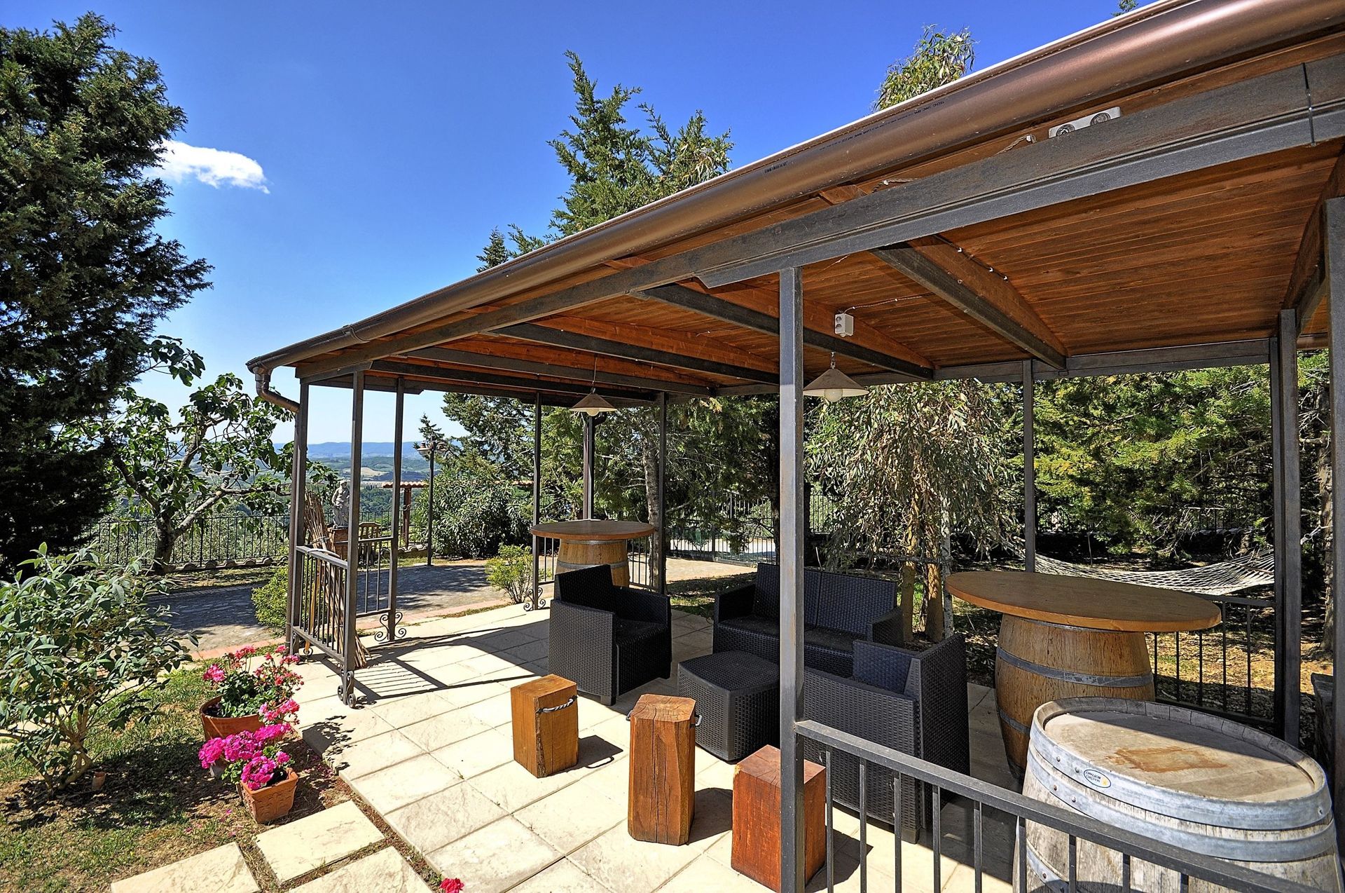 A disposition des hôtes: espaces extérieurs équipés avec des tables, chaises et terrasse tonnelles pour déjeuner et dîner en plein air; piscine entièrement entourée (10 x 6 mètres - profondeur maximale 1,5 mètres - ouverte du 01/05 au 30/09) avec zone apte aux enfants grâce à une petite piscine d’une profondeur de 30 cm, 5 barbecue. Parking à l'intérieur de la propriété.
