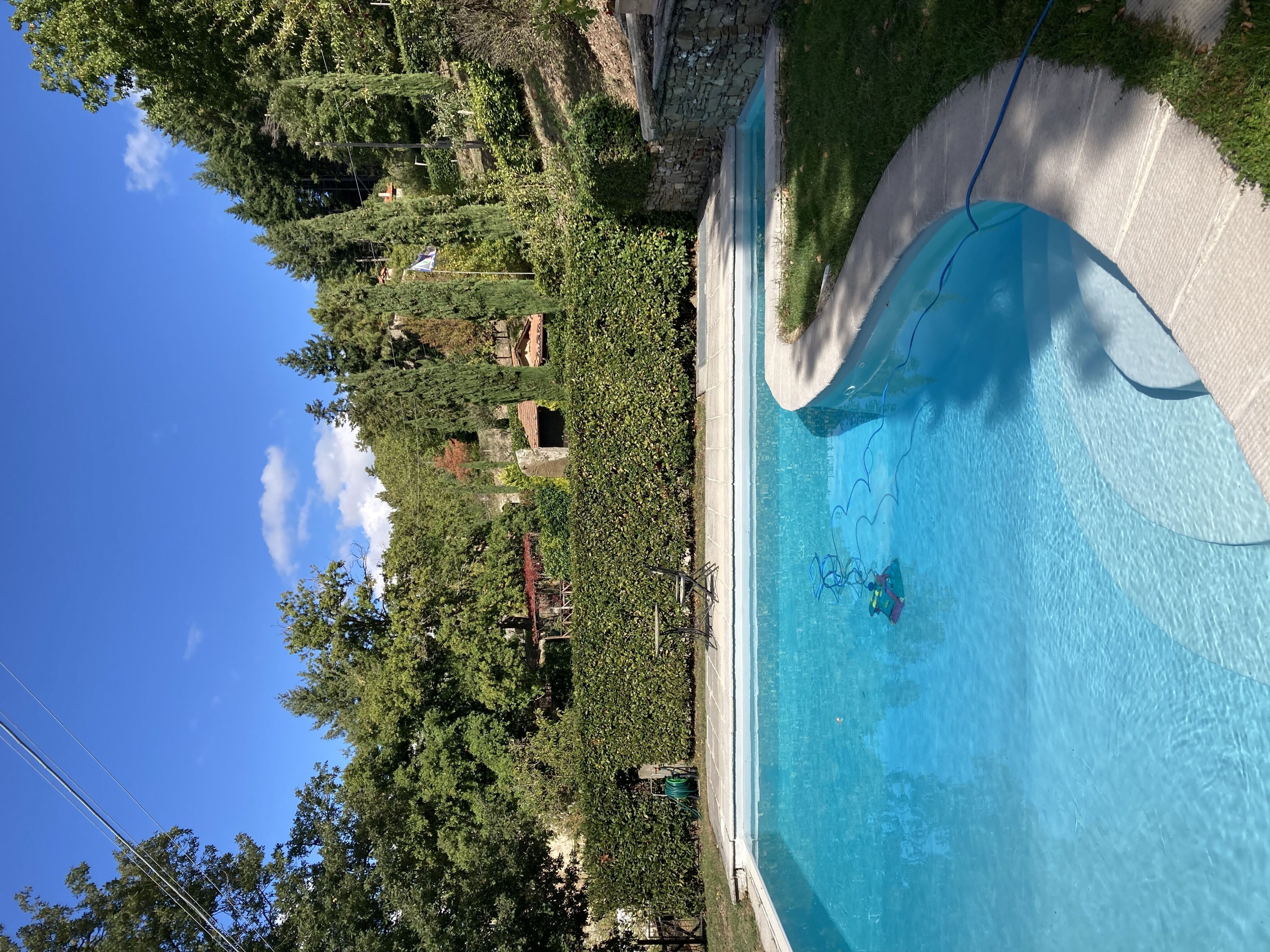 A disposition des hôtes: jardin équipé et clôturé, belle piscine de forme irrégulier (env. 7m x 14 m – profondeur maximale 2,4 m), véranda couverte équipée avec table et chaises pour dîners en plein air, barbecue. Machine à laver, planche et fer à repasser à disposition. Parking dans la propriété.