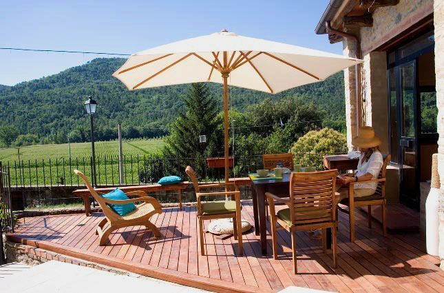 Situé au rez-de-chaussée, cet appartement a une entrée indépendante, une terrasse en bois pour manger dehors avec une belle vue sur les vergers et champs cultivés. Le séjour a une cheminée et une table en teak pour 6/8 personnes. La cuisine séparée est équipée de lave-vaisselle, lave-linge, un grand frigo, four et fourneaux à gaz. Deux chambres doubles et une mezzanine au dessus de l’entrée logent 4 personnes. Une salle de bain avec douche, lavabo et revêtements en pierre, meubles en bois et verre sablé. Chauffage central.