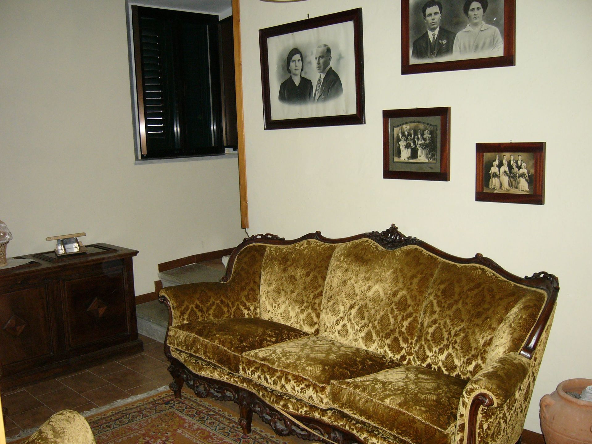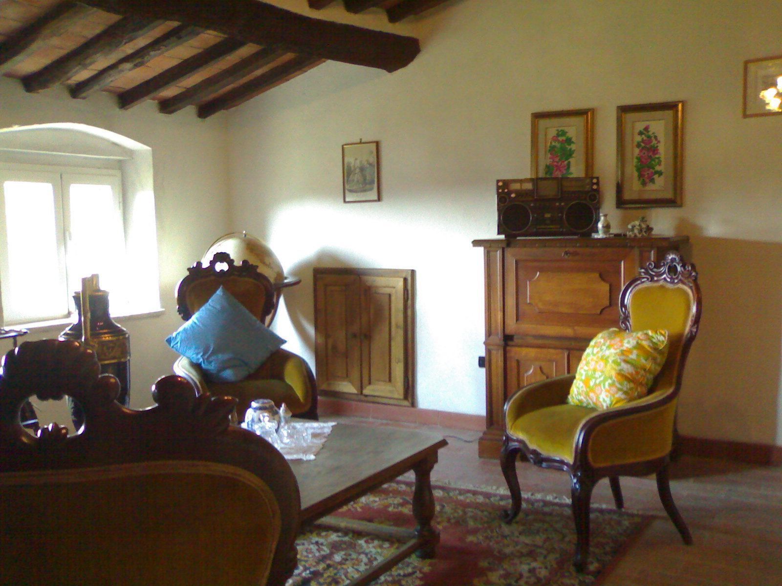 Du salon, un escalier mène à l'étage; au premier, vous trouverez une chambre matrimoniale, un petit salon et une salle de douche. Au second, deux autres chambres, l'une matrimoniale, l'autre avec deux lits simples, un large salon et une salle de douche tout en marbre. Dans toutes chambres, on trouvera la télévision et du mobilier ancien et stylé. Les salles d'eau contiennent des sèche-cheveux et des pèse-personnes.