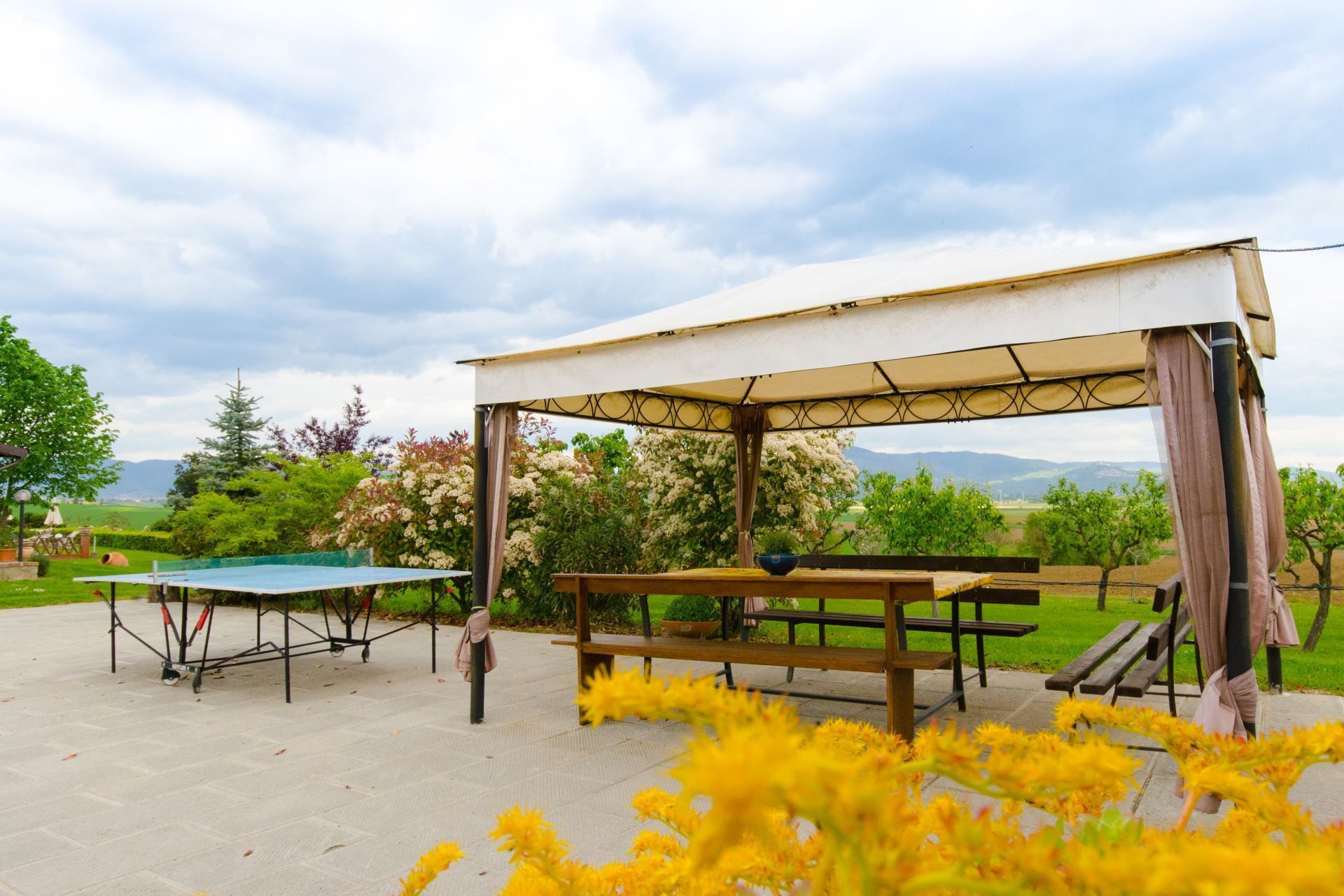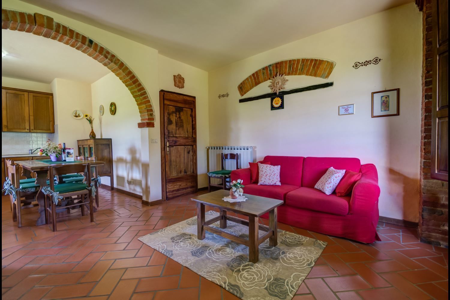 Services et produits typiques de la ferme. Autour de la maison s'étend un vaste jardin équipé de mobilier, table de ping-pong, terrain de boules, jeux pour enfants, barbecue et une belle piscine (6x12 m, profondeur 1,40 m) utilisée de temps en temps aussi par le propriétaire. Possibilité de déguster et acheter vin, huile, marmelades, légumes, etc, produits dans la ferme. Petit déjeuner et diner typique toscan sur demande.